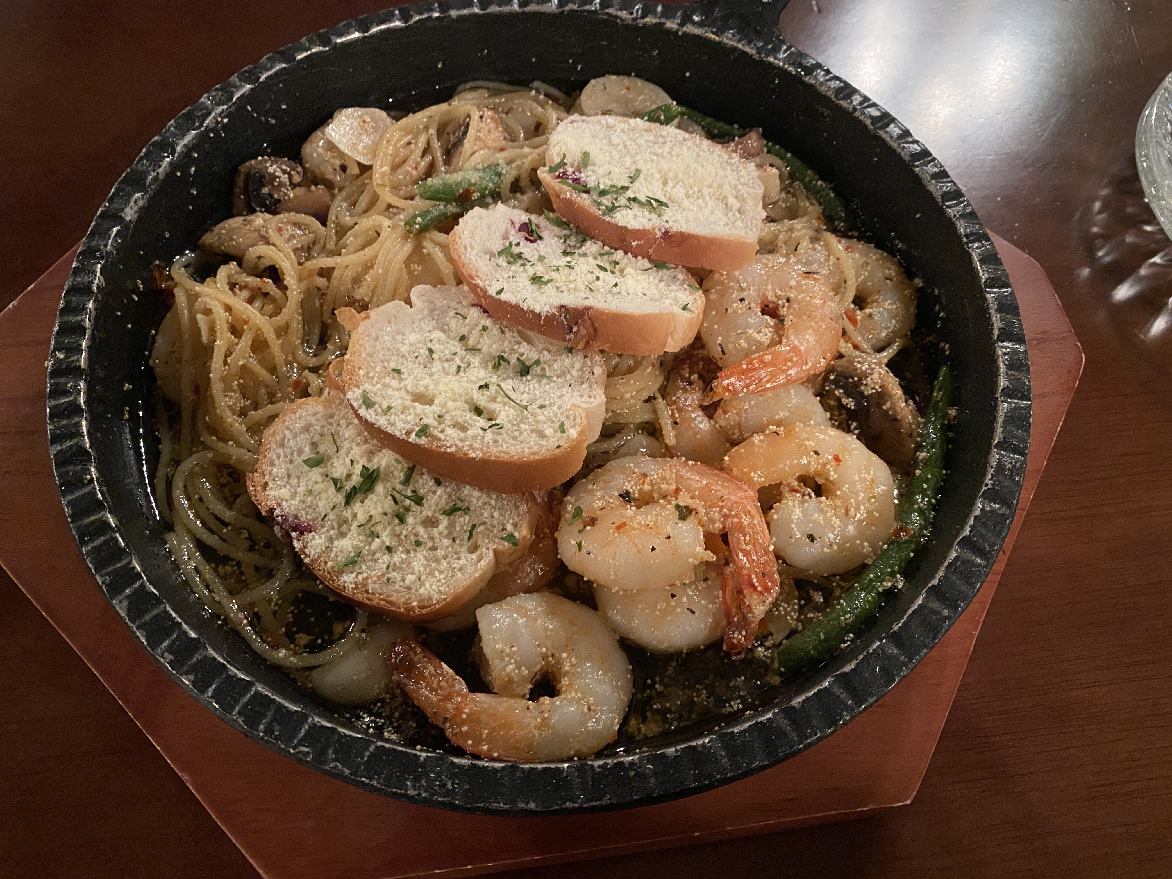 안주로 먹은 사모님 감바스. 새우 통통하고 파스타 면이 적당히 있어서 호록호록 먹기 좋았다. 저녁을 안 먹고 갔기 때문에 배가 고파서 되게 맛있게 먹었다.