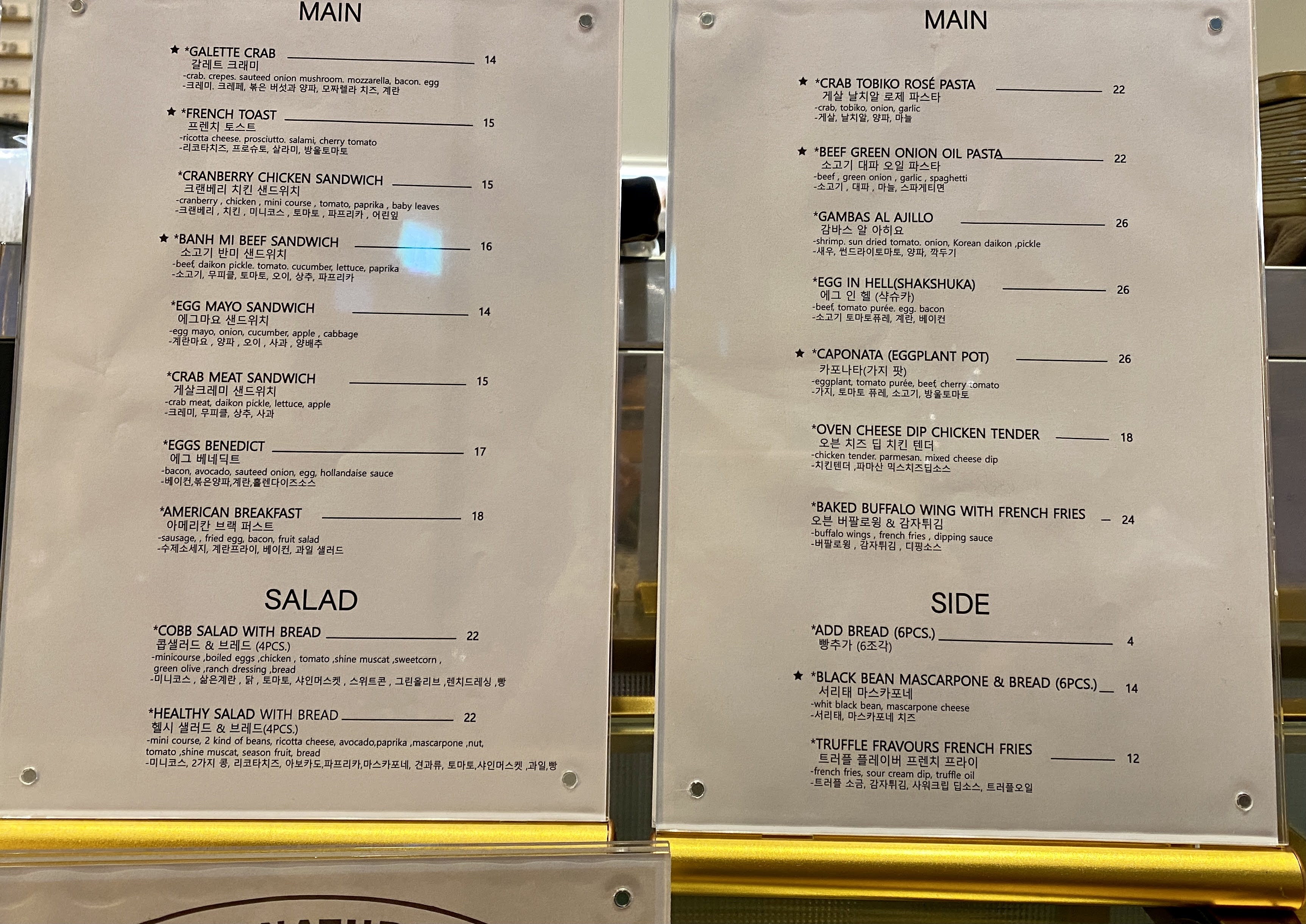 가격이 착한 편은 아니라서 일단 이 정도만 주문. 왜냐하면 우린 여기서 커피도 먹고 디저트도 먹을 거니까.