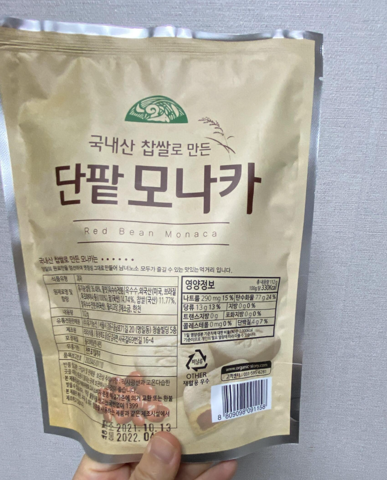 영양 정보도 한번 보고. 재료를 보니 모나카의 바삭한 겉부분은 옥수수 전분으로 만드나 보다.