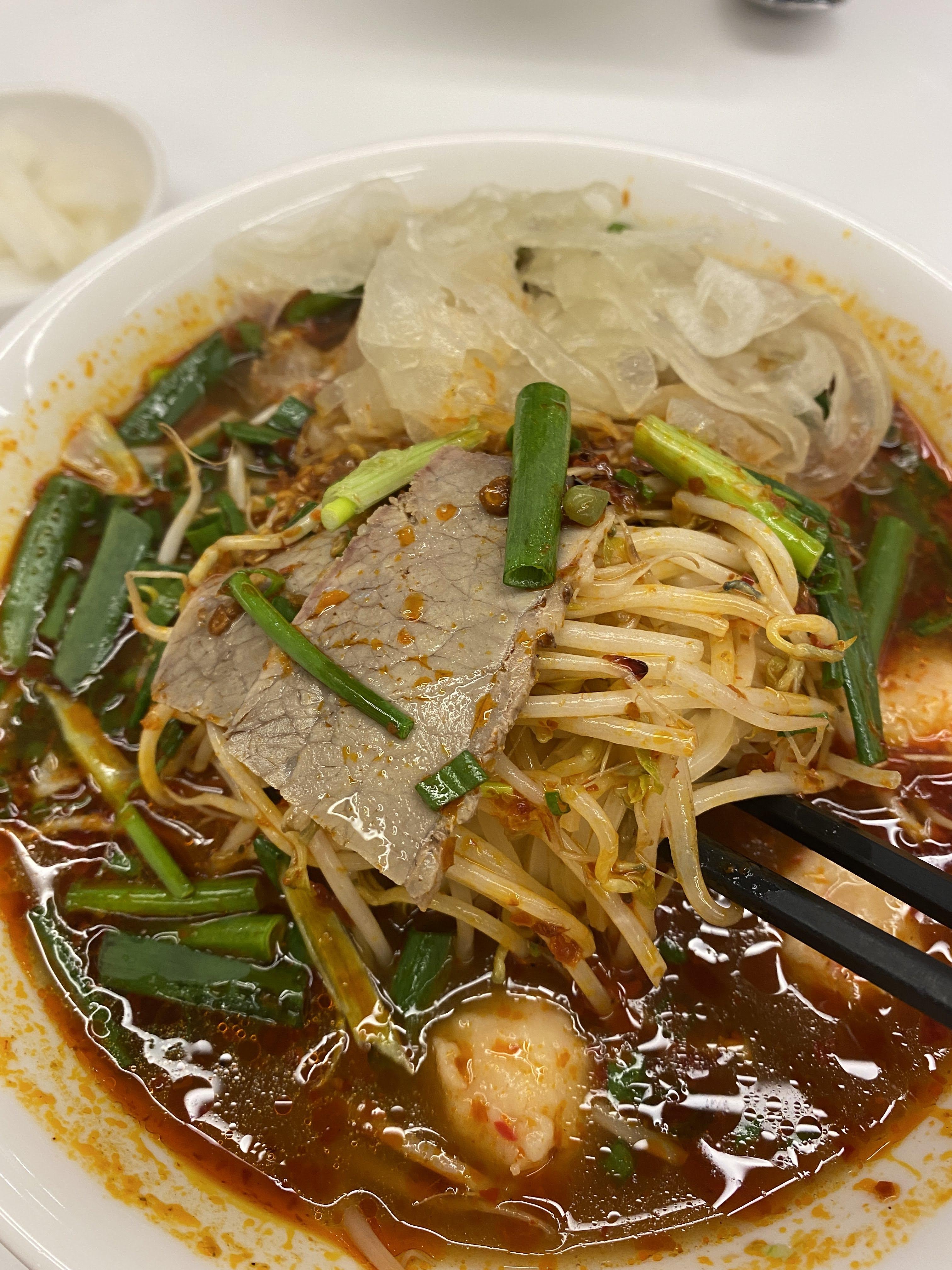 금세 나온 마라쌀국수. 나온 순간부터 마라향이 샤악 풍기는 게 이것이 바로 우리가 원하던 것이라는 게 절실히 느껴졌다.