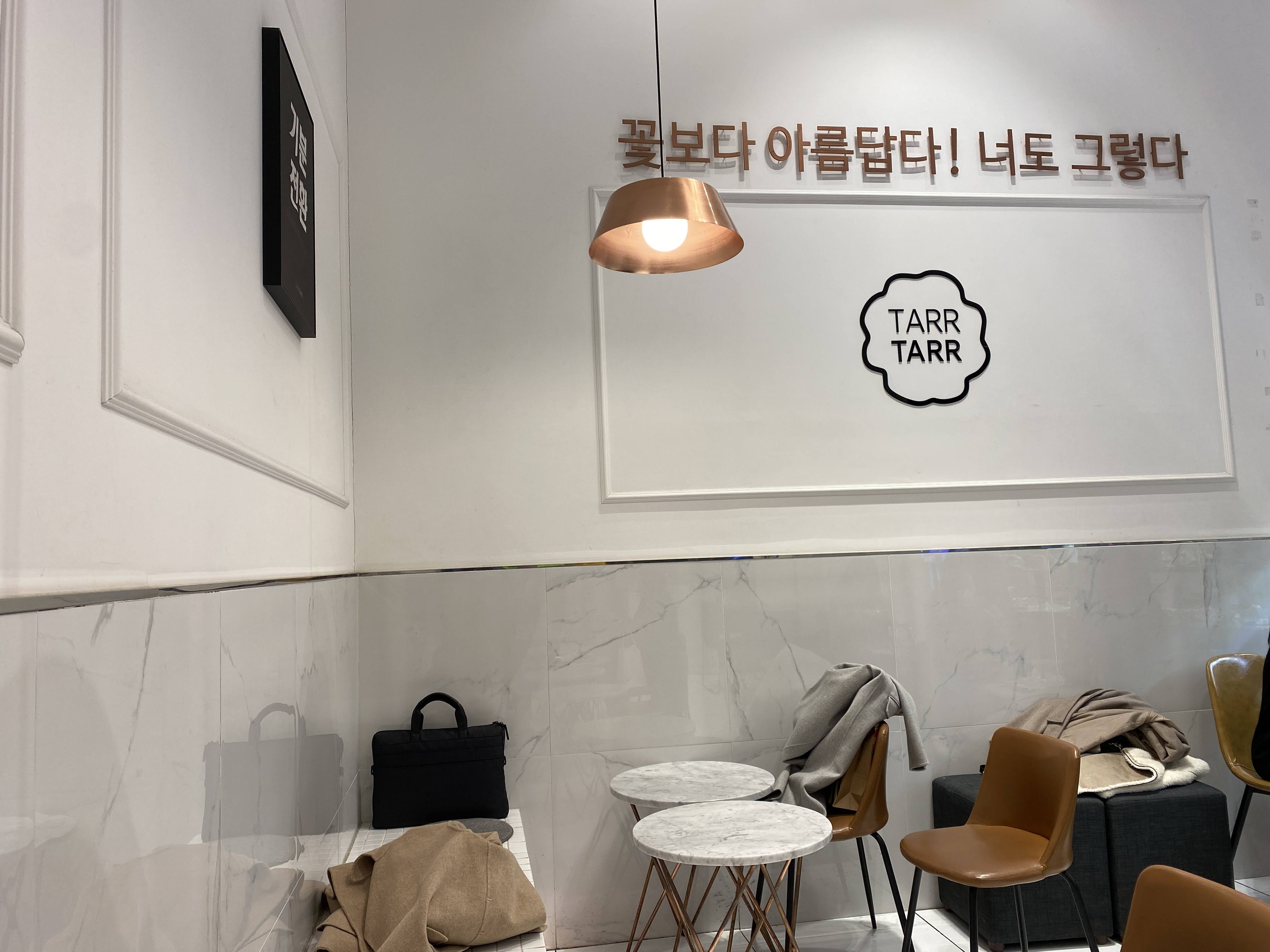 당연히 디저트를 먹어야 한다. 최고의 디저트란 무릇 탄수화물과 당이 듬뿍 들어간 다디단 애들이 최고다. 어떤 걸 먹어 볼까 고민하다가 타르트로 결정했다. 사실 우리는 빙수가 먹고 싶었는데 빙수를 파는 곳이 마땅치가 않아서 타르트로 노선을 변경했다.