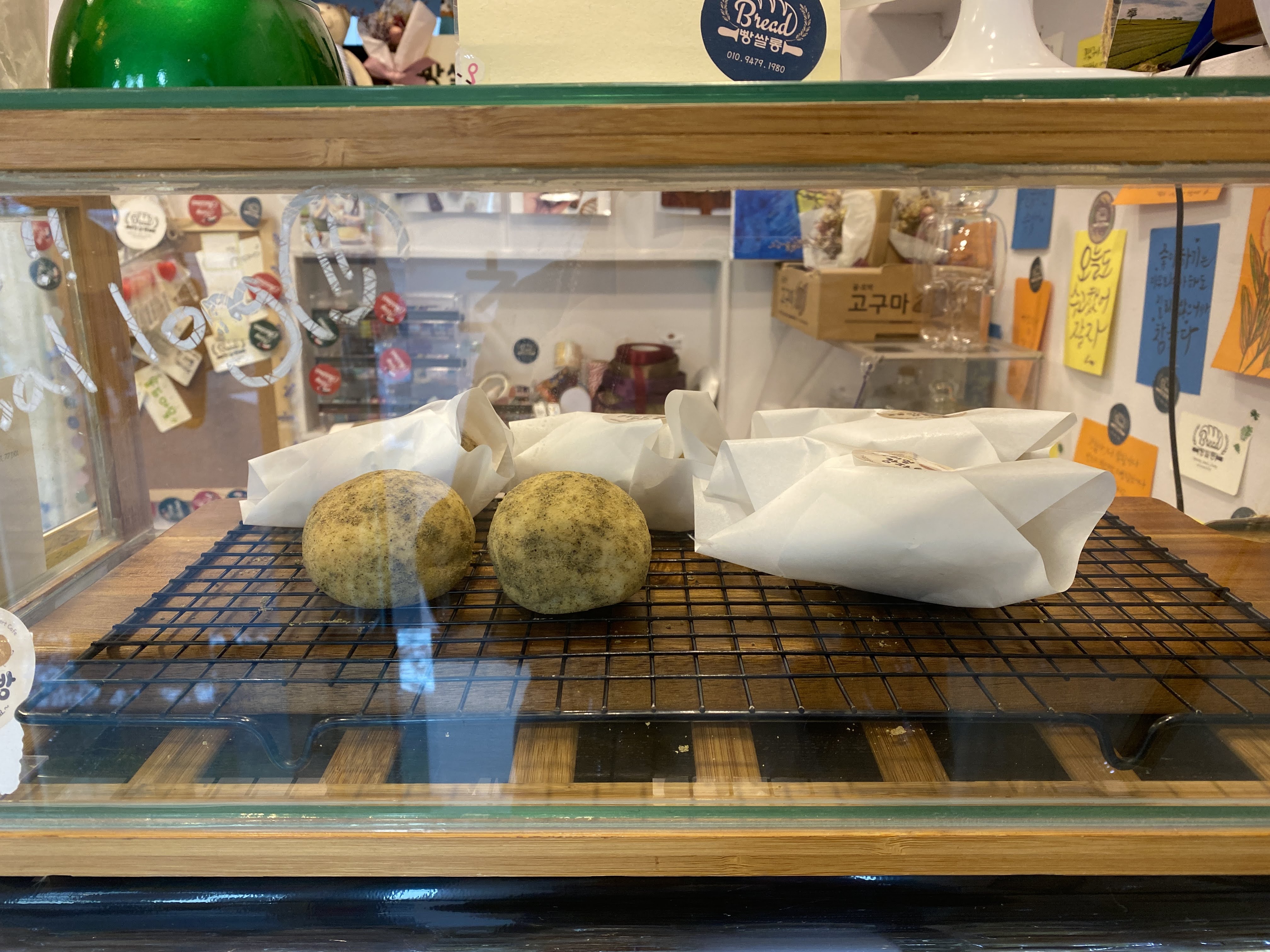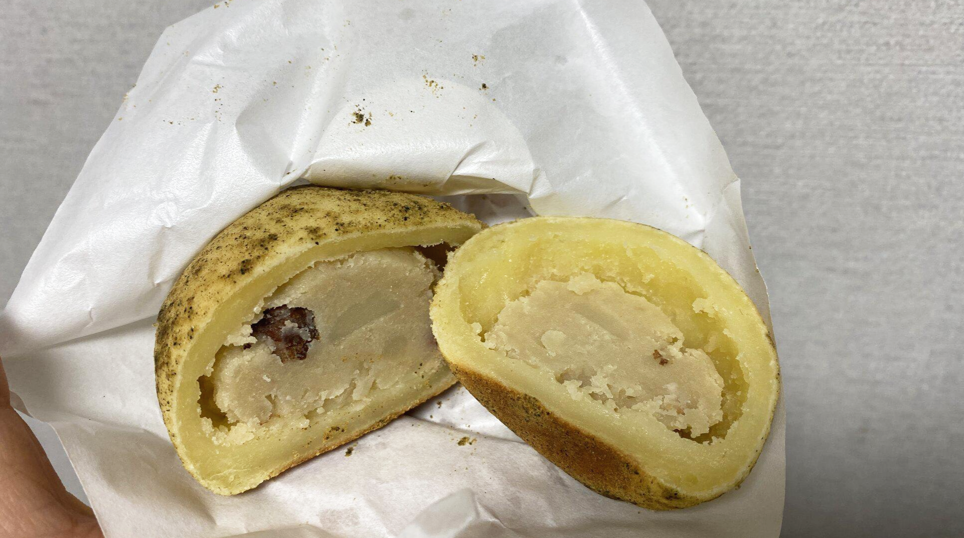 진짜 감자처럼 생겨서 혼자 깔깔깔 하고 웃었다. 안에는 감자 샐러드 맛이 나는 소가 가득 차 있는데, 빵 겉부분은 쫀득쫀득하고 속은 담백하면서 적당히 짭쪼름한 감자맛이 충분히 나서 아주 맛있었다.