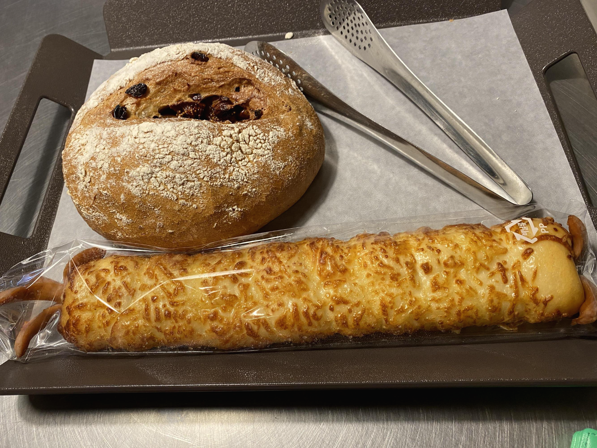 깜빠뉴는 썰어 달라고 해서 받아 오고 소세지빵은 그대로 가져왔다.