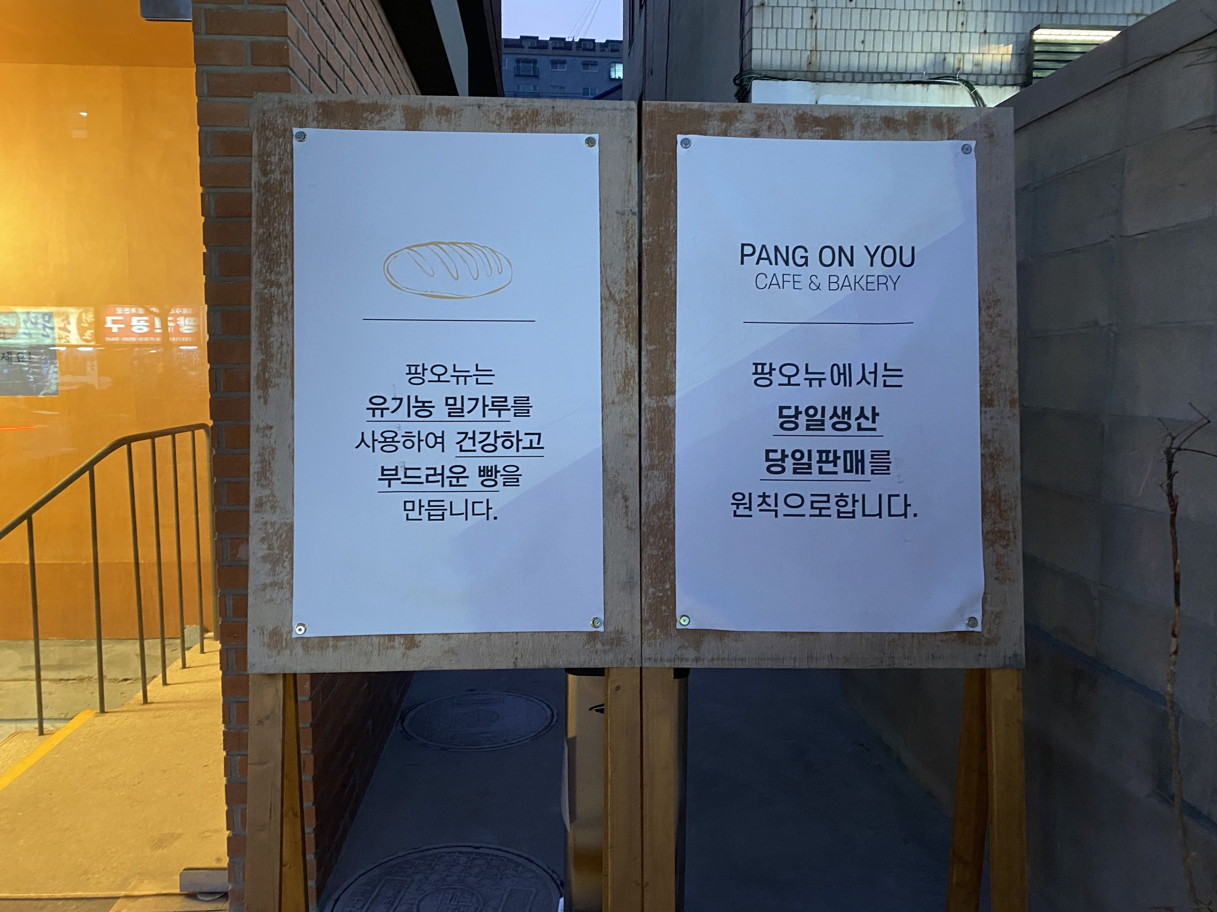 친구네 집에 놀러 가다가 들린 팡오뉴 제빵소. 친구네 집에 살살 걸어가고 있는데 평소랑 다른 길로 가니까 새로운 가게가 보였다. 아니, 뭐 이런 곳에 제빵소가 있냐 싶은 곳에 정말 제빵소가 있다. 요런 것이 인생의 재미지.