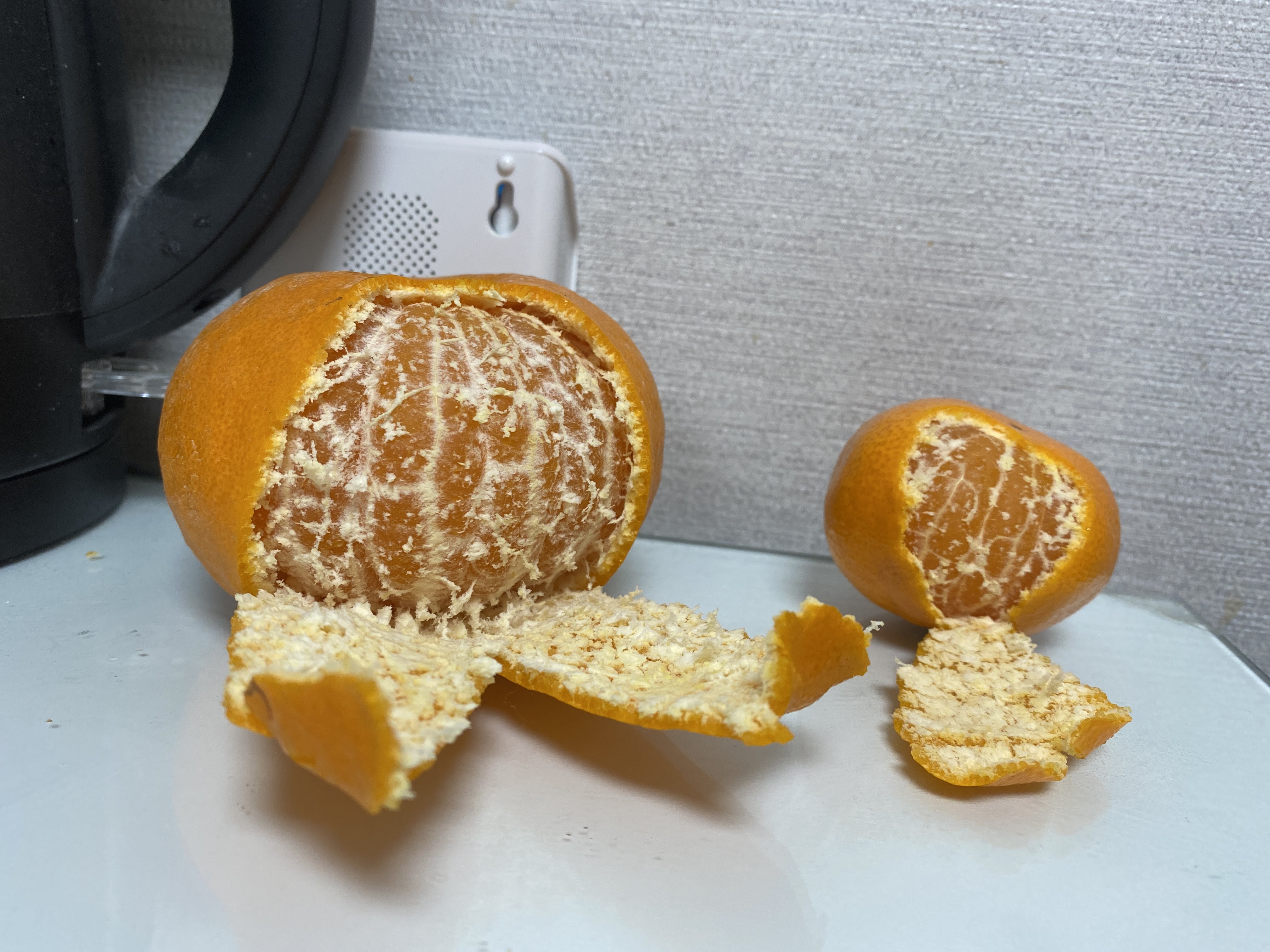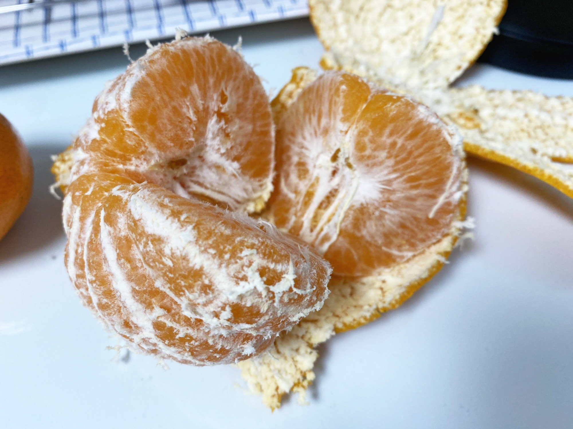 설명한 대로 정말 껍질이 잘 벗겨진다. 저항없이 스스슥 벗겨지고 보통 귤이나 황금향 같은 애들은 일단 껍질을 벗기려면 손톱을 껍질에 박아 넣고 속살과 뜯어 낸다는 느낌으로 벗기는데 이건 그냥 훌훌 벗겨진다.