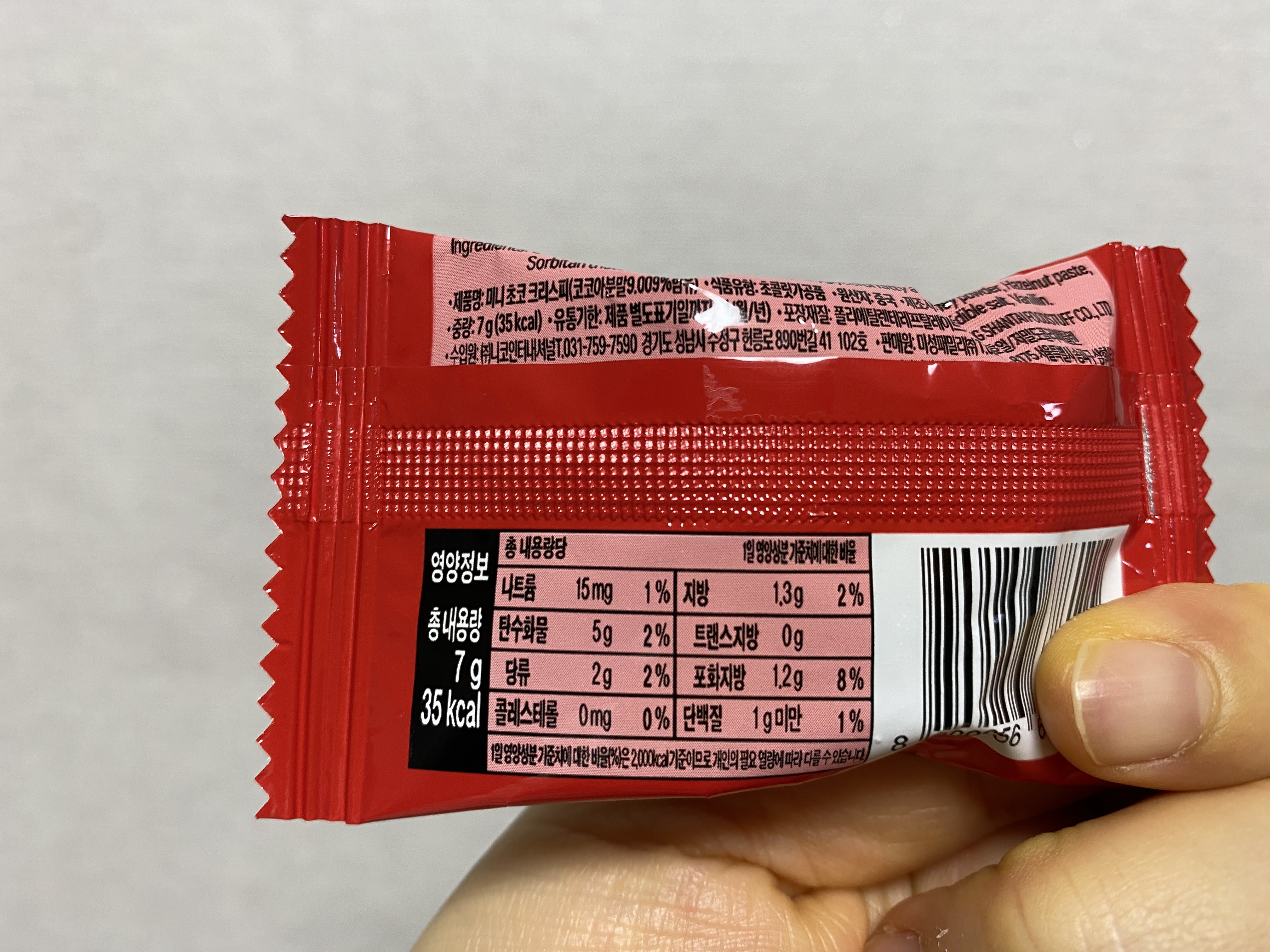 뒤에도 쪼그맣게 영양 정보를 적어 줬다. 개별 포장에 영양 정보 적어 주는 거 나는 찬성.
