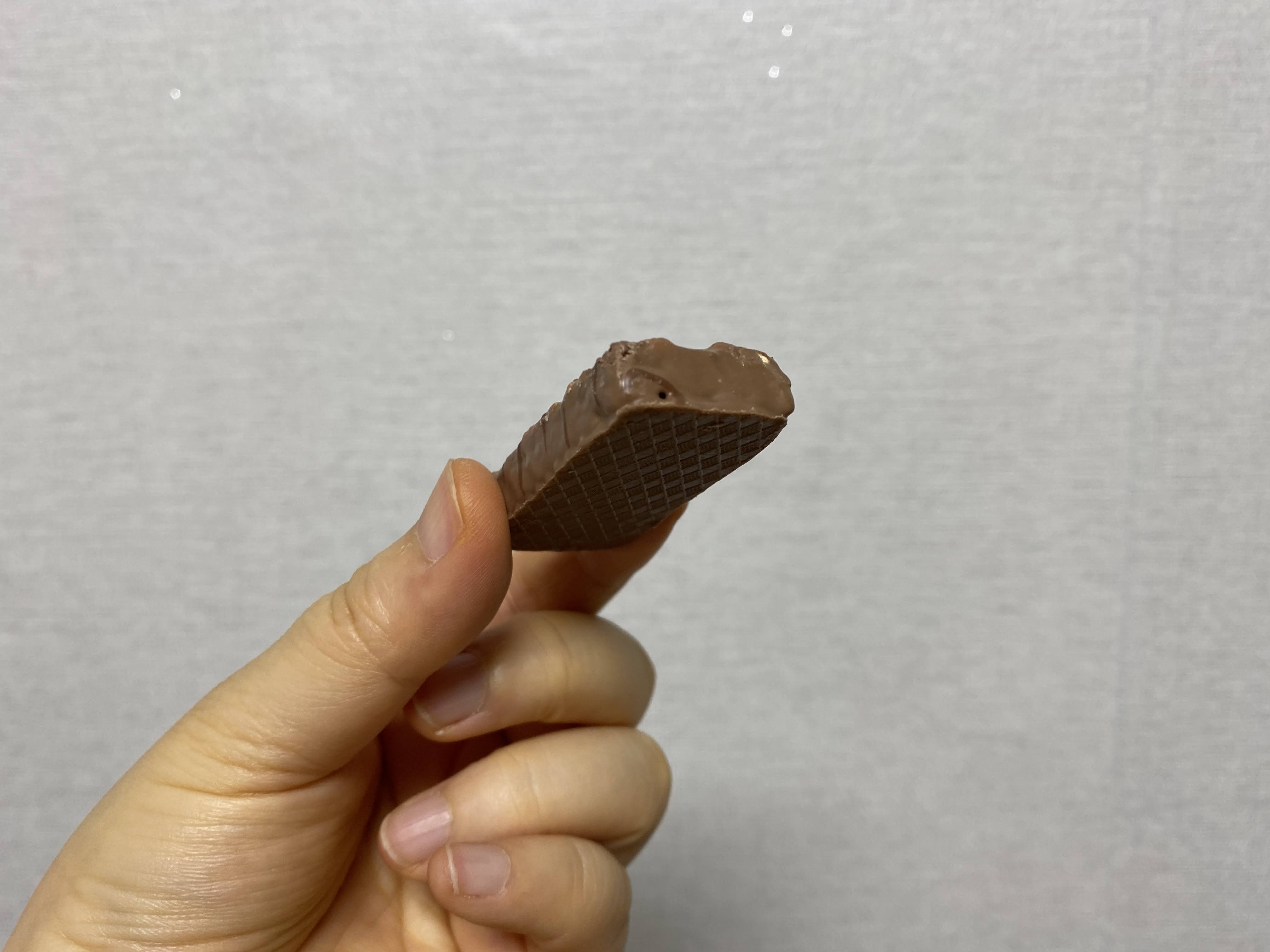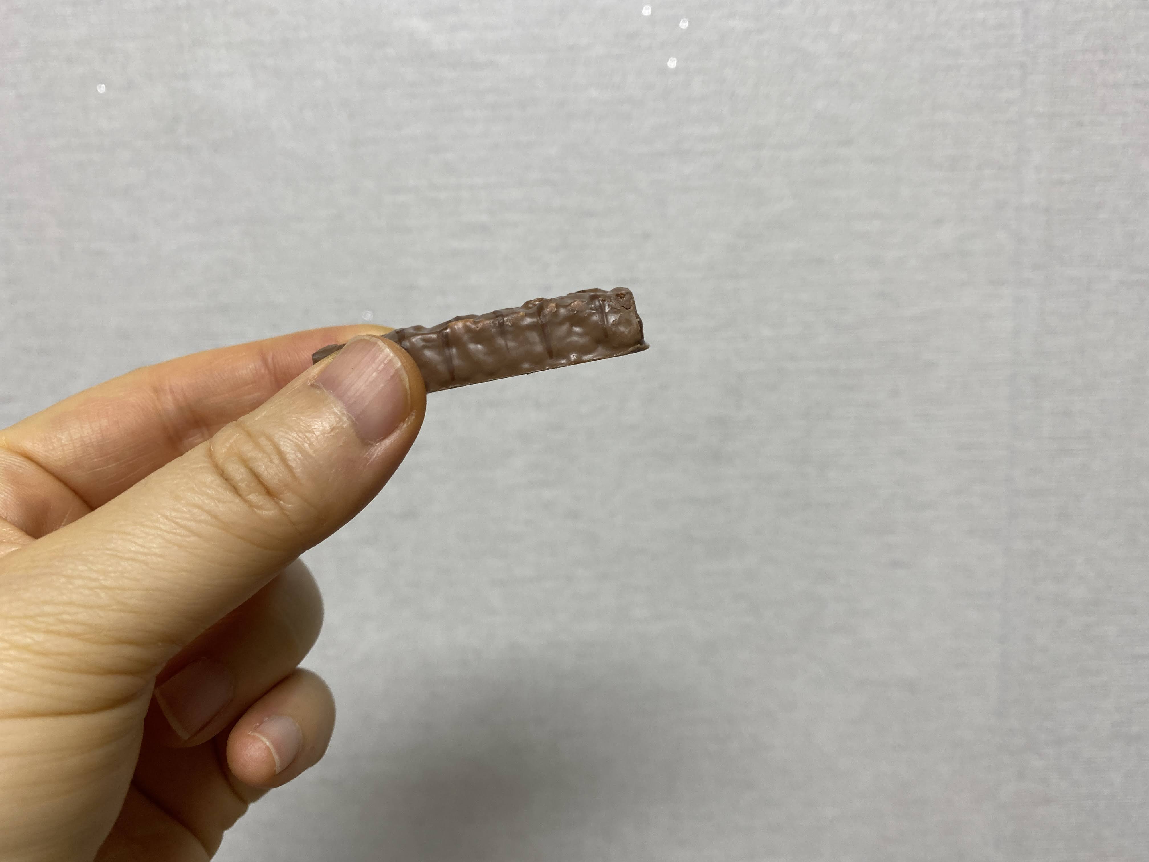 안에는 얇고 바삭한 웨하스 사이사이에 크림이 끼워져 있고 맨 위층에는 헤이즐넛이 촉촉 심어져 있고 그 위로 달콤한 초콜렛 코팅!