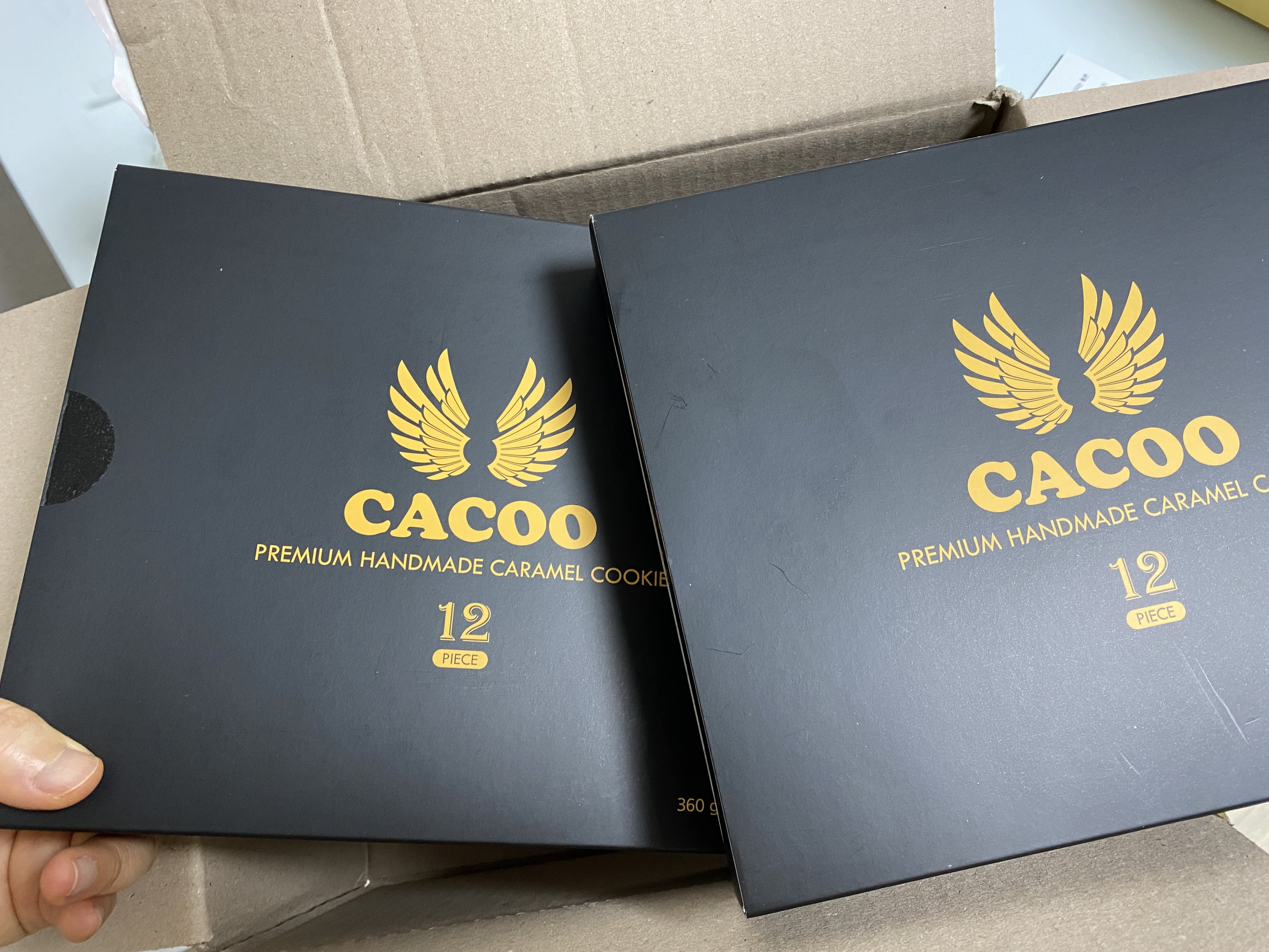 소중하고 멋진 카라멜 쿠키를 곱게 끌어 안고 있는 상자, 까 먹는 재미가 있는 종이 포장!