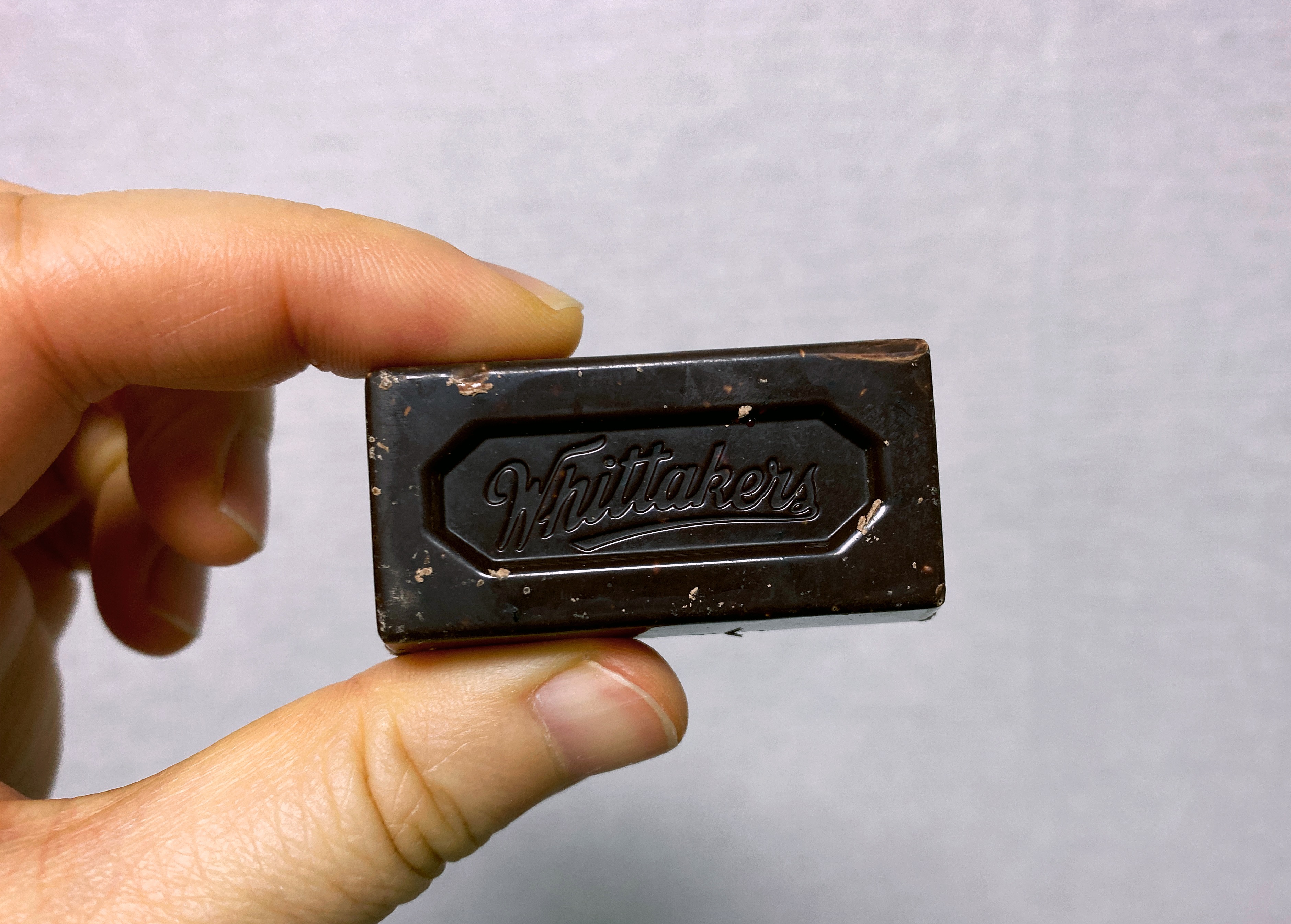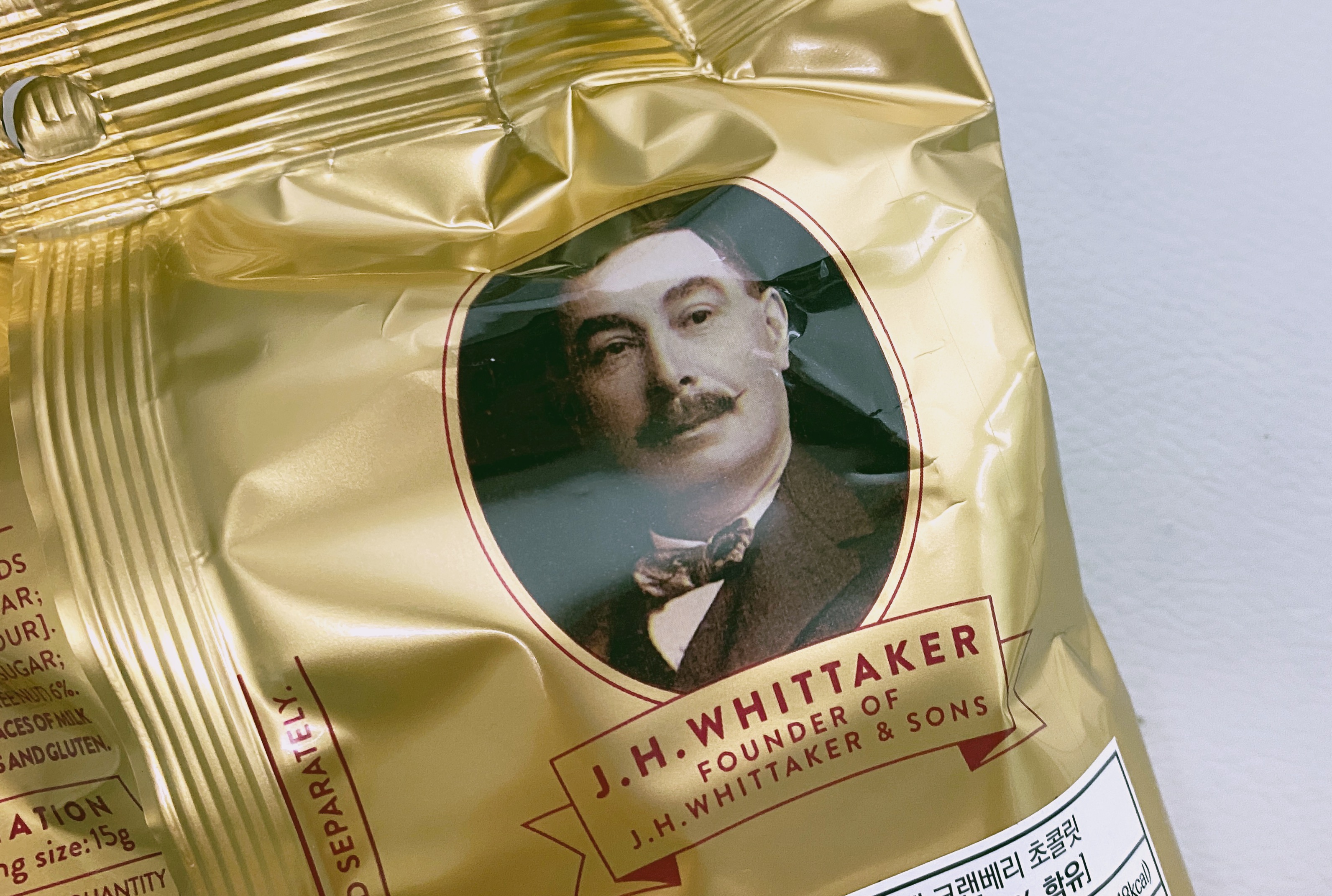뒷면에는 이 맛있는 초콜릿을 만들어 주신 위대한 휘태커스 씨의 사진이 있다.