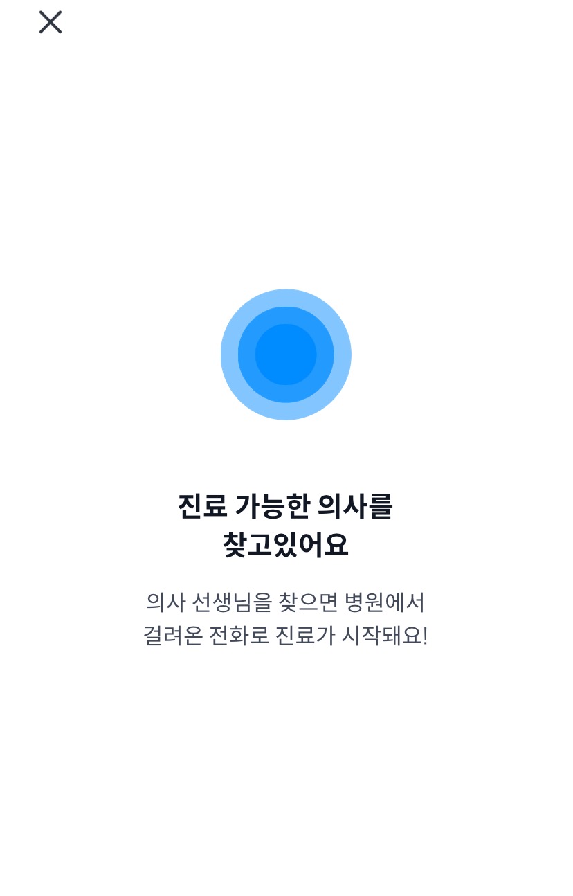 이런 화면이 뜨면서 잠시 대기. 대기시간은 지역마다 때마다 다르겠지만 나는 거의 2분 만에 된 거 같다. 의사와 매칭이 되면 전화가 걸려온다. 전화는 영상통화니까 당황하지 말기!