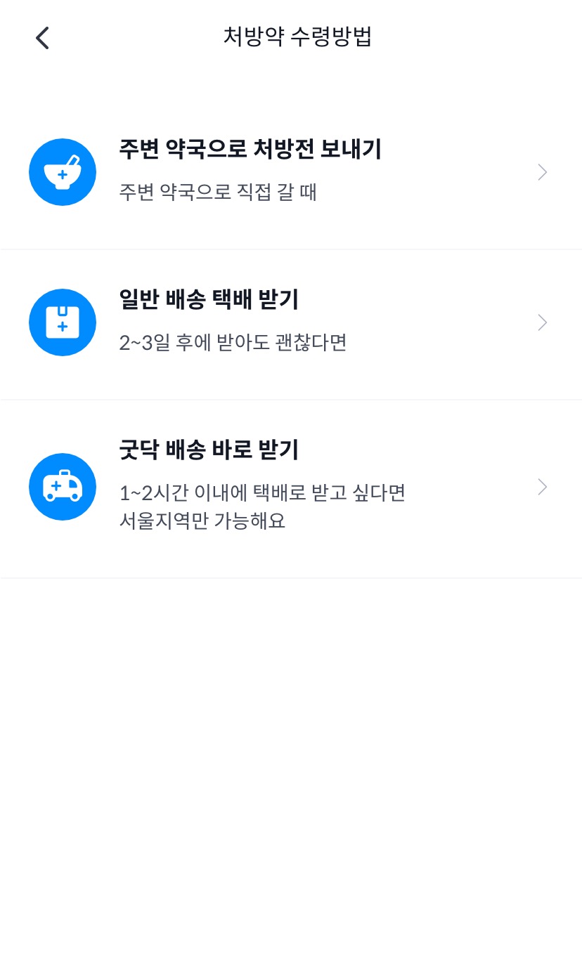 서울 모든 지역은 바로 받기가 가능하다! 주소 입력하고 신청하면 퀵으로 오는데, 나 같은 경우는 구로구에 있는 약국에서 우리 집까지 한두 시간 정도 걸린 거 같다. 약 조제 시간이랑 기사 배치 시간 등등 고려하면 괜찮은 듯. 일단 가져다주는 게 너무 편해서 불만 없다.