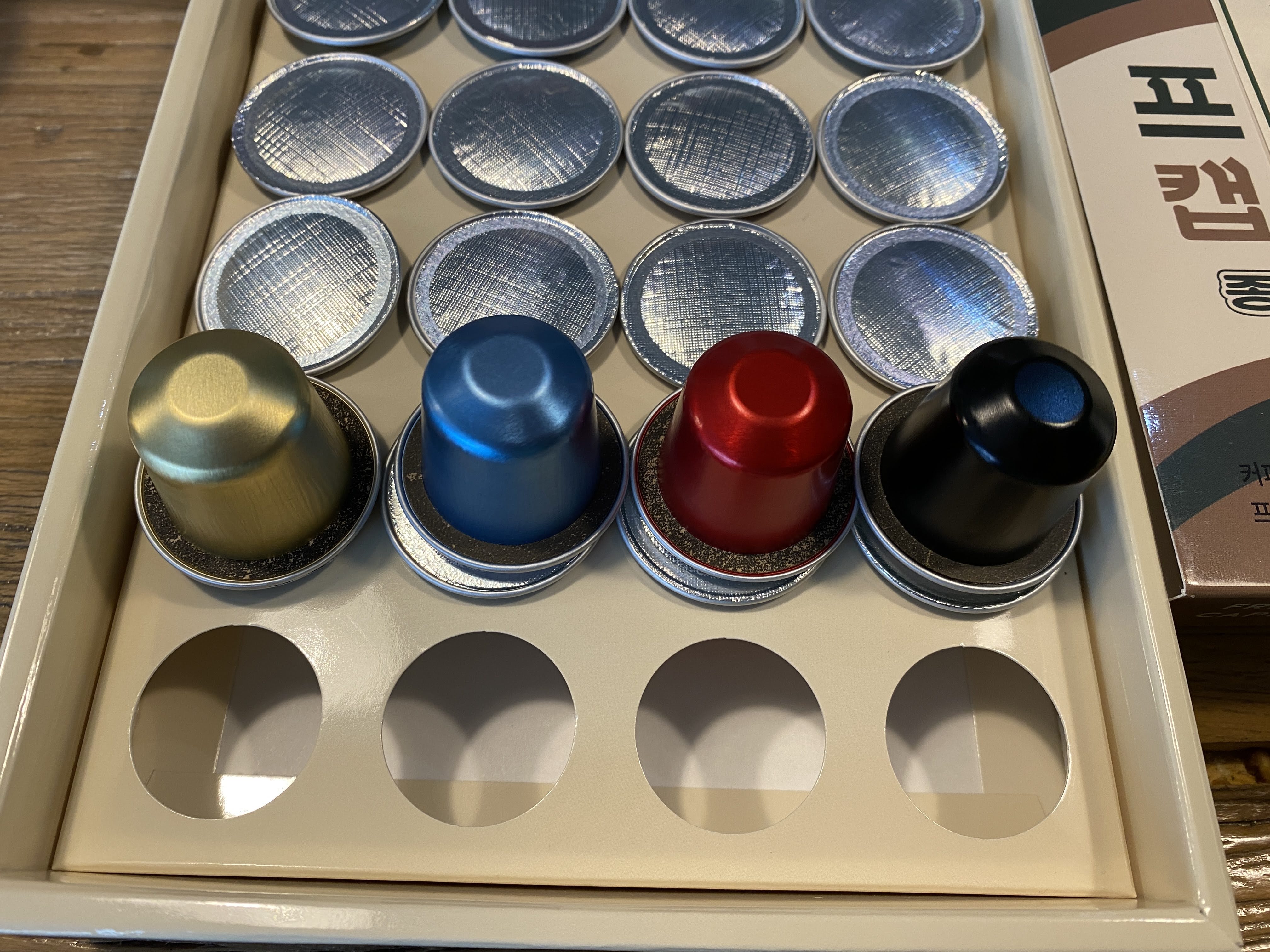 4가지 맛이 5캡슐씩 들어 있다. 상자 안에는 어떤 게 어떤 커피인지, 그리고 어떻게 먹는 게 가장 맛있는지 소개하는 종이가 들어 있다.