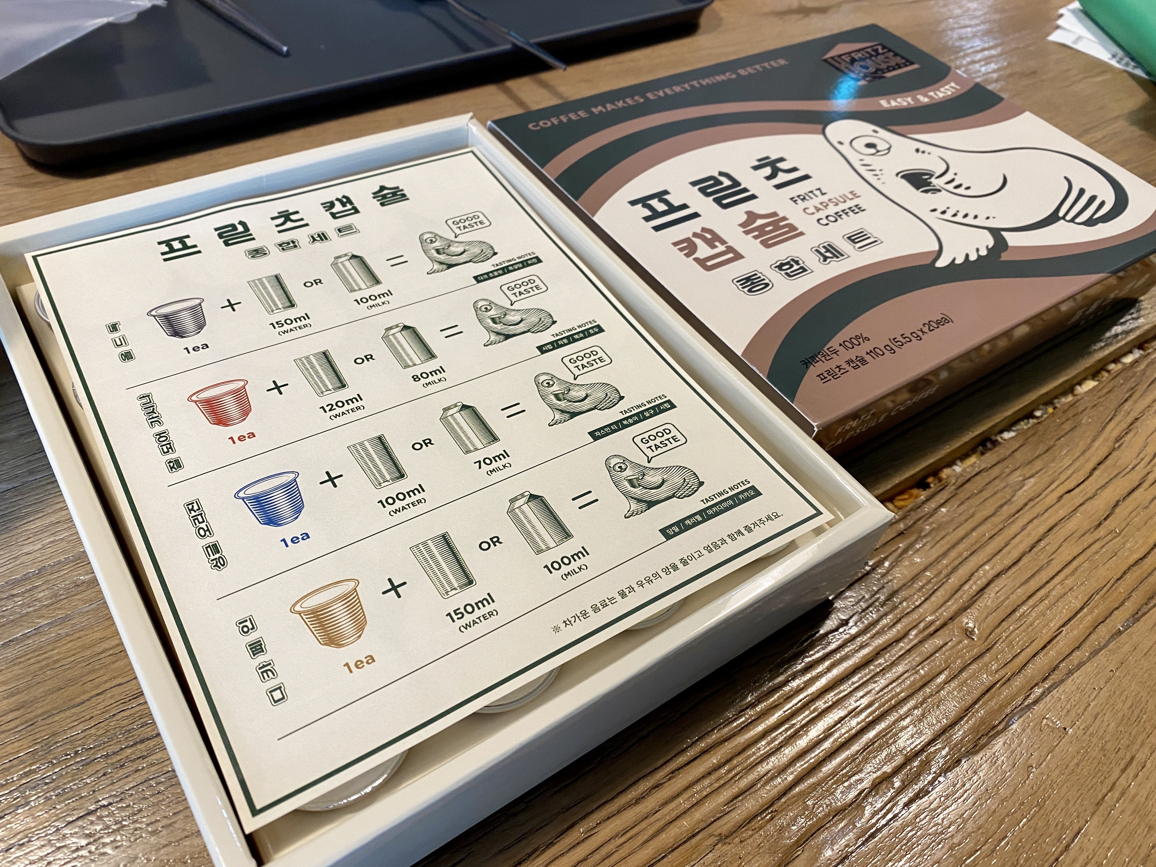 다만 다른 캡슐 커피에 비해 맛이 좀 연하다. 프릳츠가 원래 드립도 맛이 연한 편인데 그래서 그런지 네스프레소나 스타벅스 캡슐보다는 훨씬 부드러운 맛이 난다.