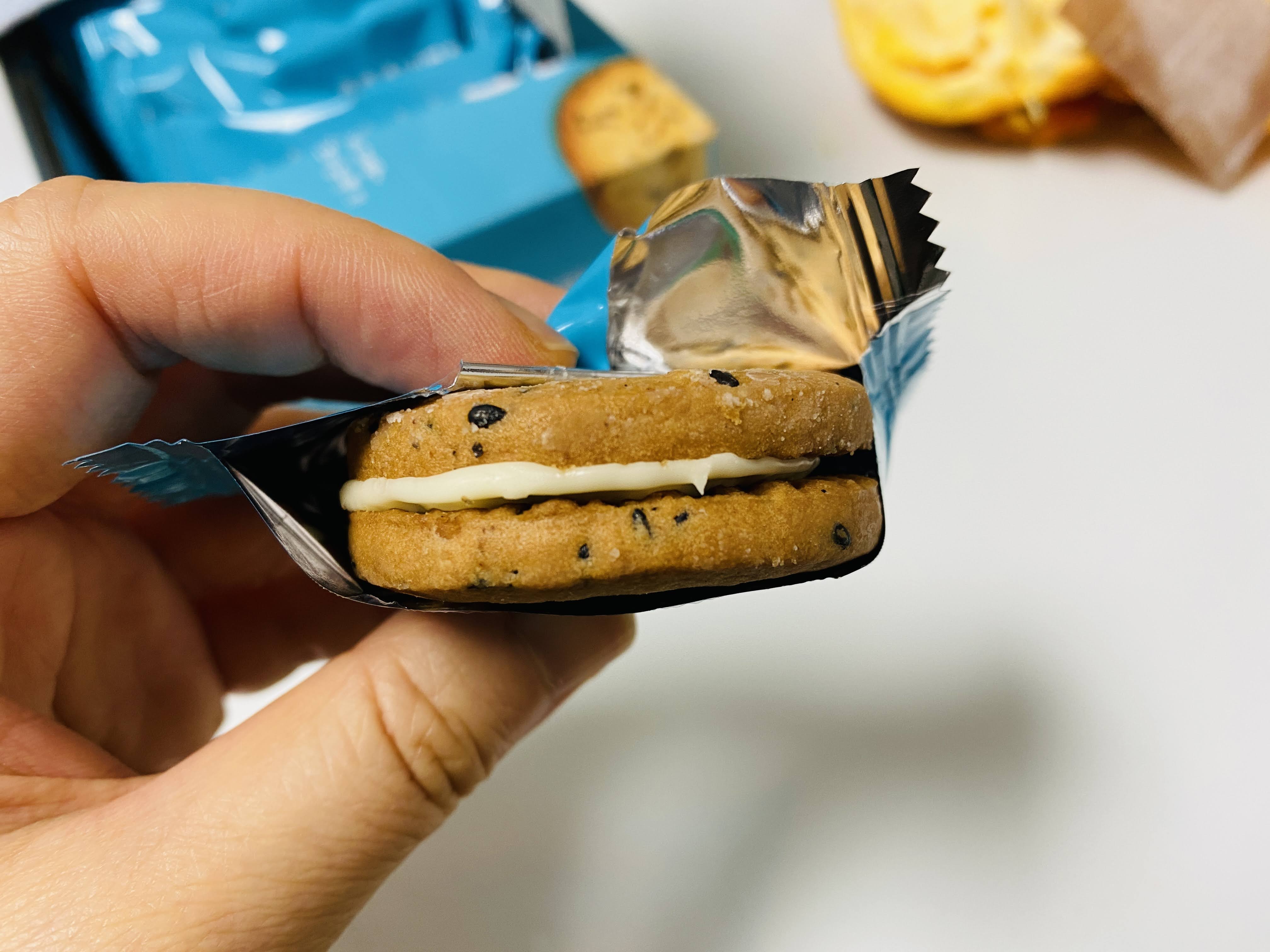 쿠키 식감은 다이제 샌드랑 좀 비슷하고, 맛은 곡물쿠키 맛! 고소한 게 아주 일품이다.