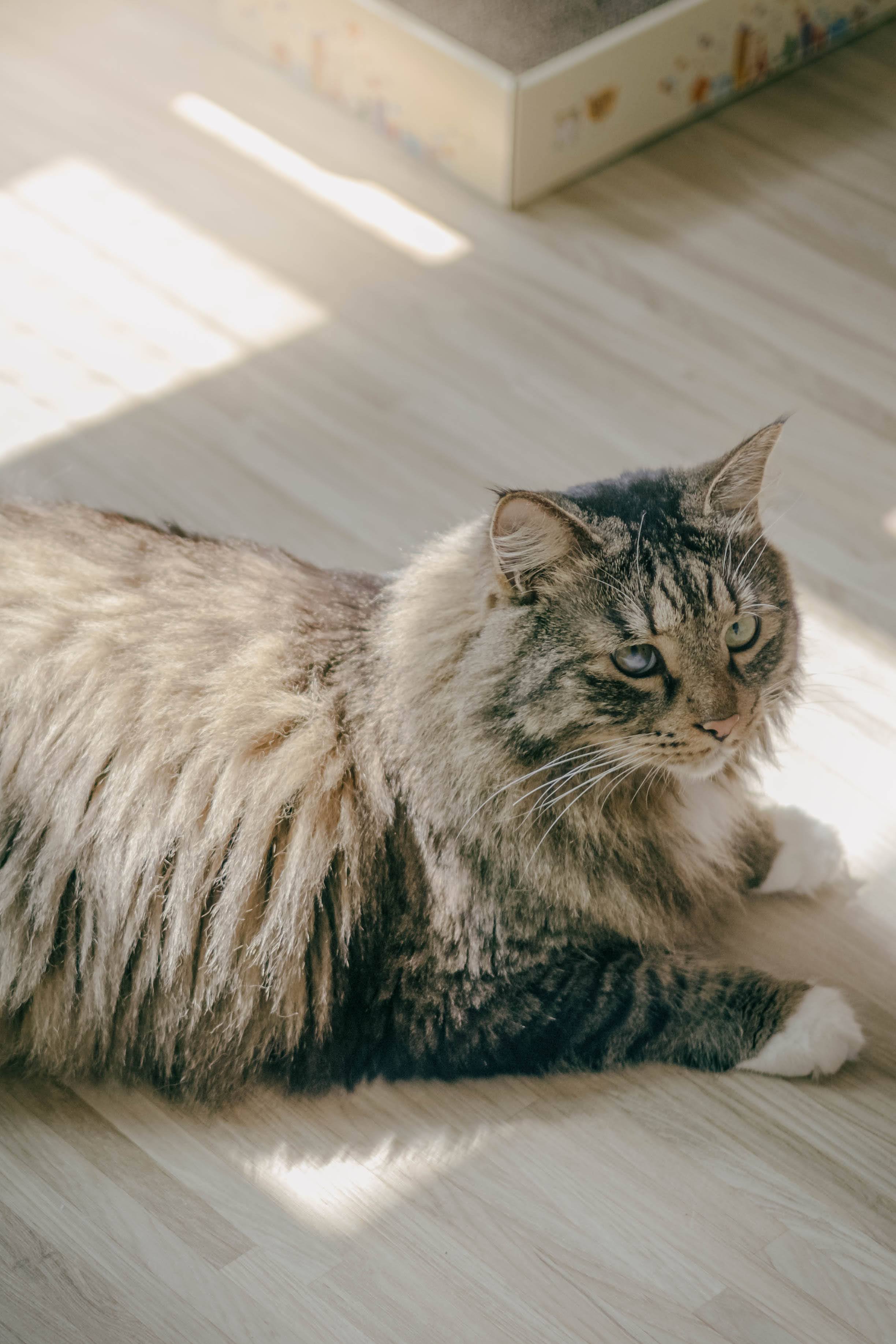 늦은 오후가 되어 길게 떨어지는 햇빛 조각이 방바닥 위를 구르면 고양이도 함께 그 위를 구른다.