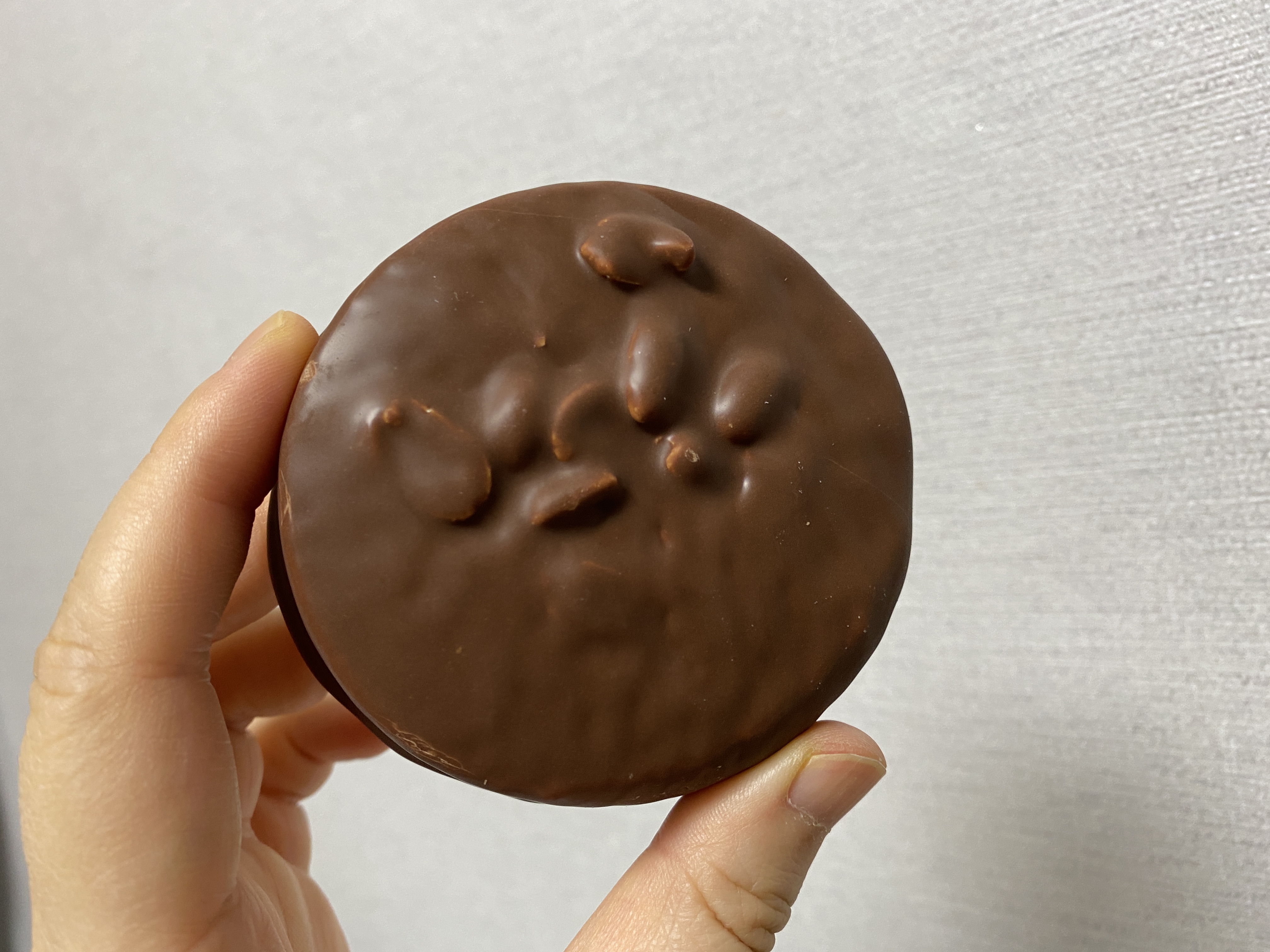 꼭 초코파이나 몽쉘 같은 느낌. 초코코팅이 아주 야무지다. 저 올록볼록한 부분은 아몬드가 숨어 있는 곳이다.