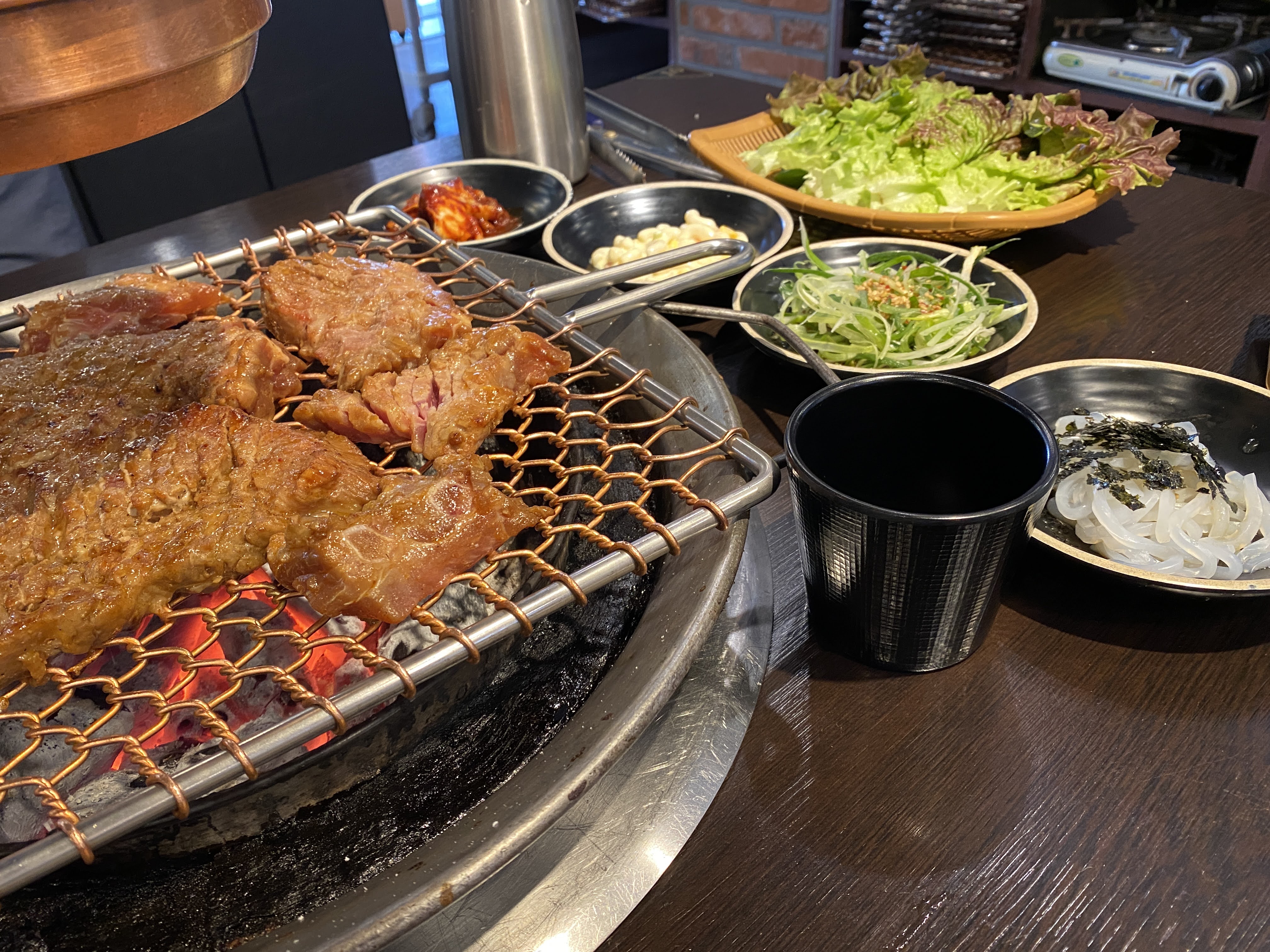 양념갈비를 맛깔스럽게 구워서 타기 전에 호록호록 입속으로 들여보낸다.