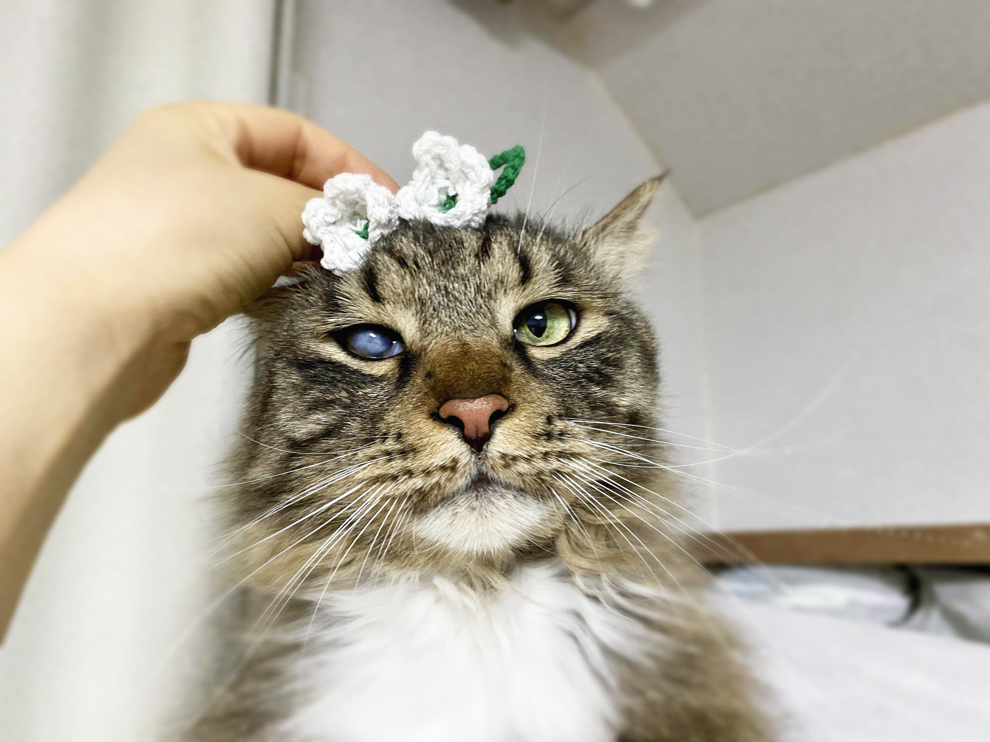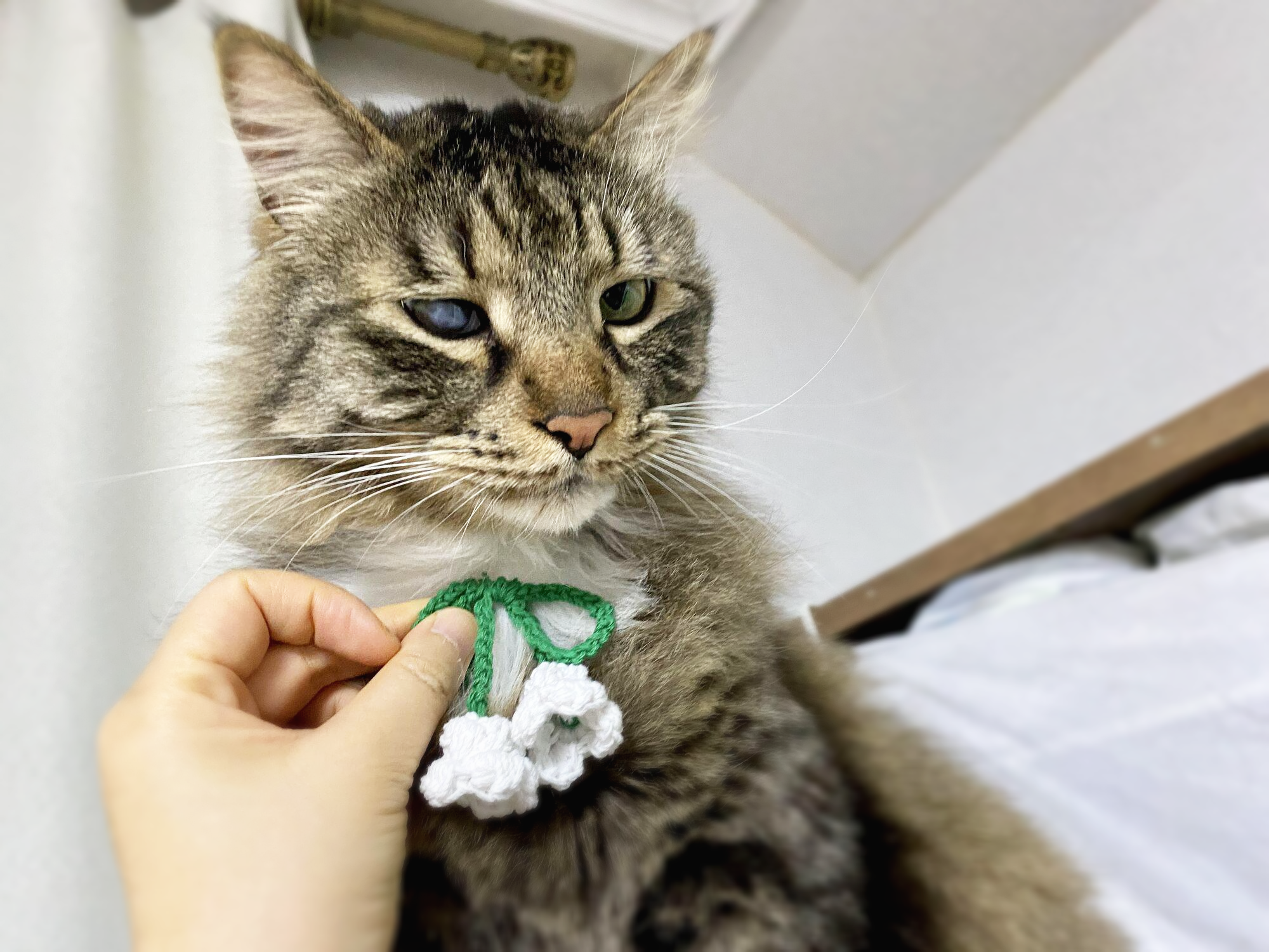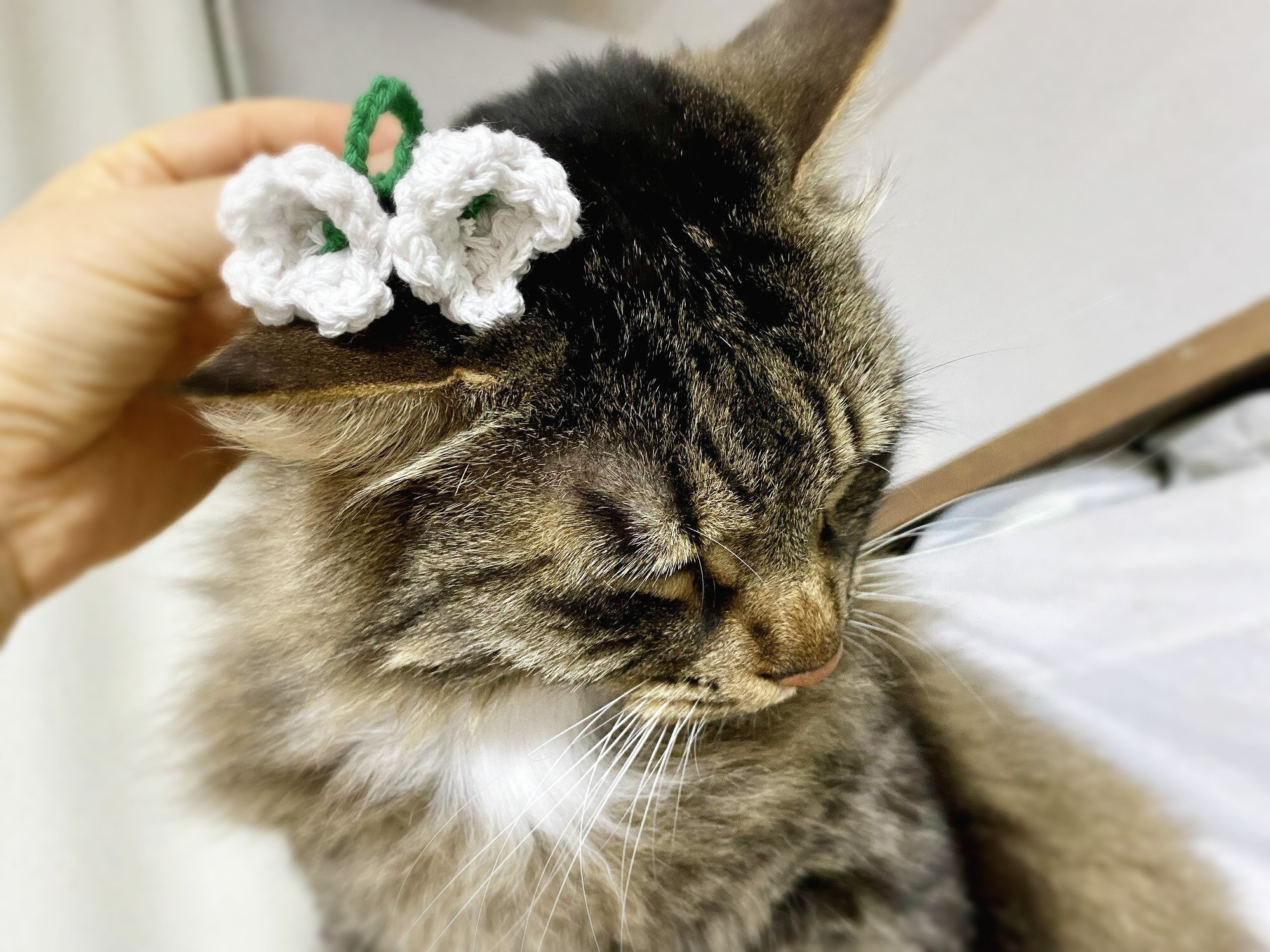 리본 만든 김에 핀에 붙여서 선물하려고 하다가 고양이한테 한번 대 봤는데, 생각보다 잘 어울려서 뜻밖의 촬영회 진행.