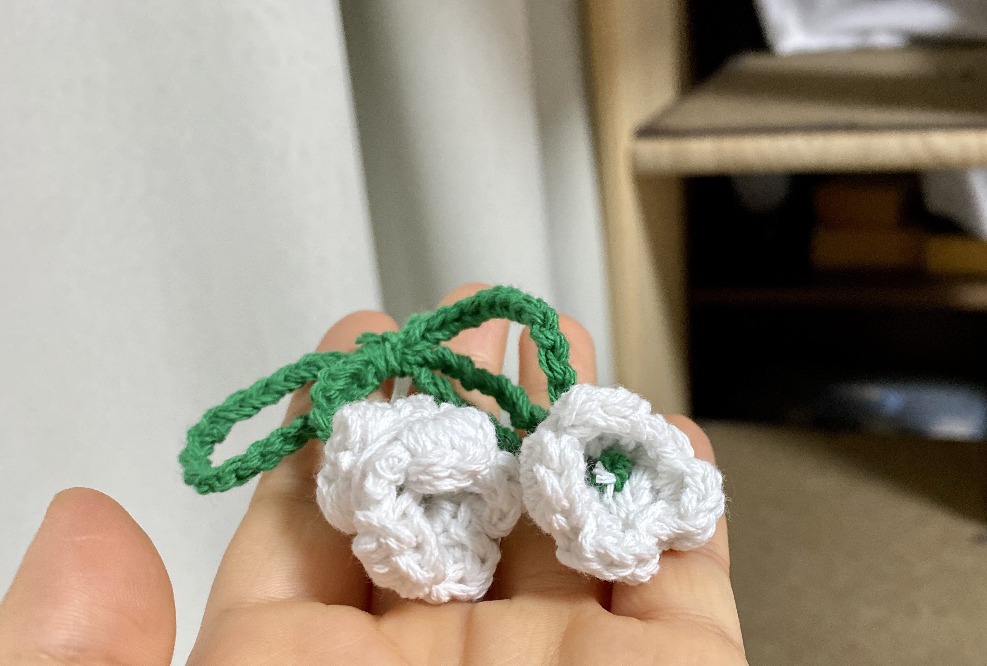 실에 따라서 줄기는 이중사슬로 안 해도 될 거 같다. 난 귀찮아서 그냥 사슬뜨기로만 슉슉. 이중사슬뜨기 하니까 내 실로는 너무 줄기가 두툼해지기도 해서 별로 안 예뻤다.