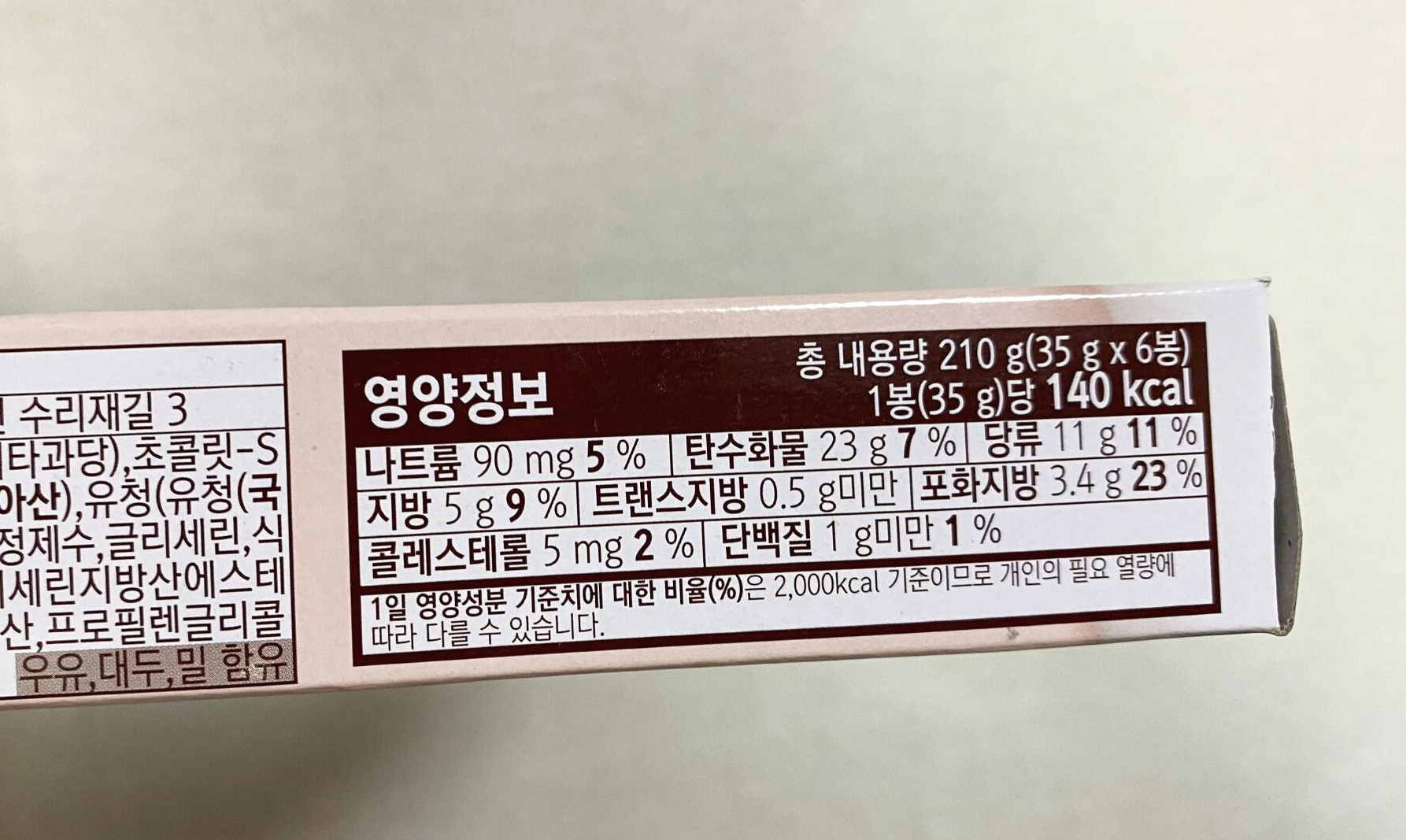 영양정보! 찰떡파이인 데다가 달달한 쿠키칩까지 들어가니까 1봉당 칼로리는 꽤 높은 편이다.