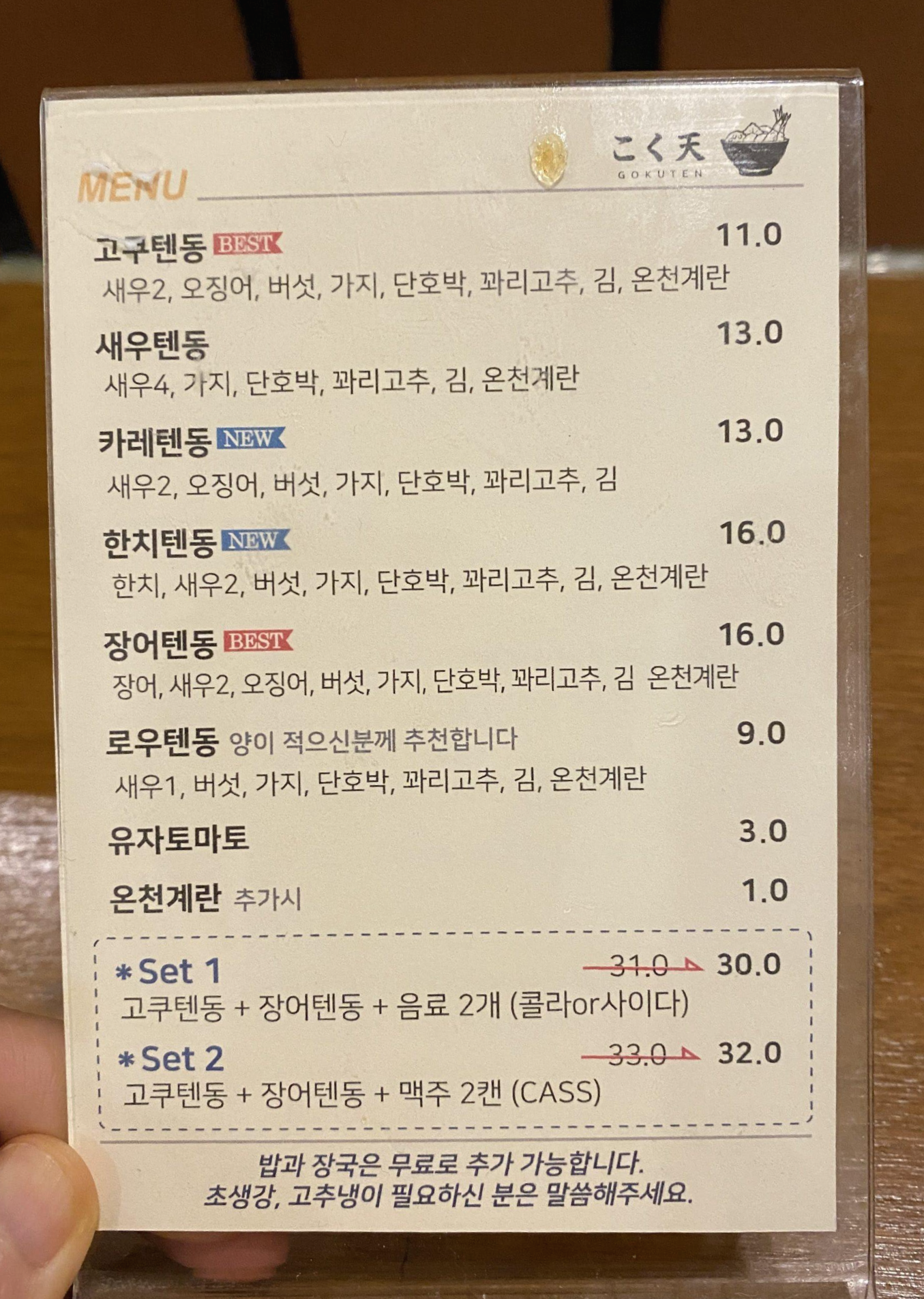 메뉴판을 한참 보다가 카레텐동을 주문했다. 튀긴 음식을 먹을 때 카레가 곁들여지면 훨씬 위장이 편하다. 또 내가 워낙 카레를 좋아하기도 하고 말이지.
