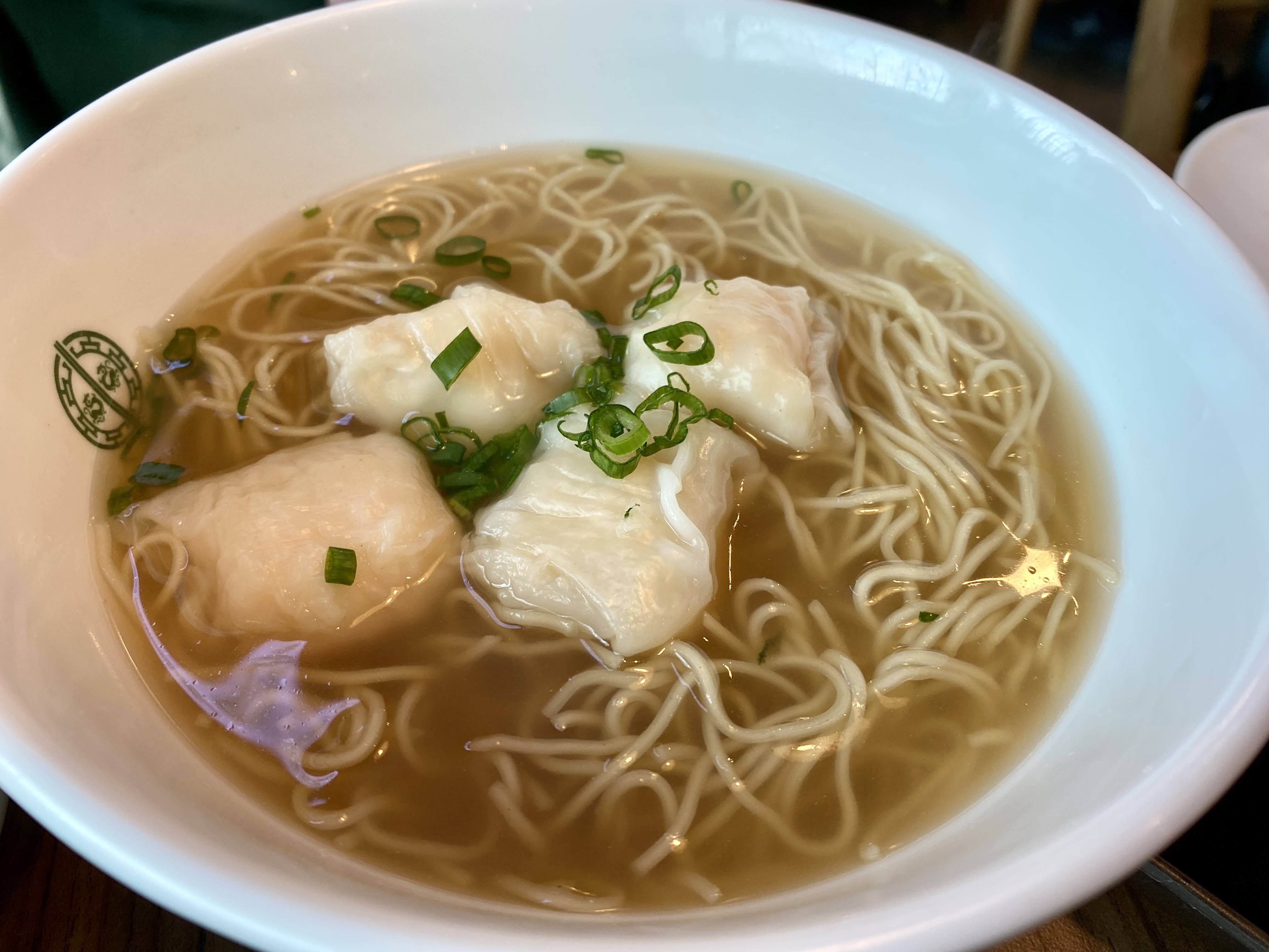 완탕면이 나왔는데 위에 만두는 새우살이 아주 통통하게 잘 씹힌다. 면은 가늘고 약간 씹히는 맛이 살아 있고 국물은 적당히 담백한 편.