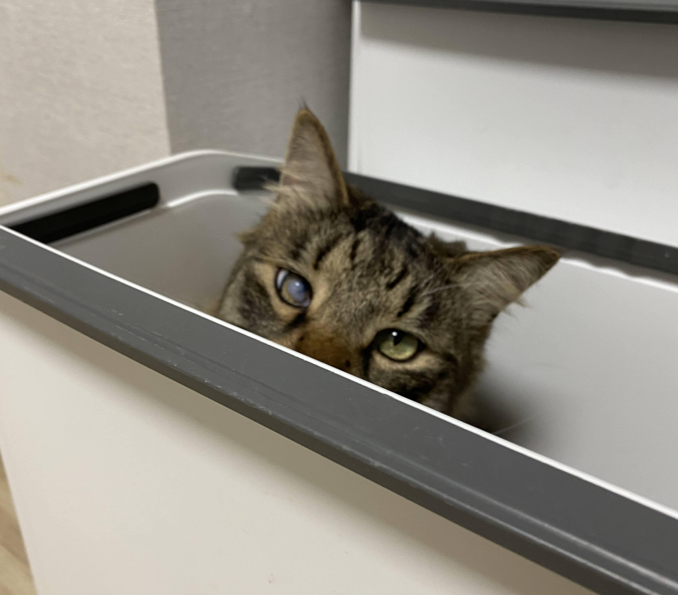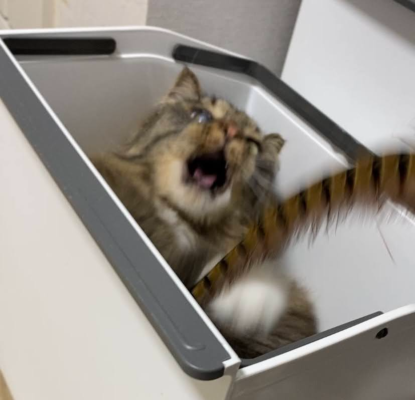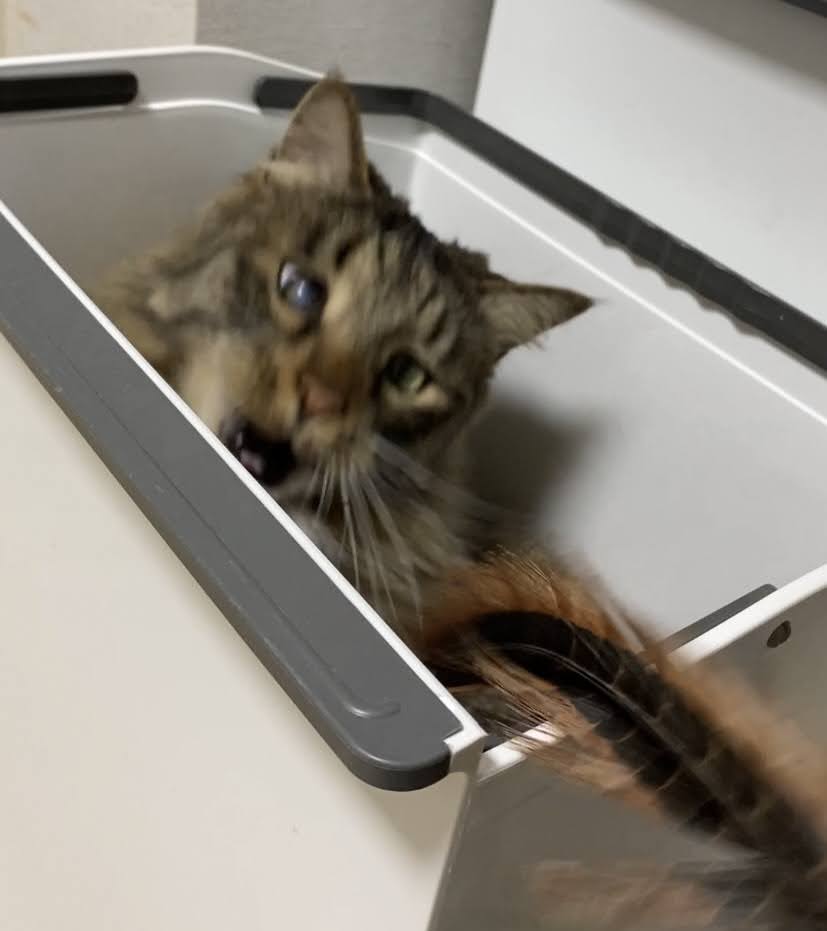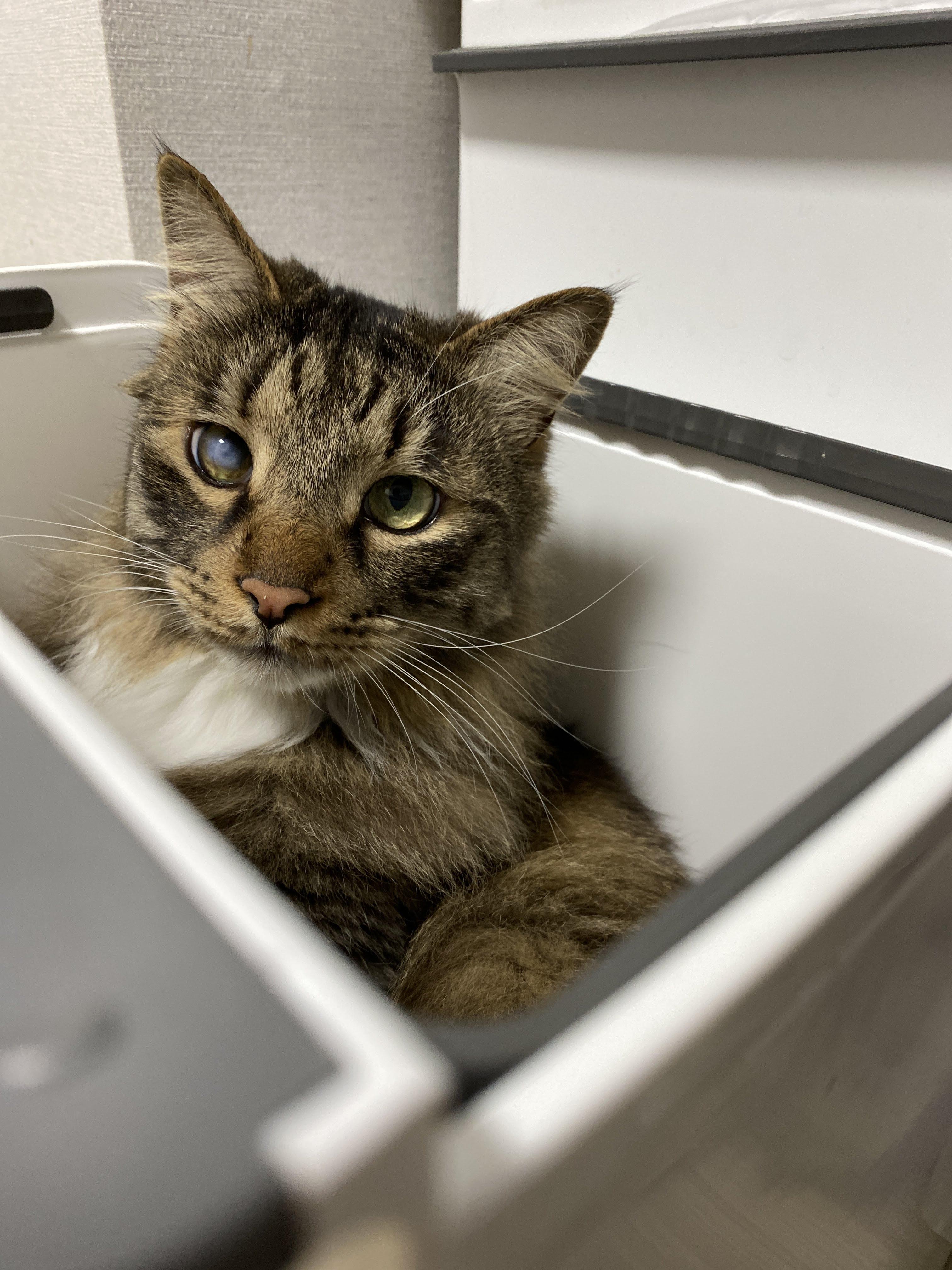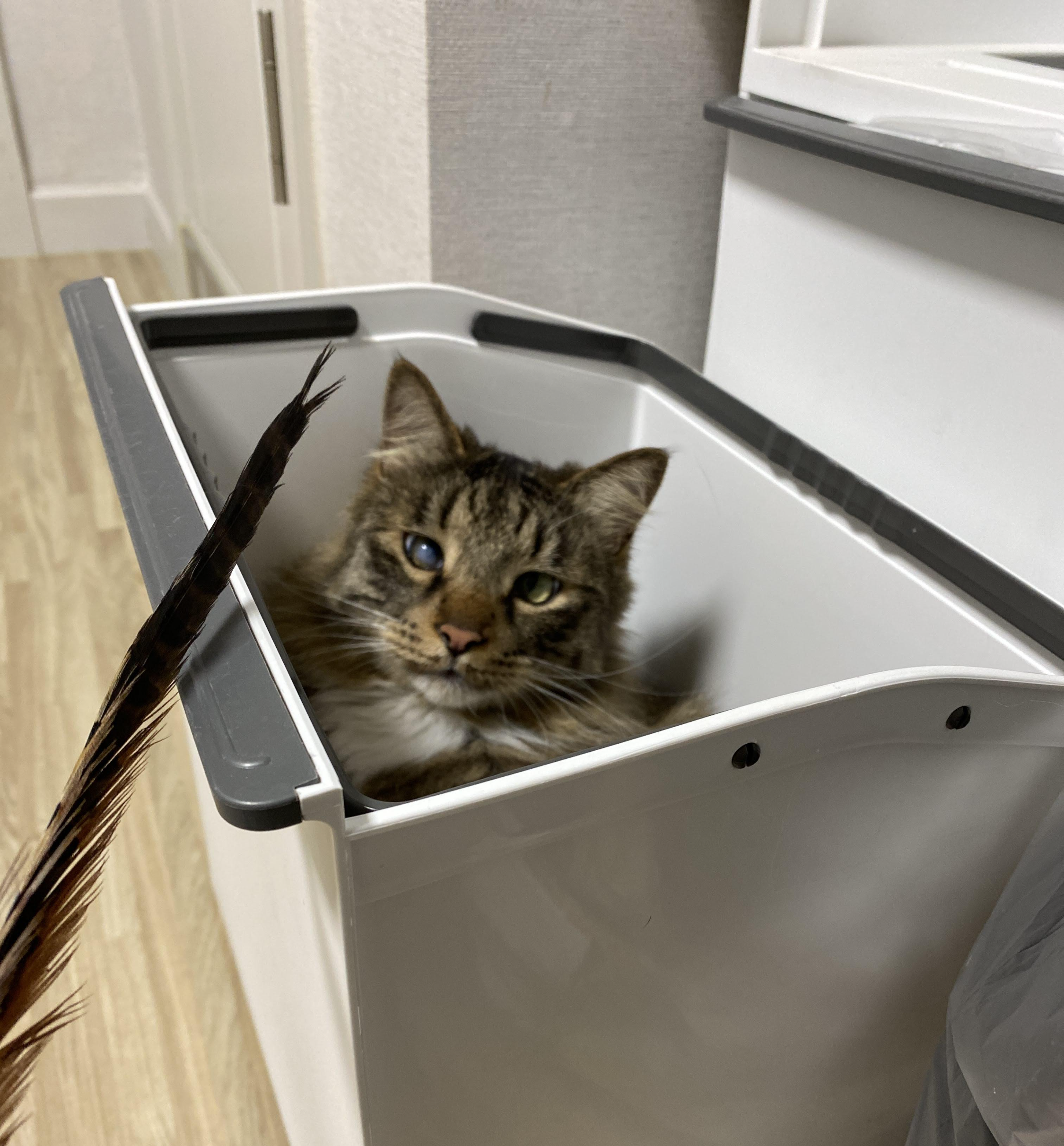 분리수거함을 비워야 해서 꺼내놨더니 어느새 고양이가 와서 자리 잡았다.