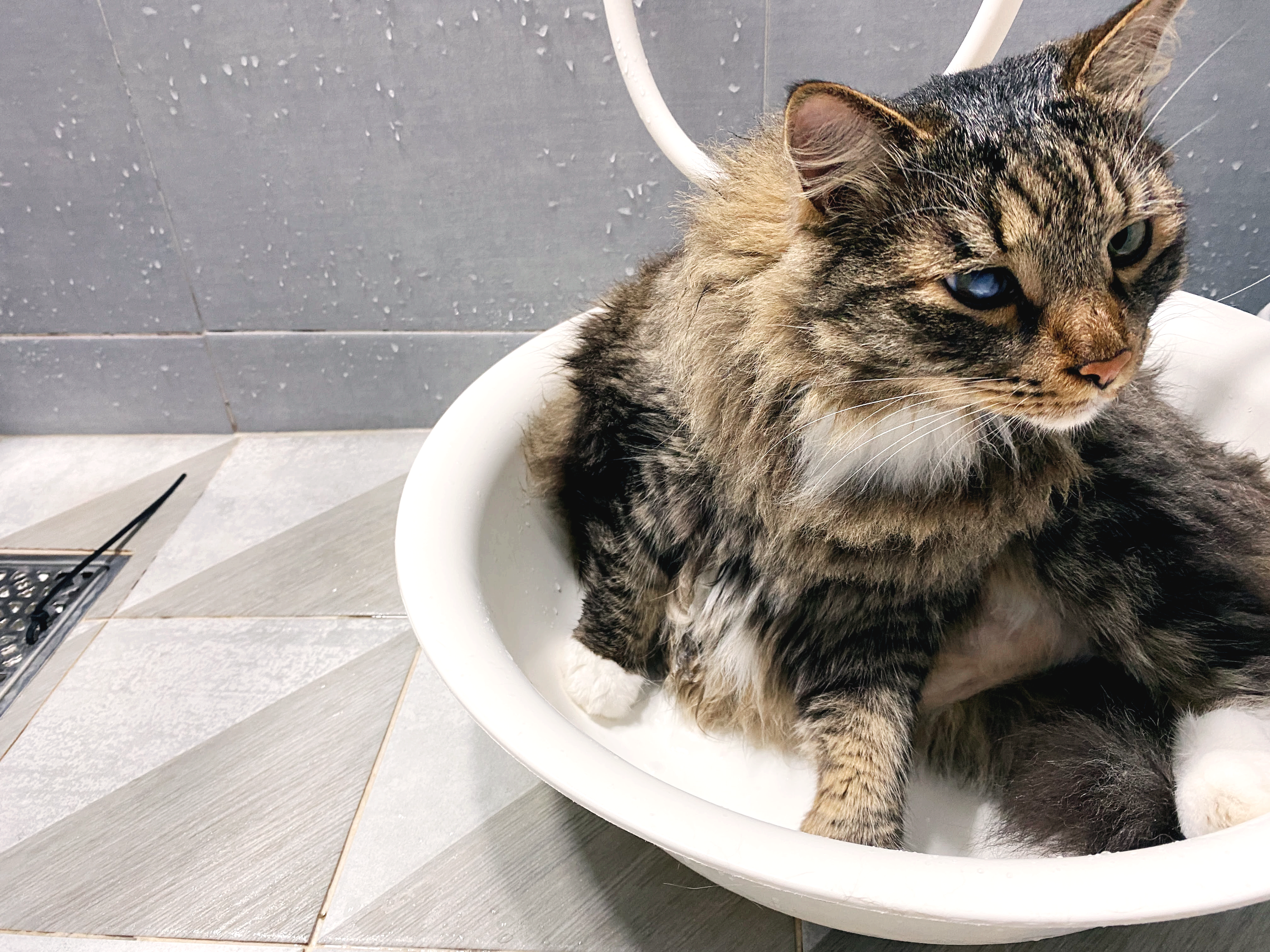 증거 3. 가끔 목욕을 시킬 일이 생기면, 썩 행복해하진 않지만 울거나 반항하지 않는다.