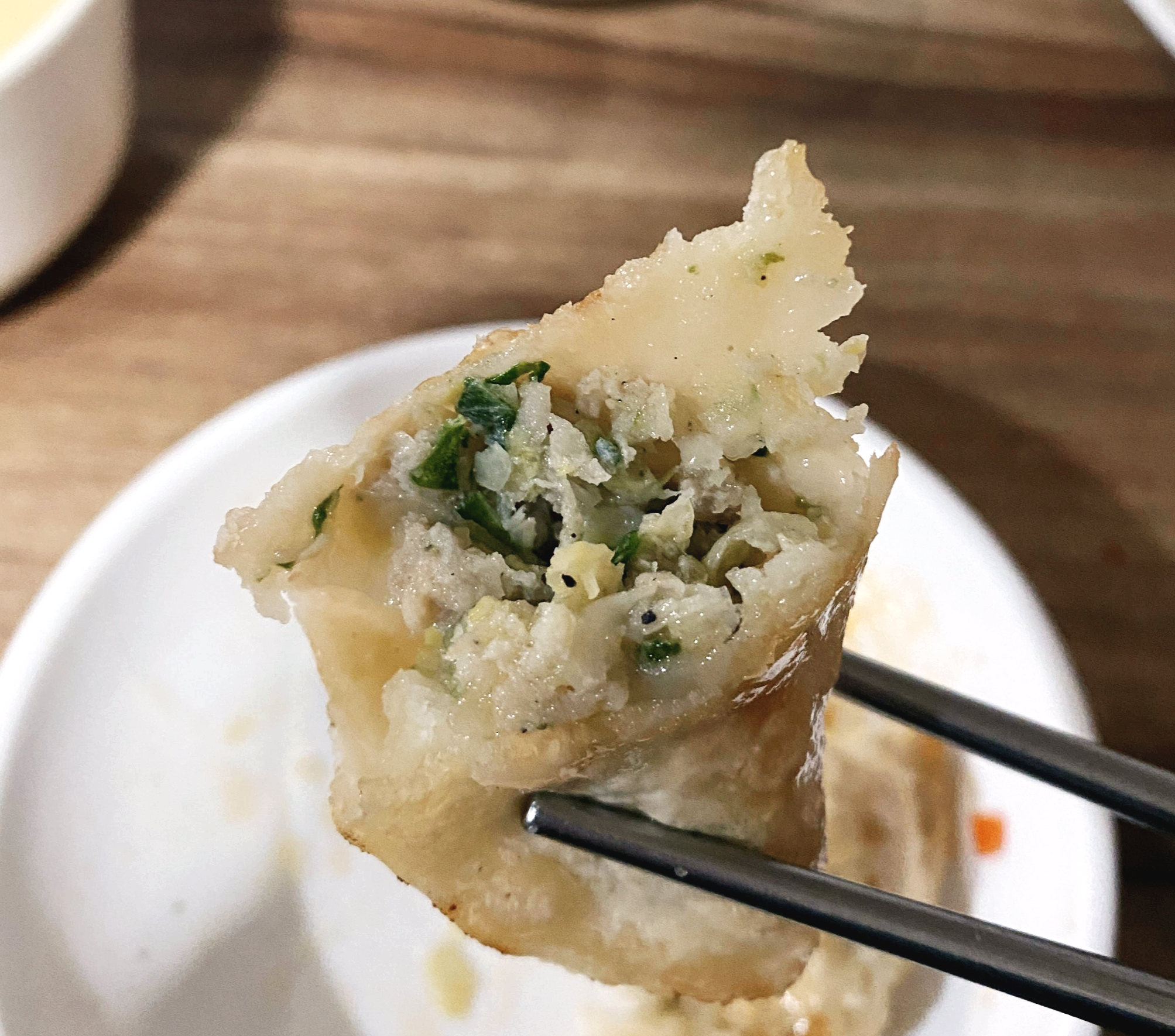 동글동글 군만두. 튀긴 거라서 속이 무척 뜨거우니까 젓가락으로 구멍 뚫어서 김을 좀 뺀 다음에 먹는 게 좋다.