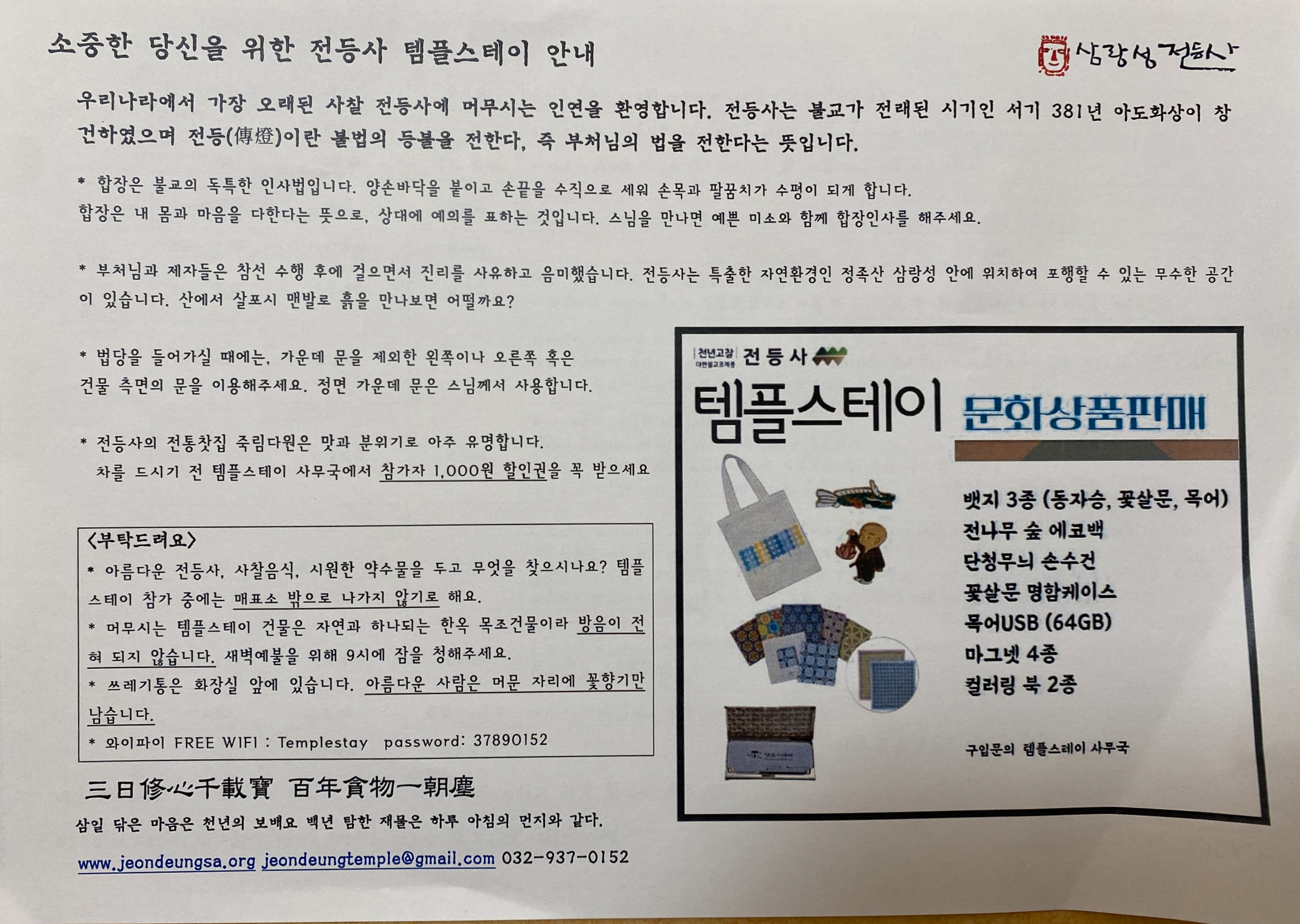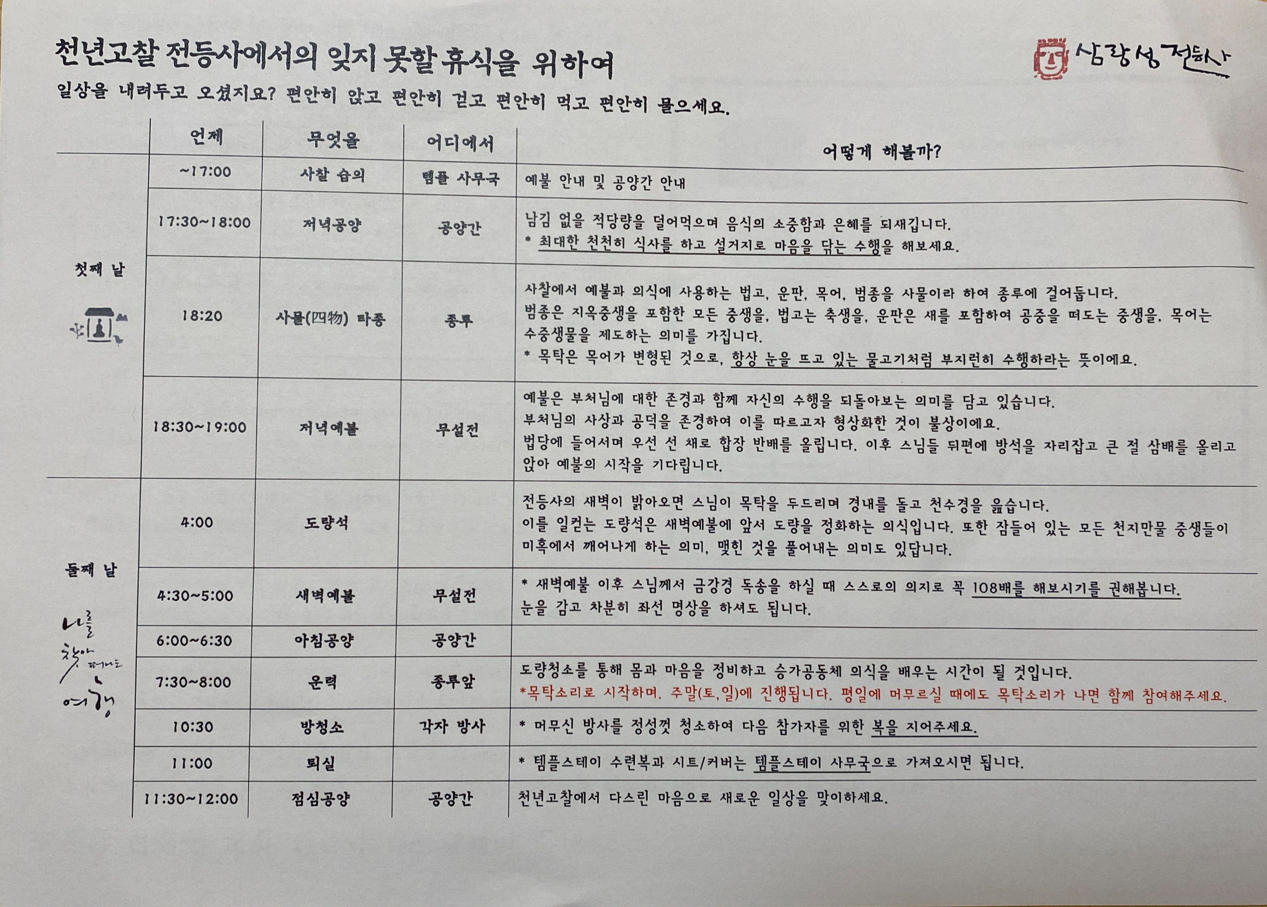 **그런데 왜 템플 스테이라고 할까. 엄마가 처음에 템플 스테이가 뭔지 몰라서 당황스러워했다. 그냥 '사찰 체험' 정도로만 해도 좋을 텐데.