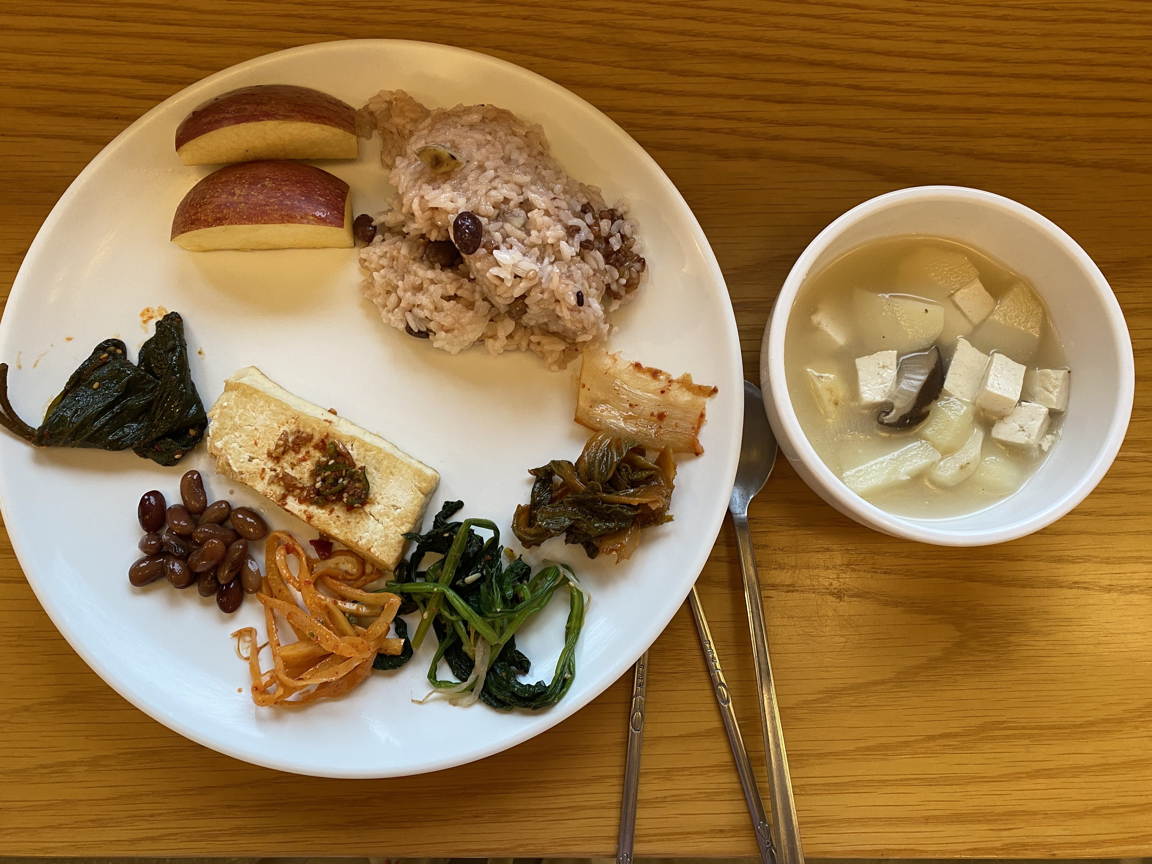 첫 절밥. 생각보다 맛있었다. 원래 채식을 좋아하는 엄마는 정말 잘 드셨다. 기름기가 적어서 먹기 편하다고 하시며 평소 먹던 양보다 많이 드셨다.