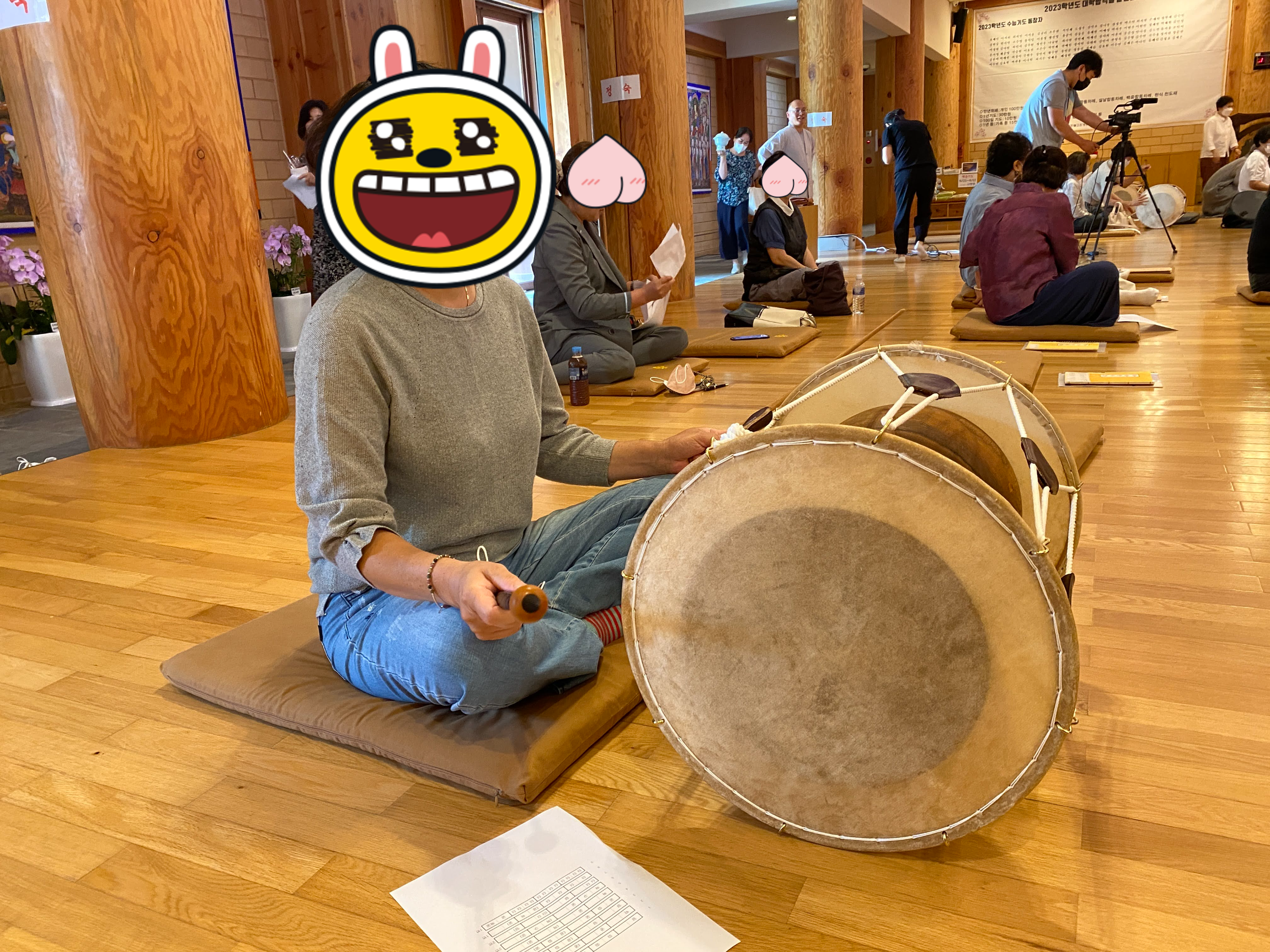 수업 끝나고 나니까 세상 후련한 얼굴이길래, 이 장구 수업만으로도 템플 스테이는 호평이겠구나 싶었다.