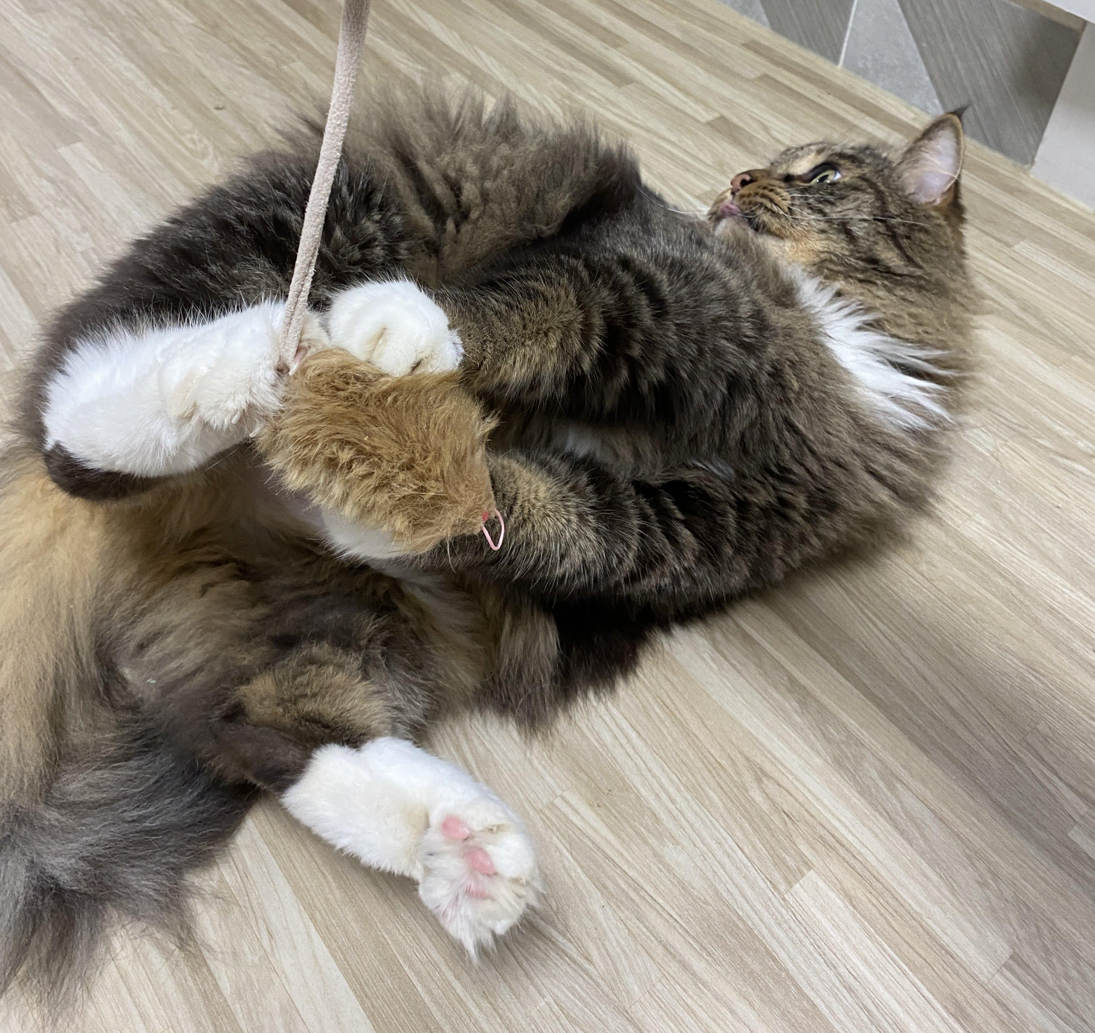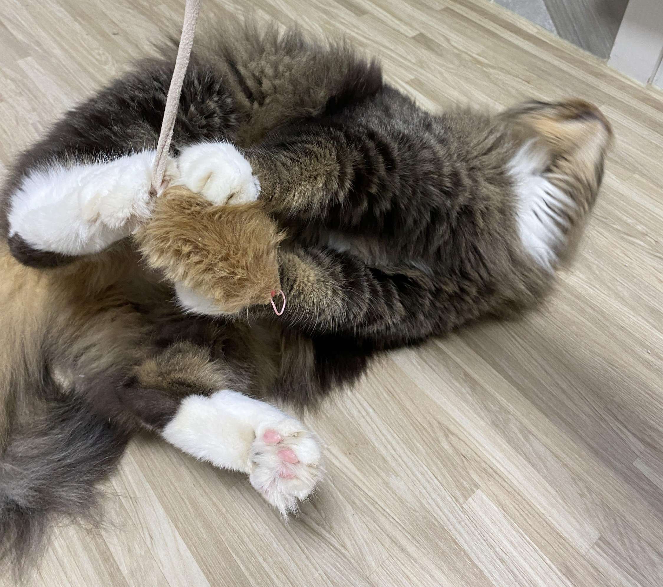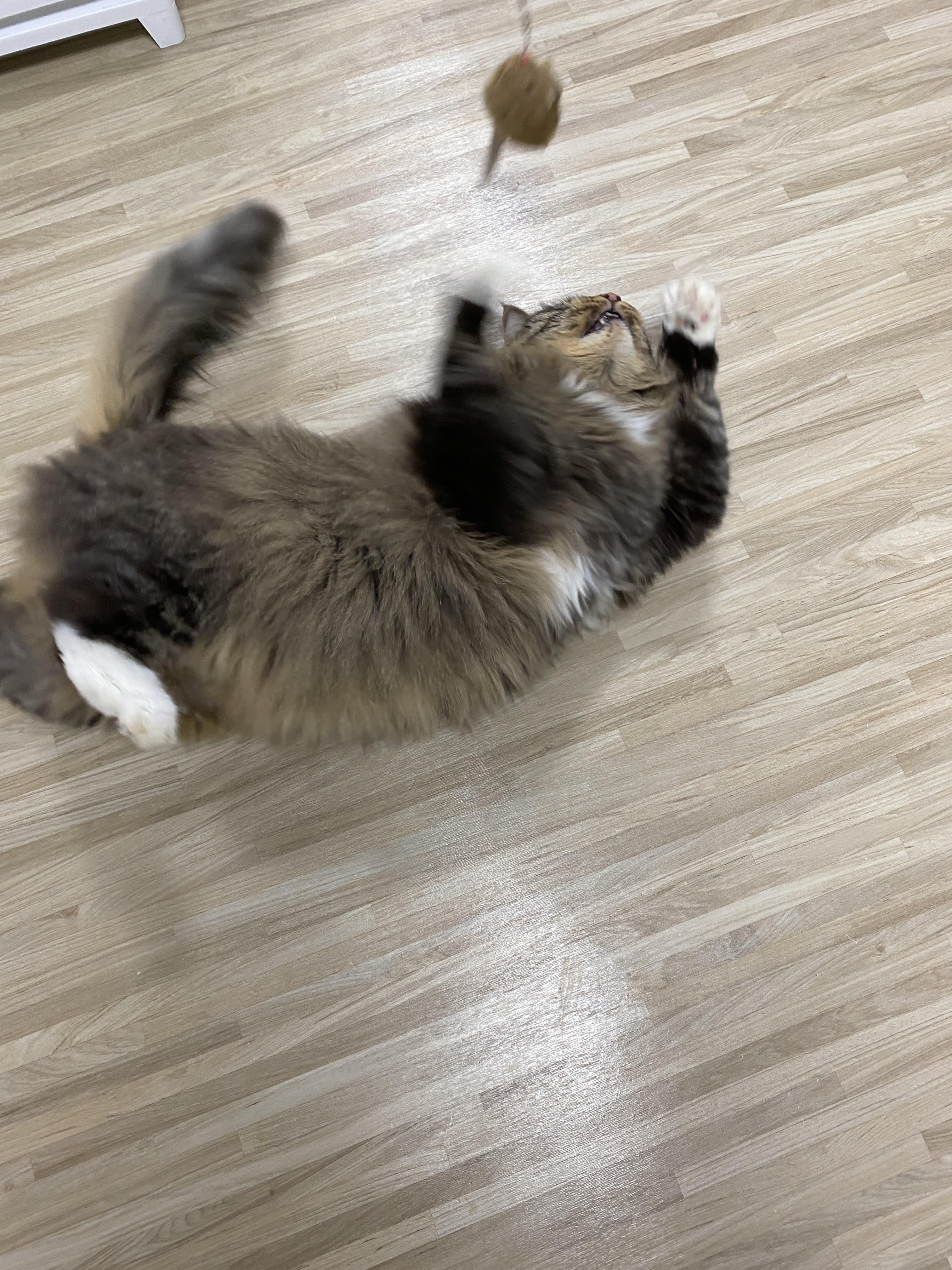 이 쥐돌이는 낚싯대에 안 걸고 그냥 던져 주기만 해도 뒷발 팡팡해 가면서 엄청 잘 논다.
