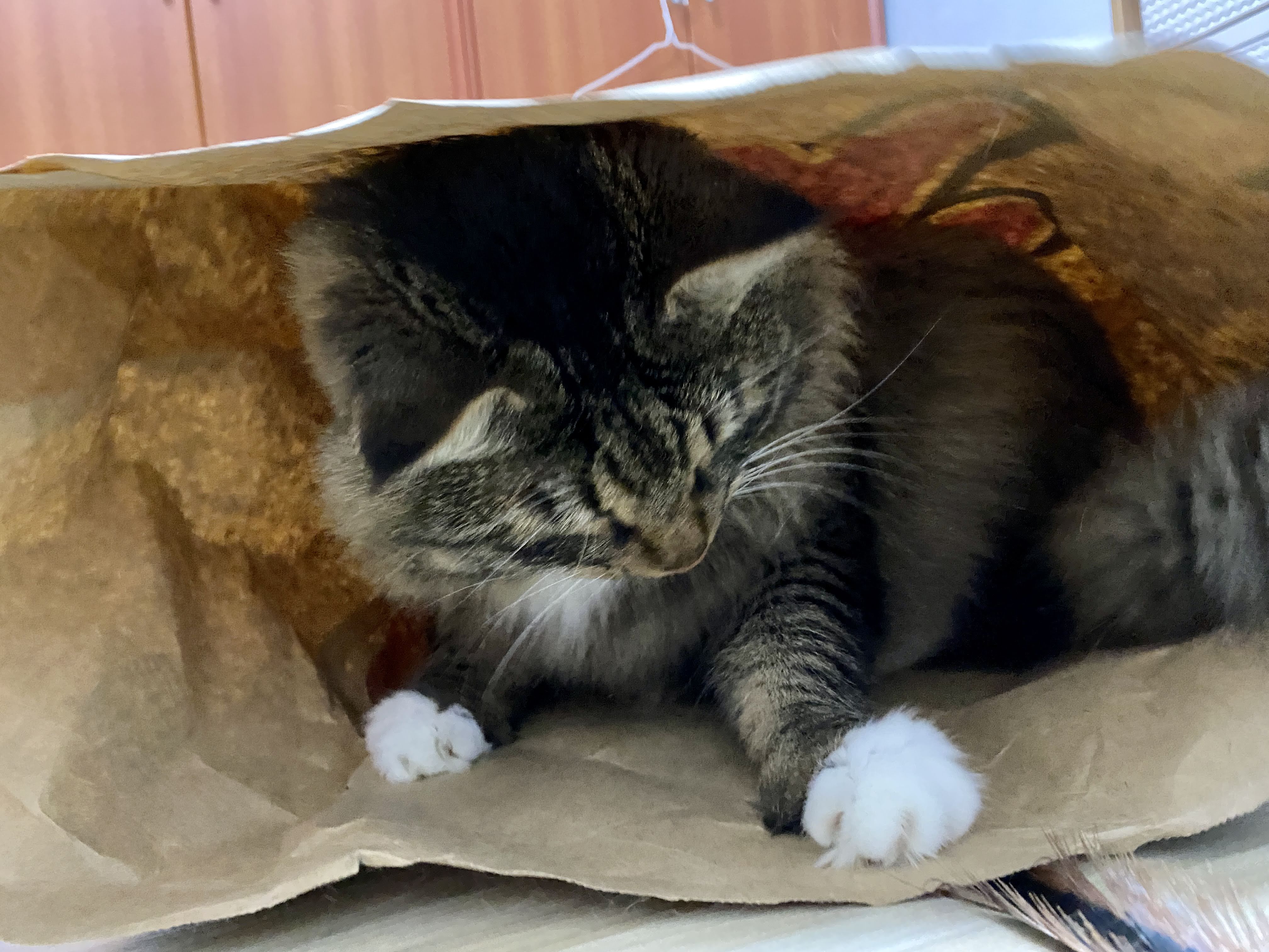 2마트 비닐 봉지와 종이 봉투 모두 엄청 좋아하는데 종이 봉투는 일단 하나 생기면 들어가서 안 나온다.