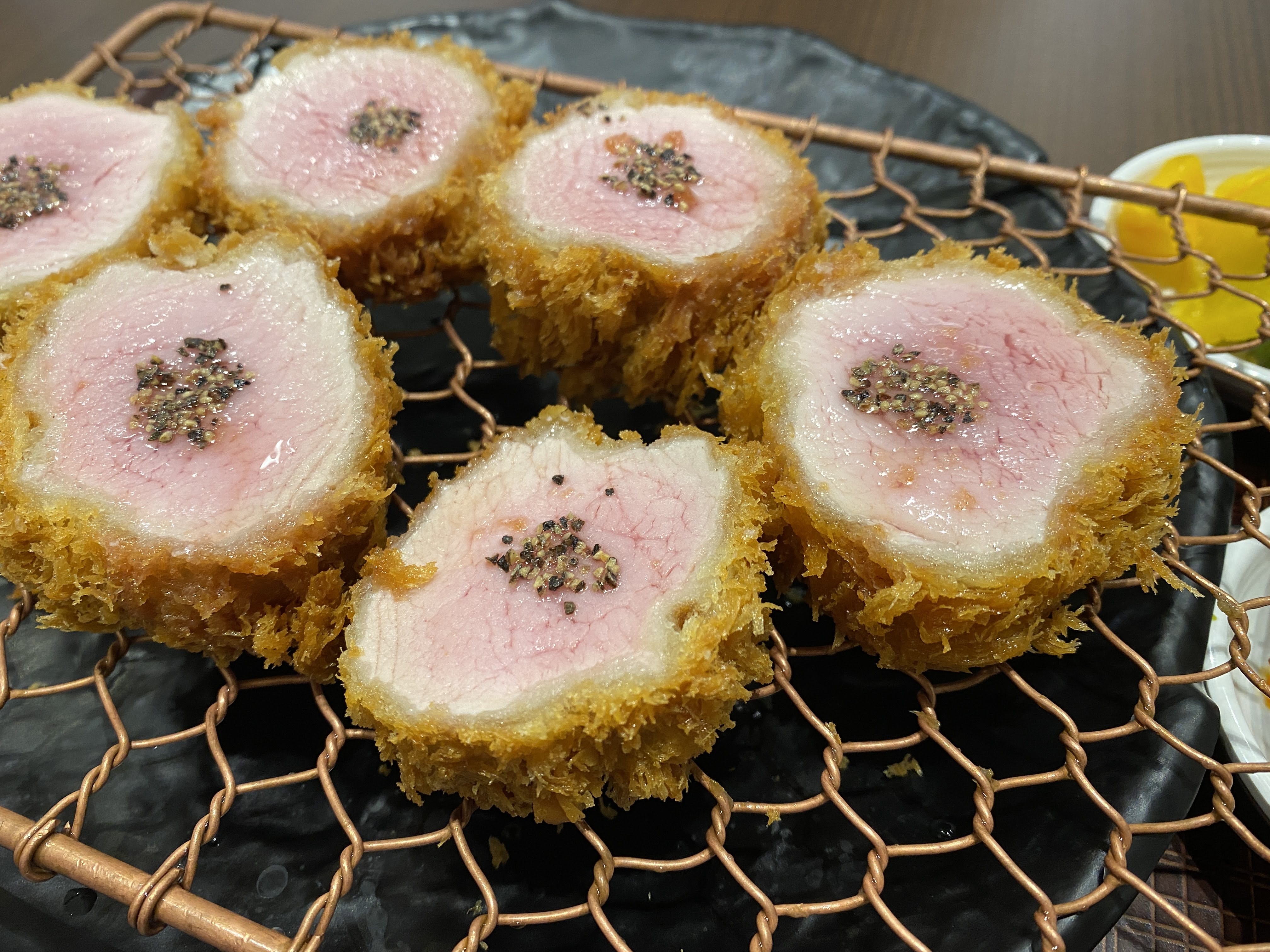 바삭하게 튀김옷이 입에 들어오고, 고기의 육질이 느껴지고 그다음 육즙이 배어 나오고!