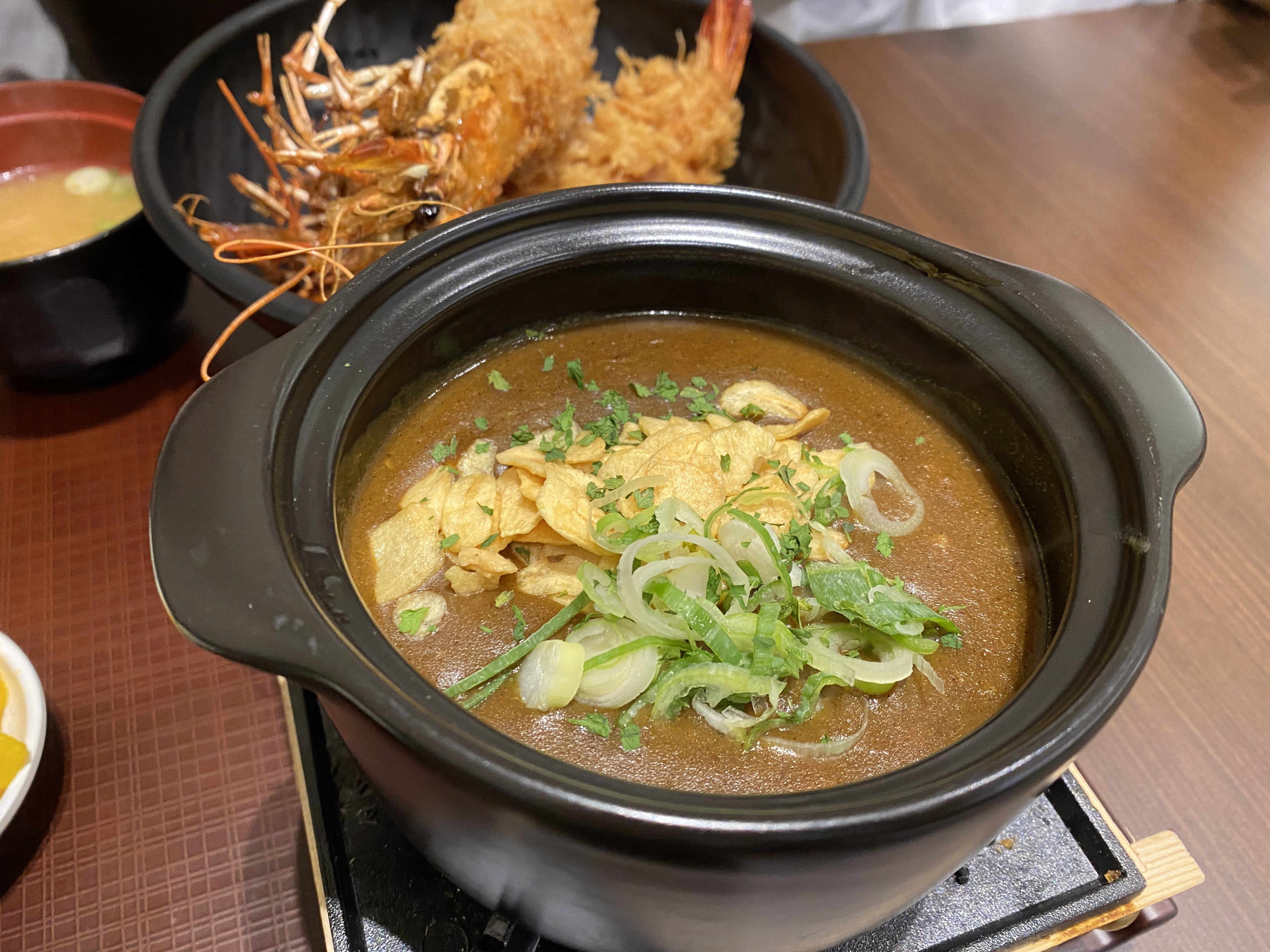 새우 튀김 카레는 상상을 뛰어넘는 거대 새우 튀김이 같이 나온다. 용왕님의 99982번째 아들쯤 되어 보이는 새우가 나오는데, 식감이 랍스터 뺨칠 만큼 탱탱하다.