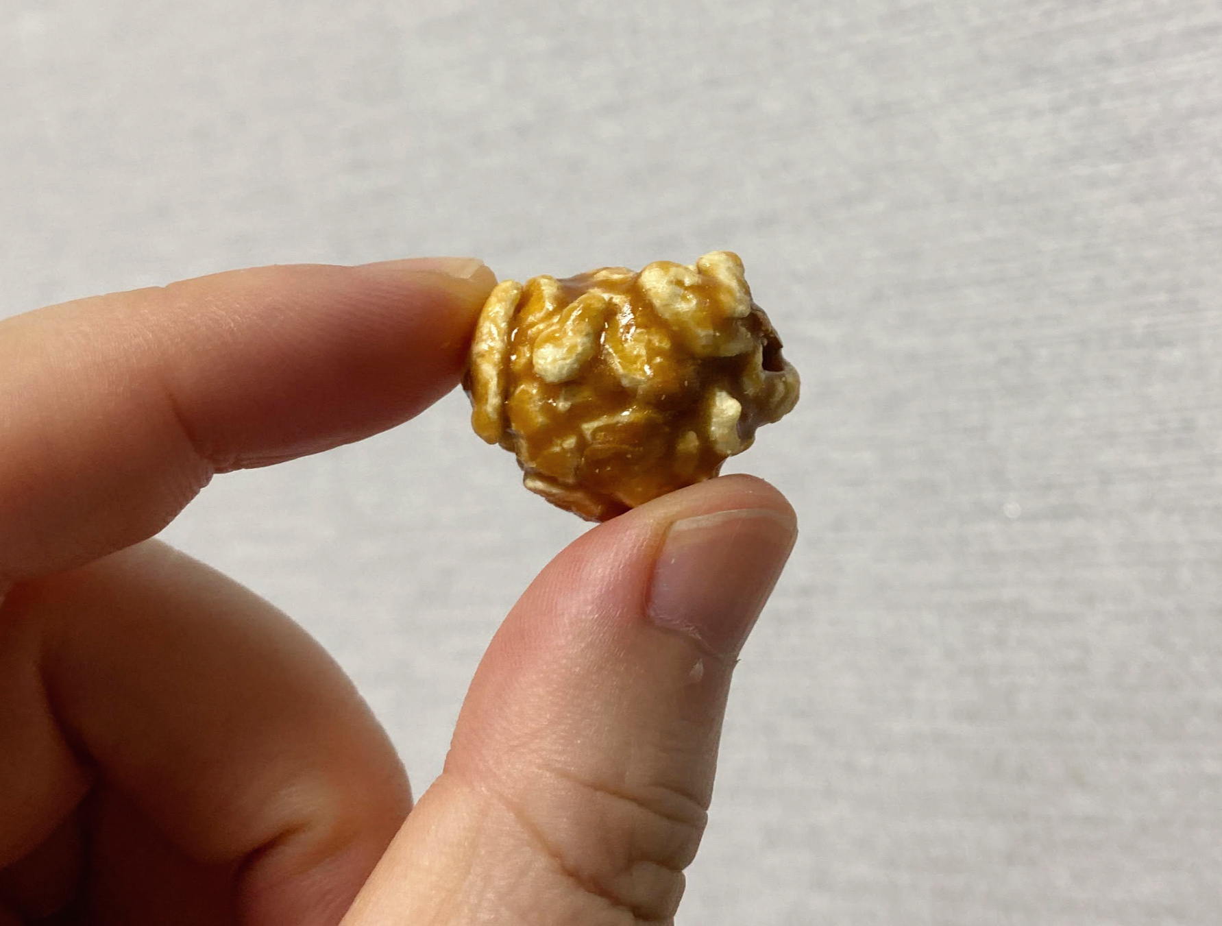 그리고 이렇게만 봐도 여태 먹었던 카라멜 팝콘 중에 카라멜이 가장 듬뿍 올려져 있다는 걸 알 수 있다.