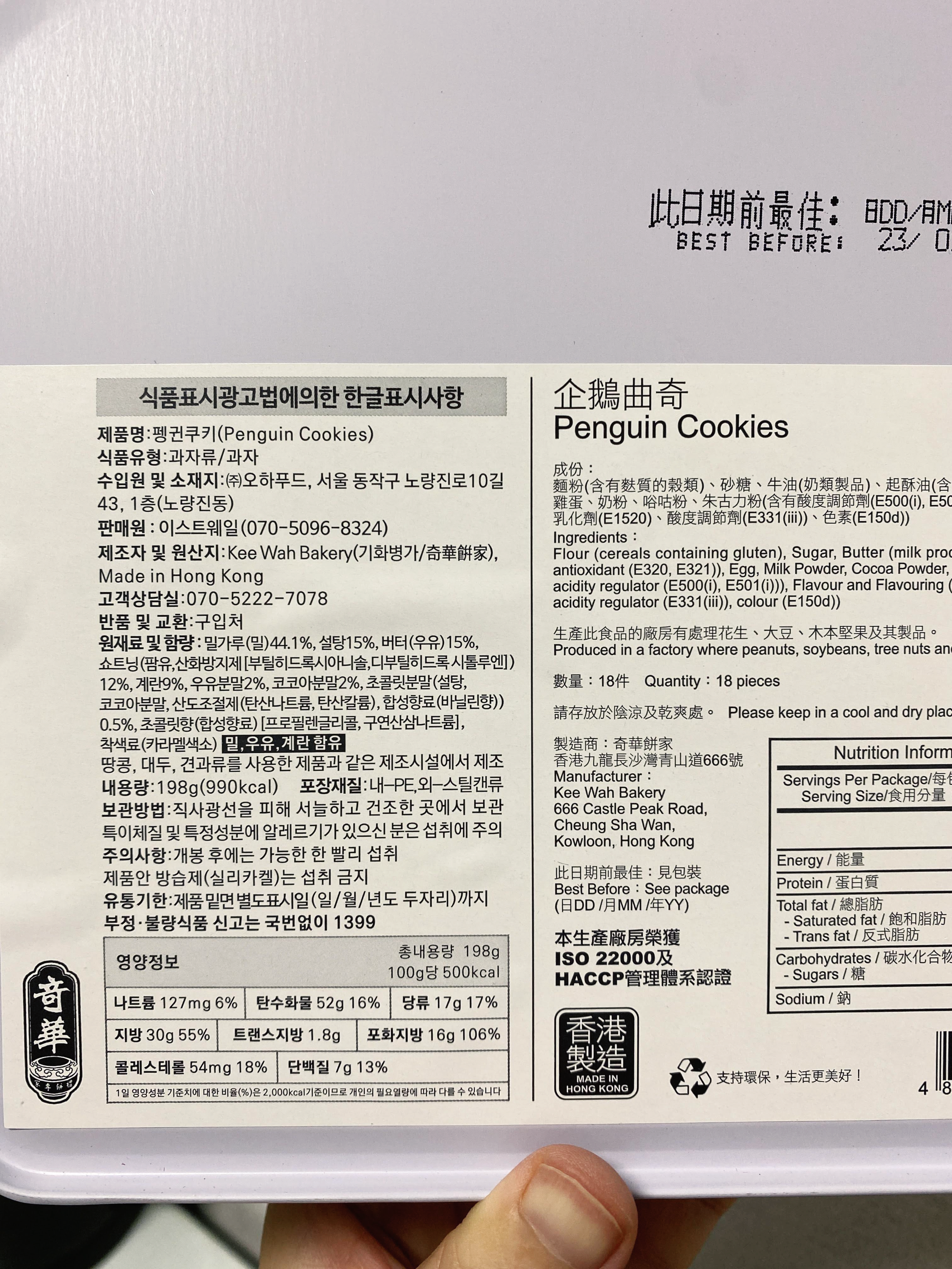 홍콩 쿠키들은 죄다 틴케이스에 넣어서 파는 게 전통인 건지, 이것도 귀여운 틴케이스에 넣어서 판다.