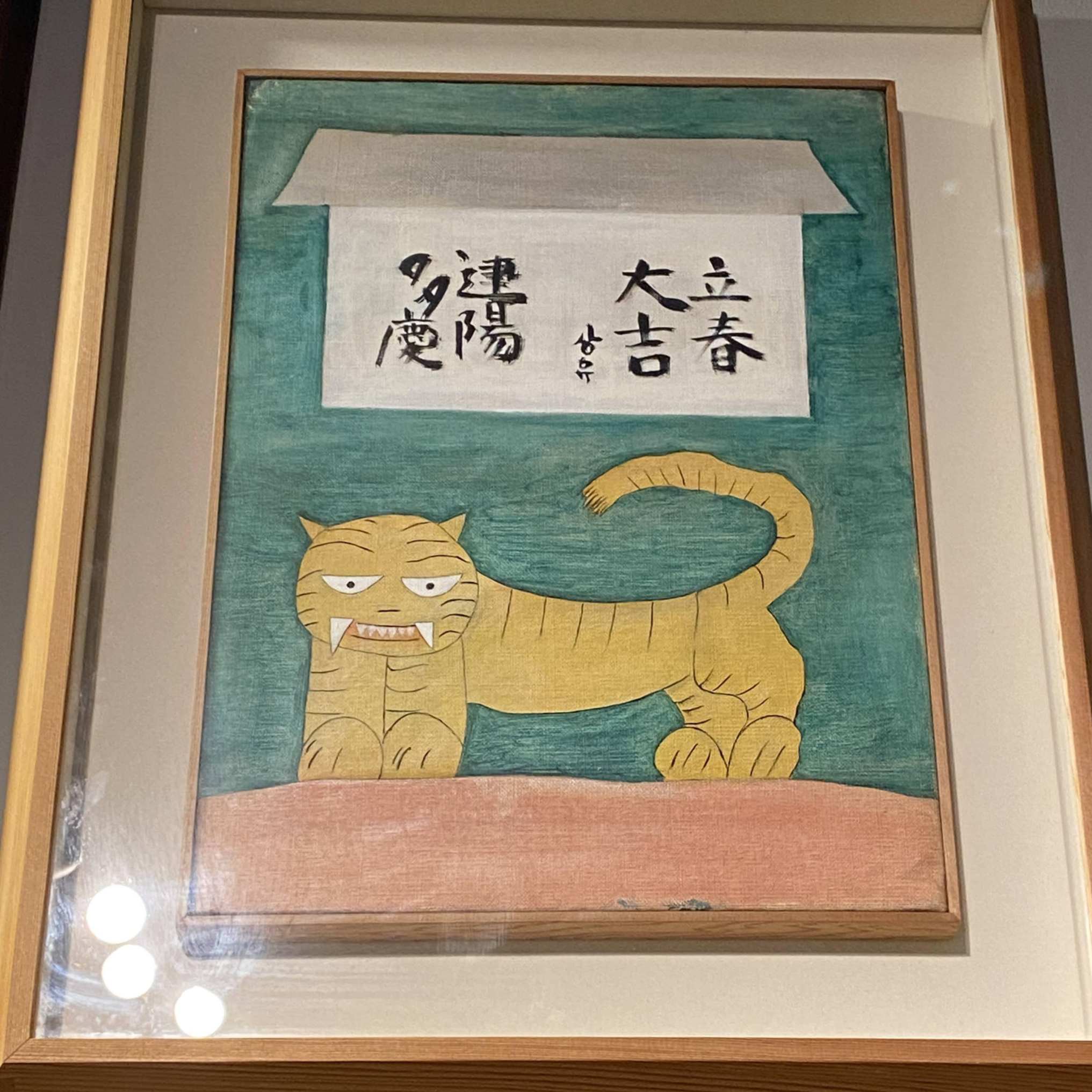 김상유 화가의 작품. 새랑 호랑이의 단순화된 모습과 그 안에서도 귀여움을 잃지 않은 게 아주 마음에 쏙 들었다.