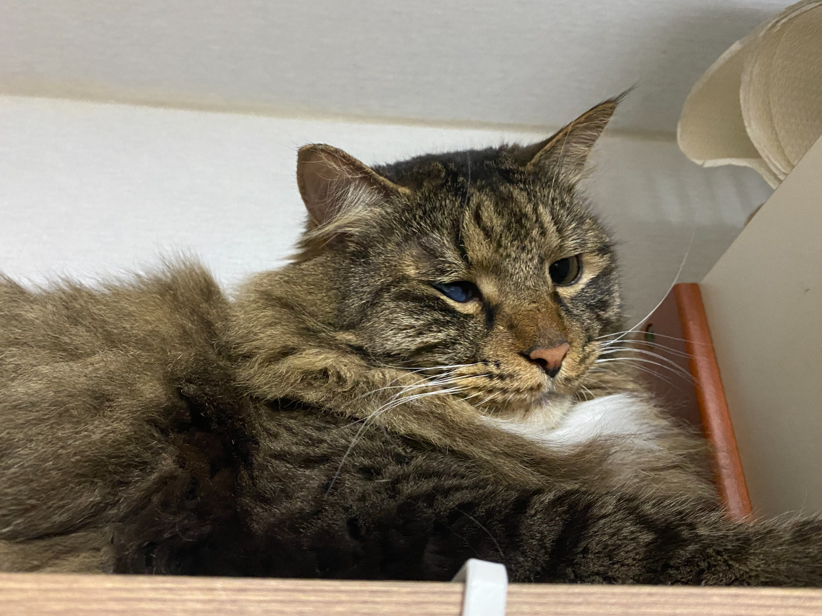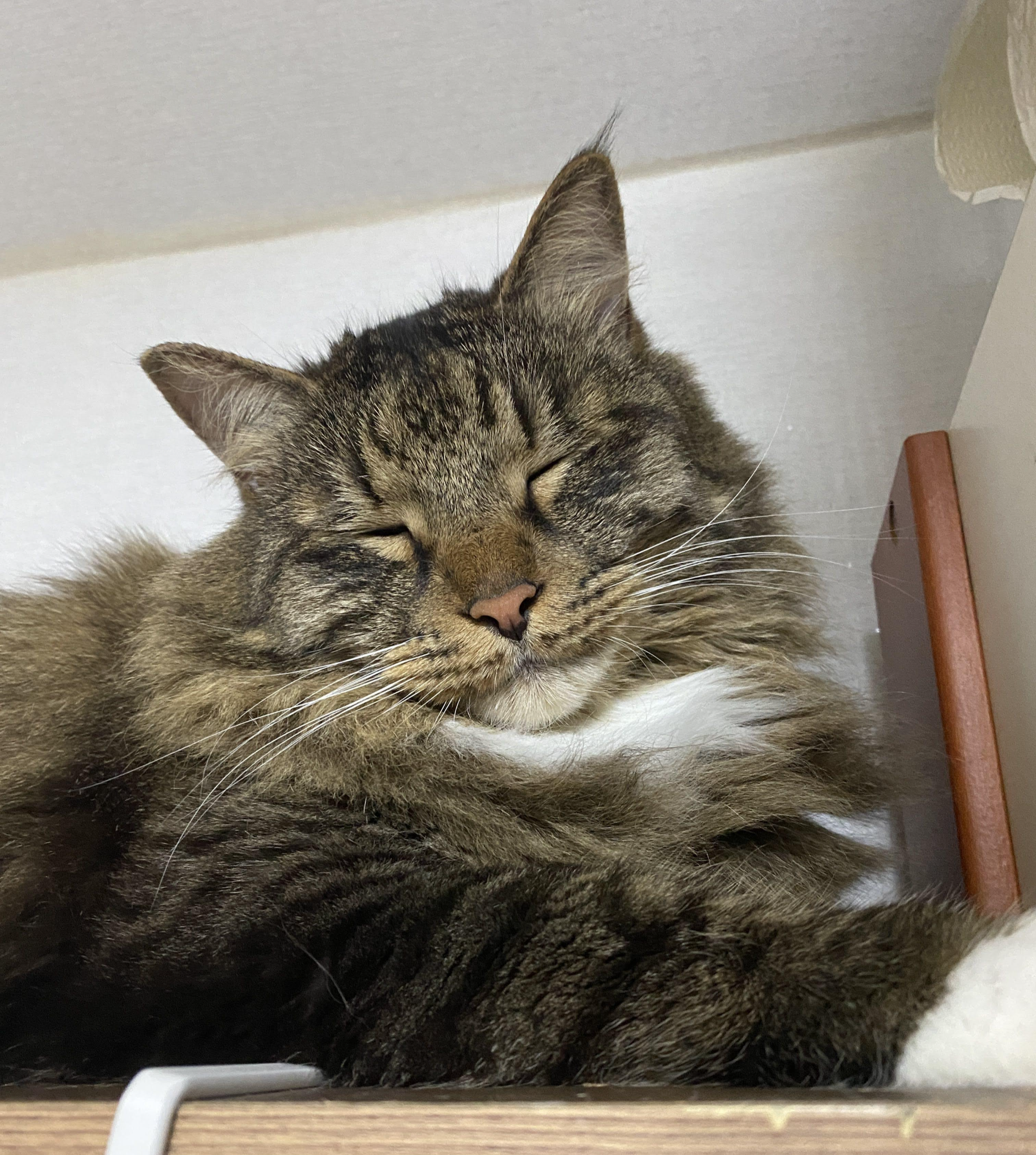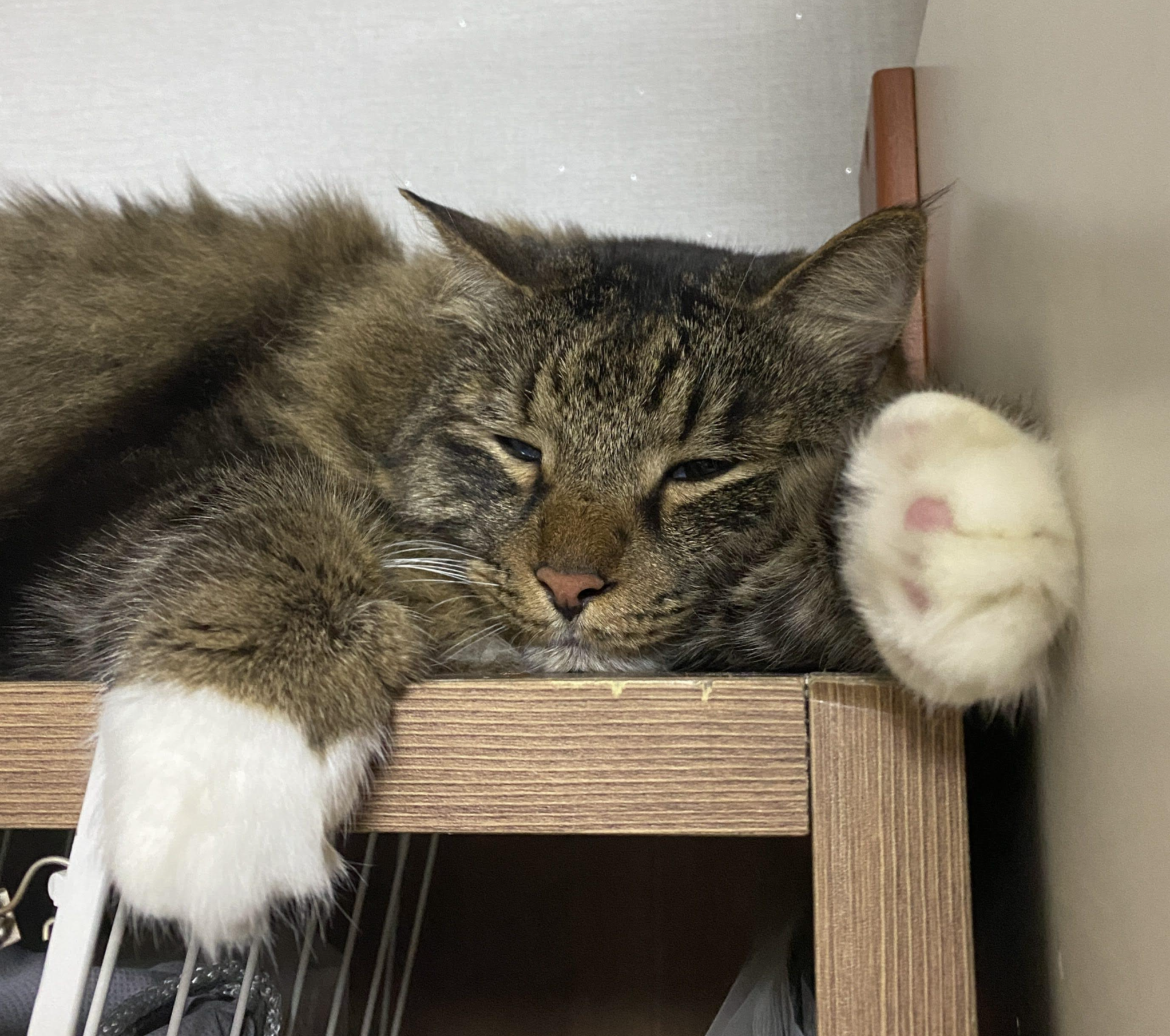 시간대 별로 선호하는 잠자리도 있어서 낮에는 옷장 위에 올려 둔 케이지 안에서 잘 때가 많고, 밤에는 내 머리맡에 있는 잠자리나 내 베개 옆에서 잔다.