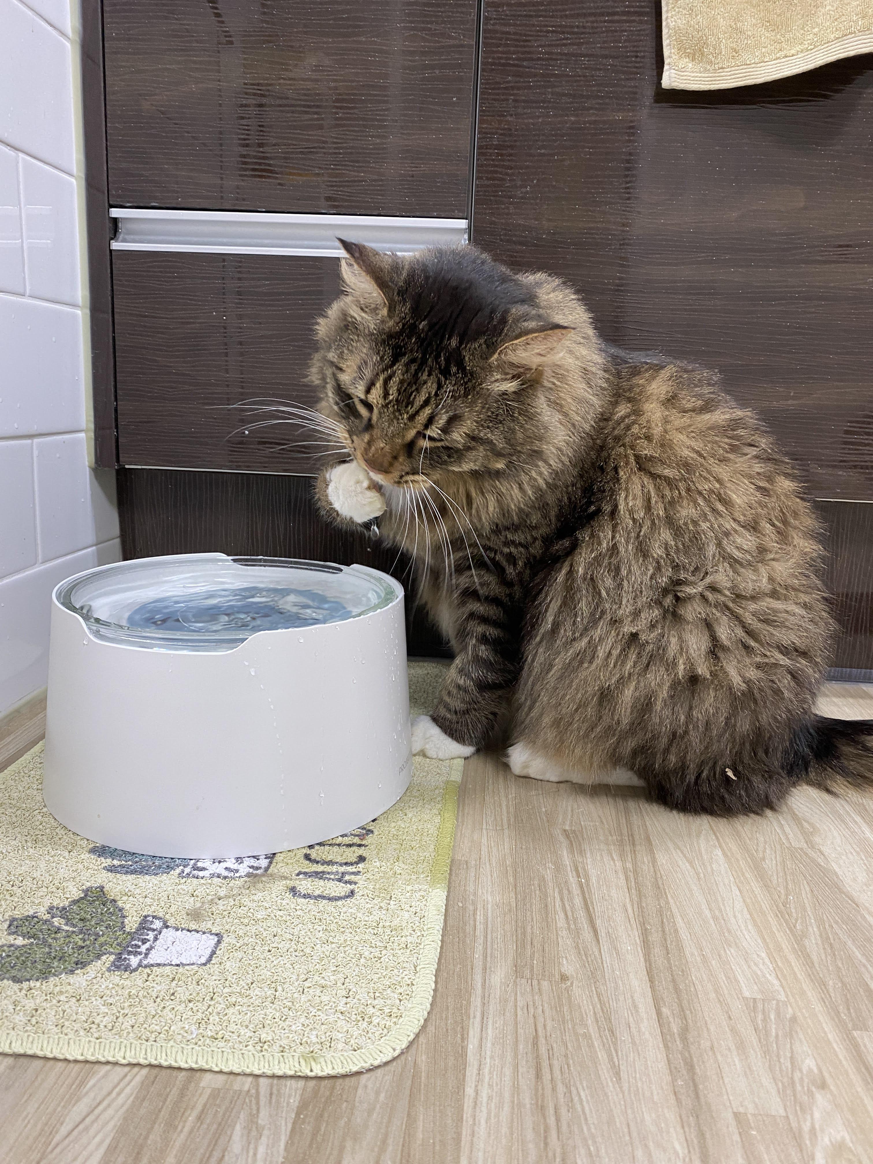 집사가 무슨 생각을 하건 고양이는 세상에서 제일 맛있다는 듯이 물을 마신다.