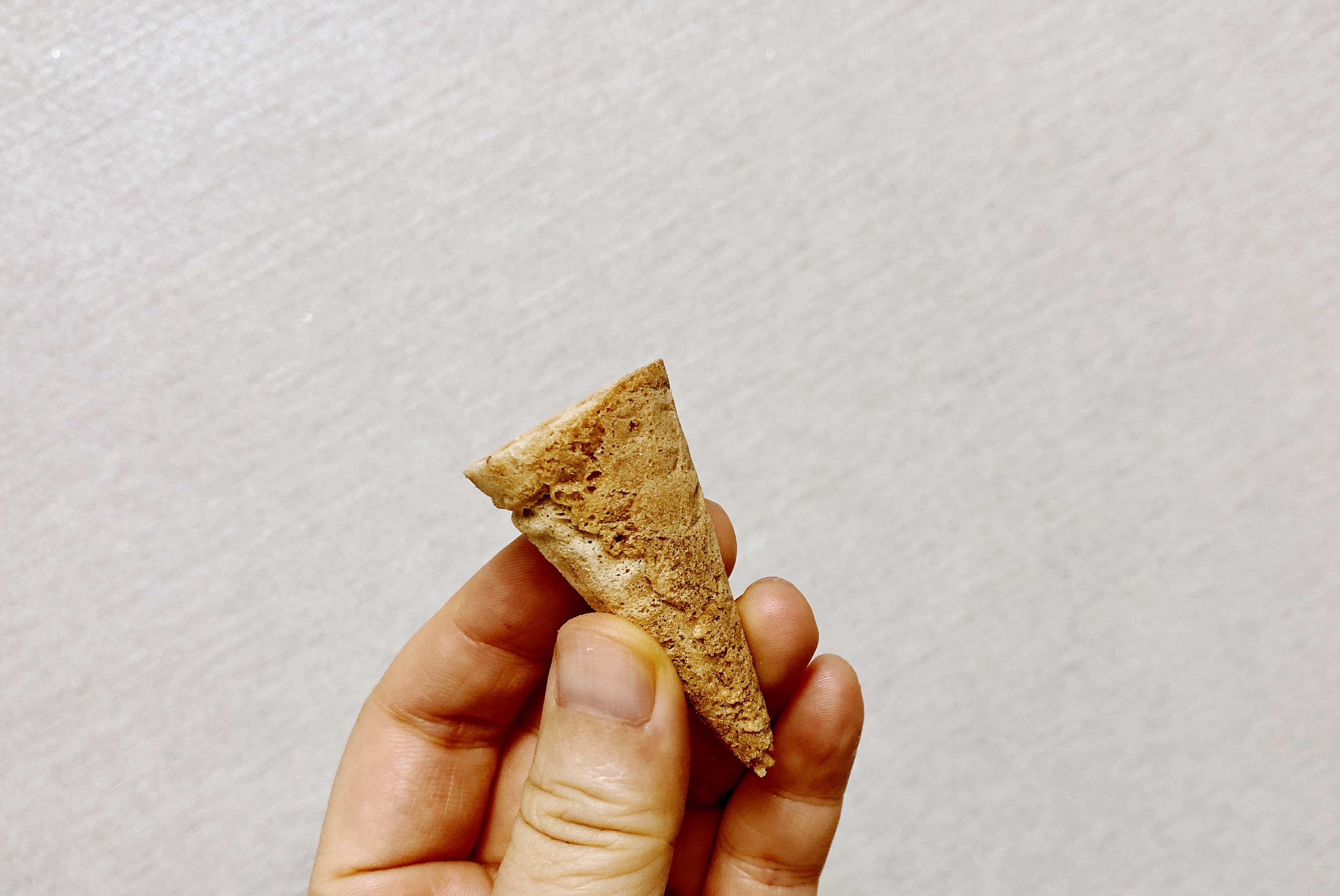 봉지 안에는 정말 콘아이스크림 끝부분만 싹둑 잘라낸 것처럼 생긴 과자가 들어 있다.