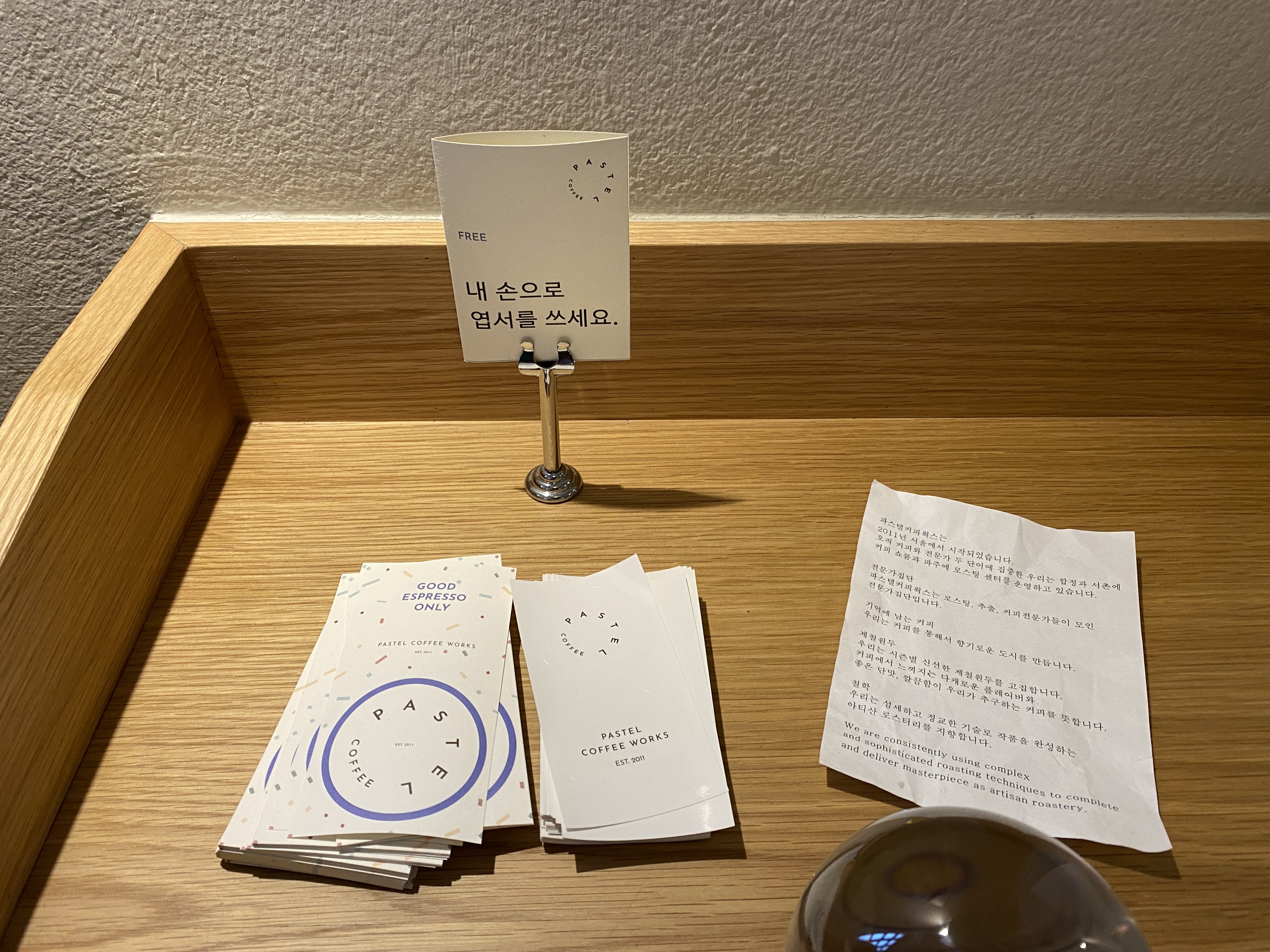 뒤쪽으로 이런 엽서도 있고 원두도 팔고, 뭔가 커피에 진심인 느낌인 곳.