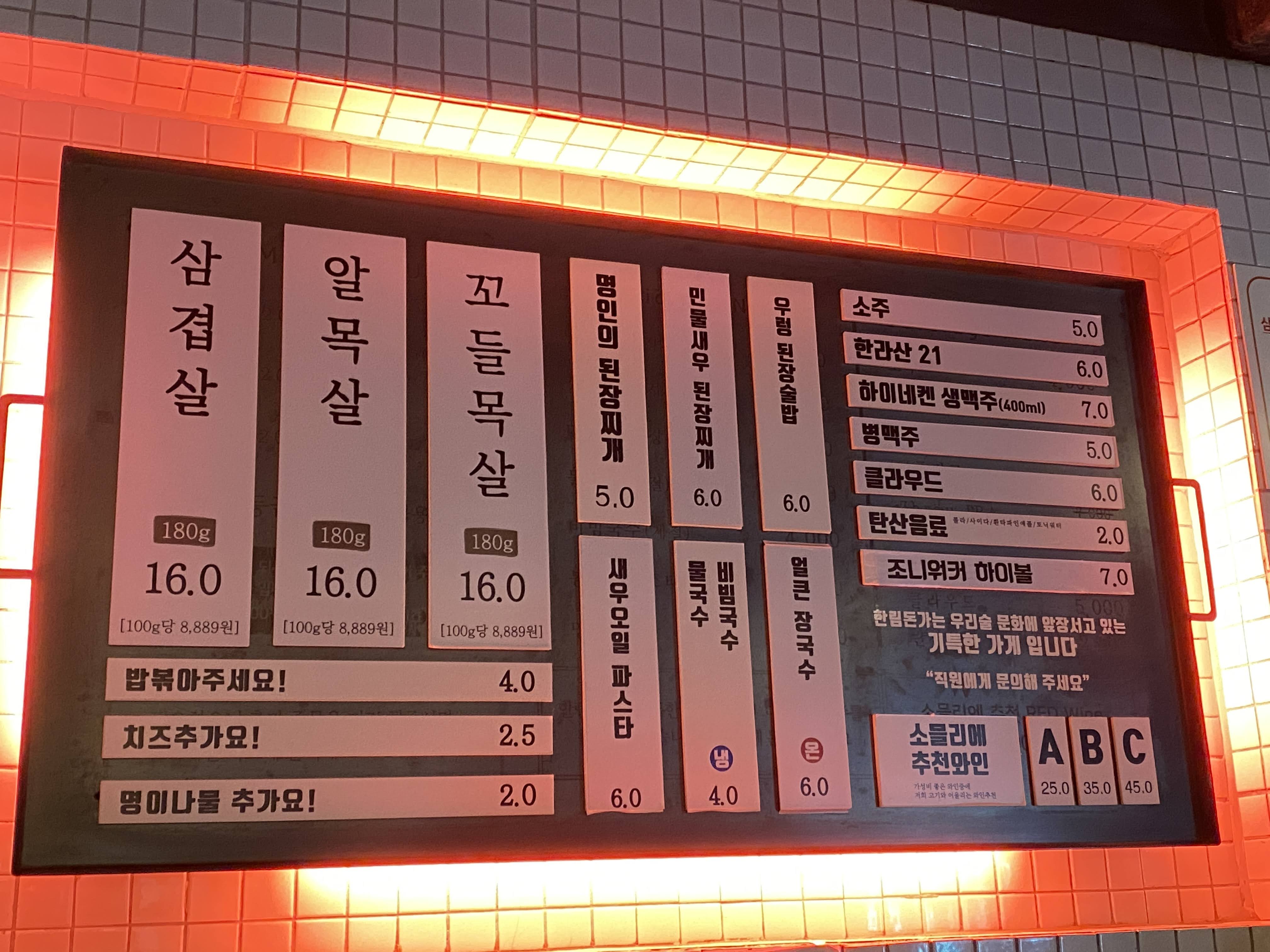 오늘은 합정역과 홍대역 사이에 있는 한림돈가에서 고기를 구워 먹었다.