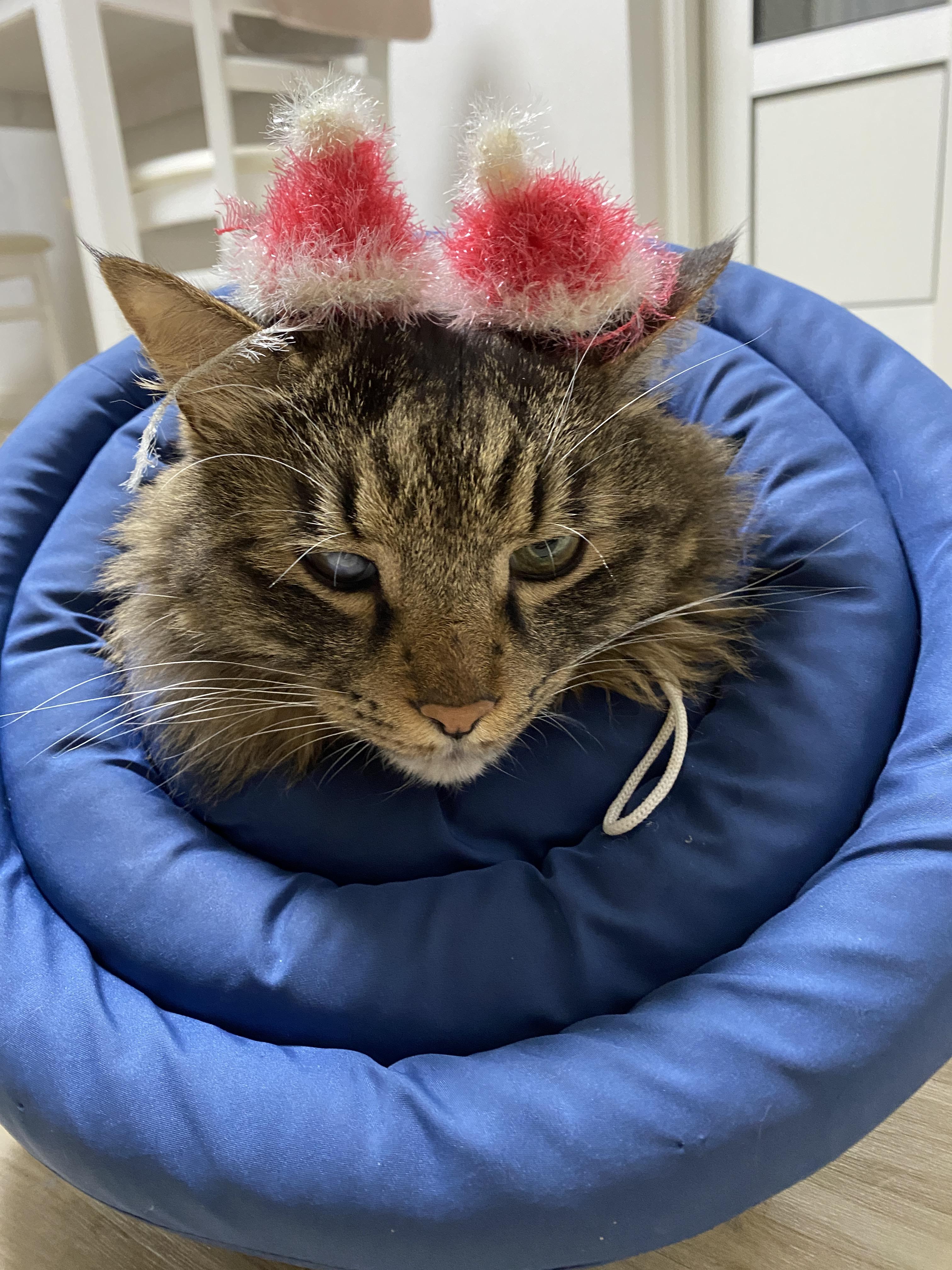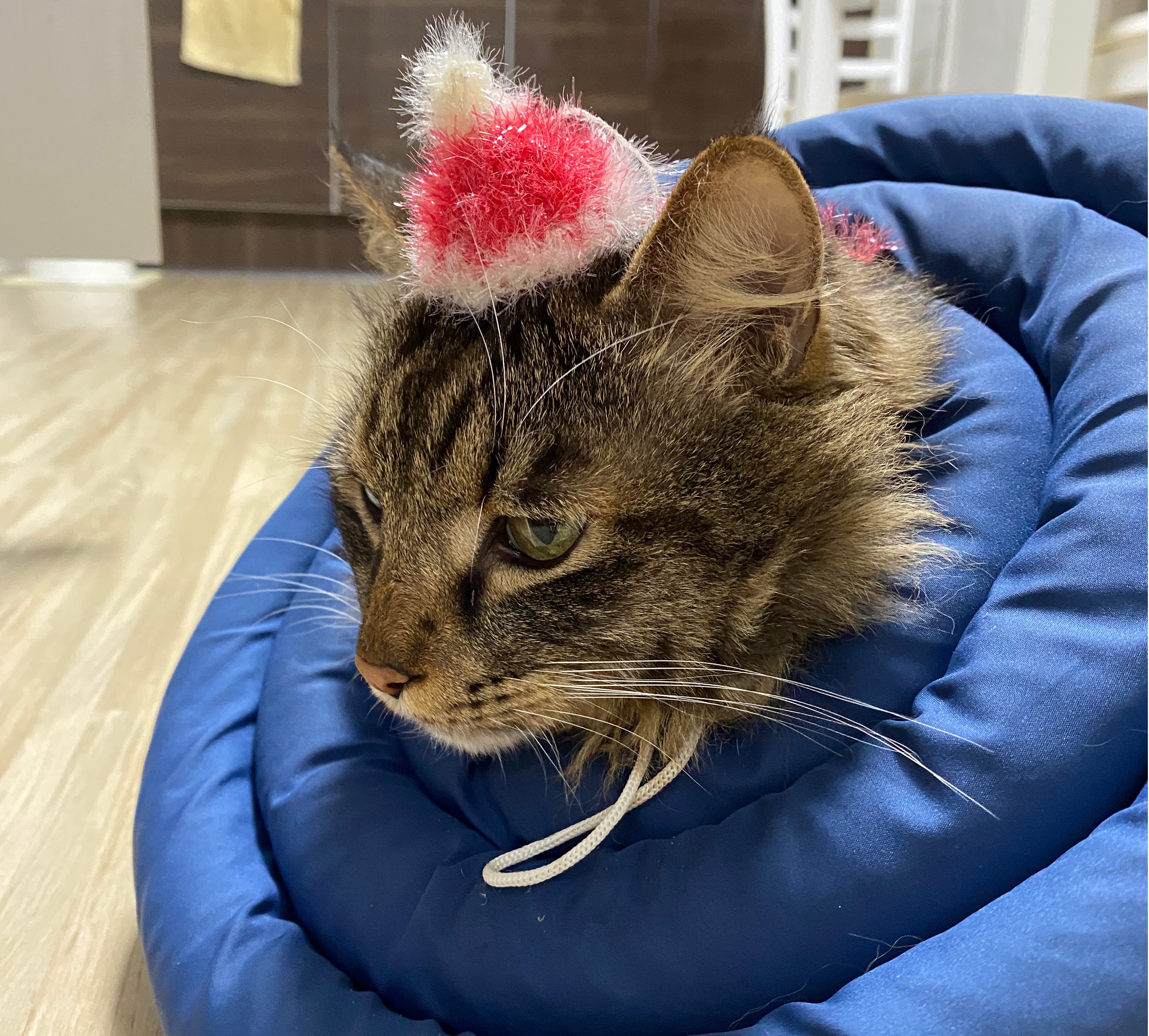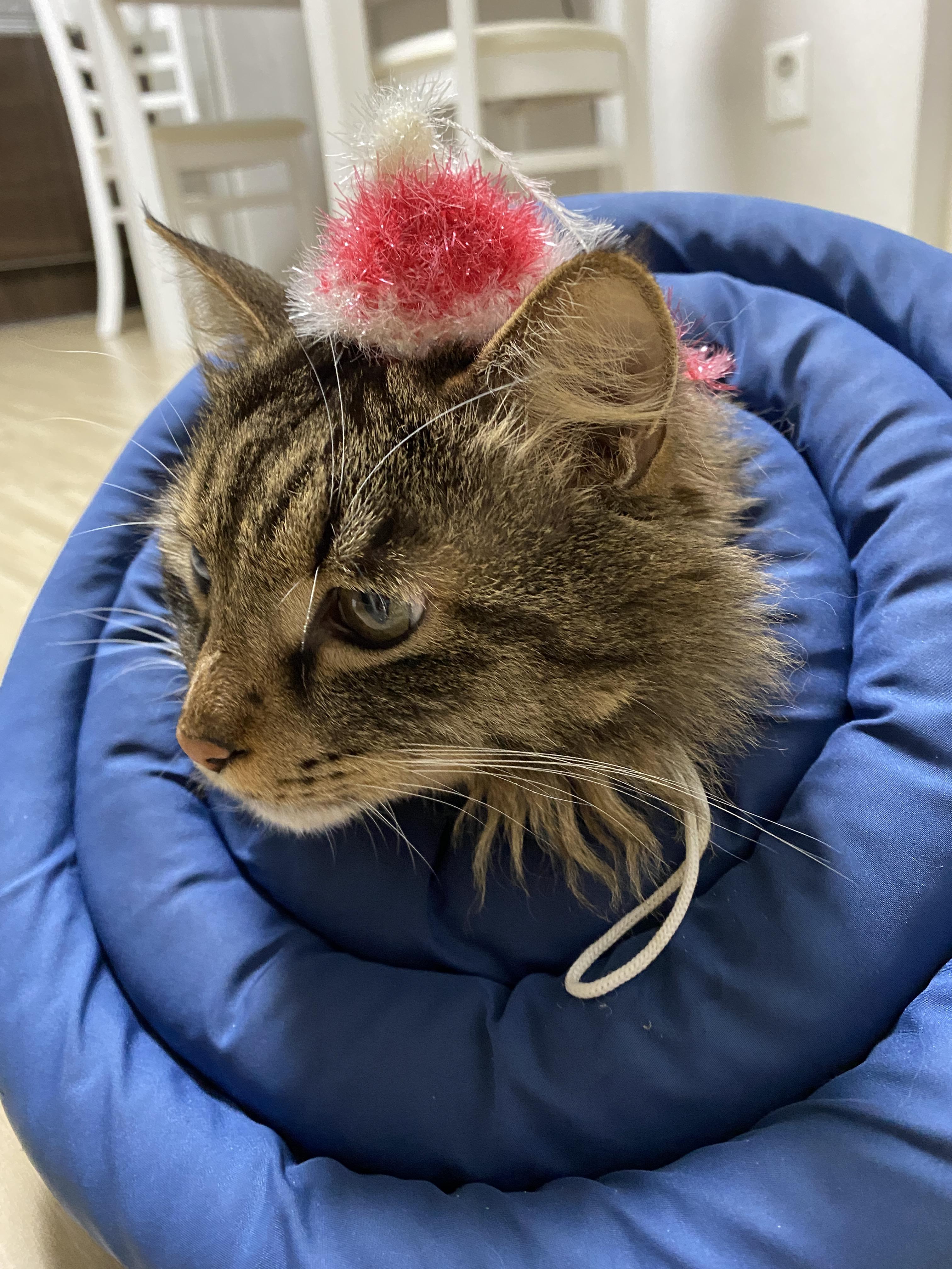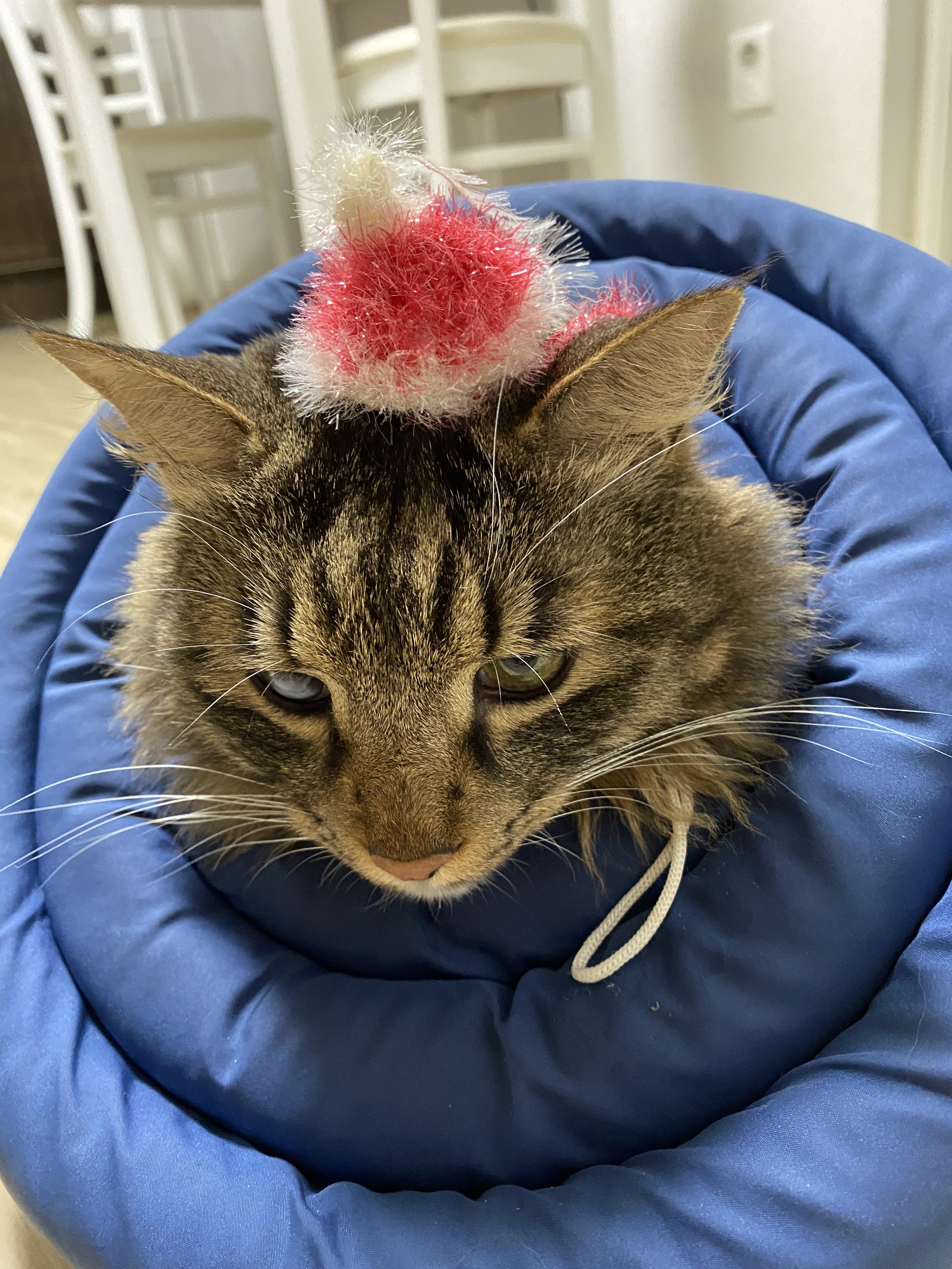 만들다가 산타 모자를 고양이에게 얹어 보았다.