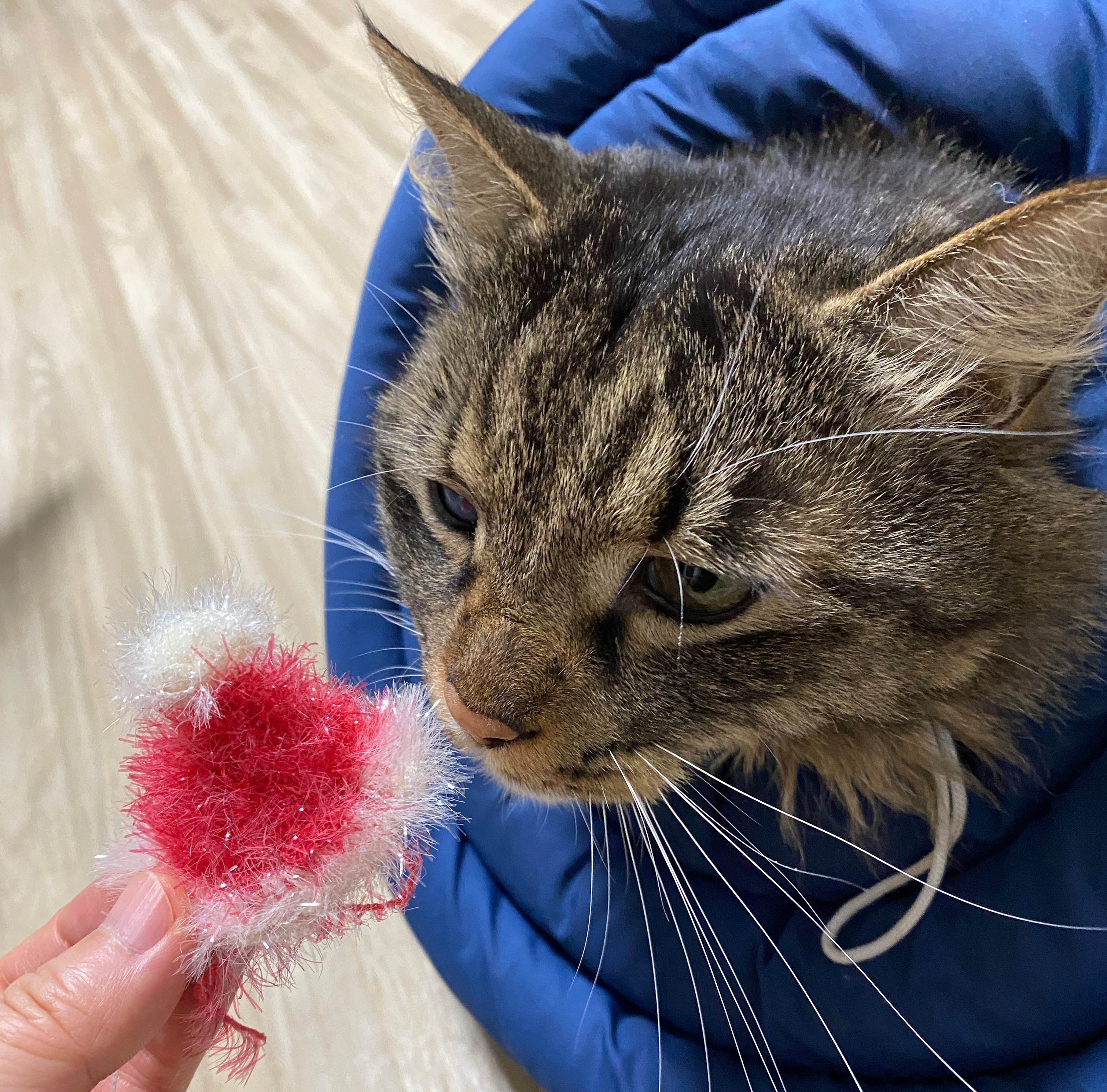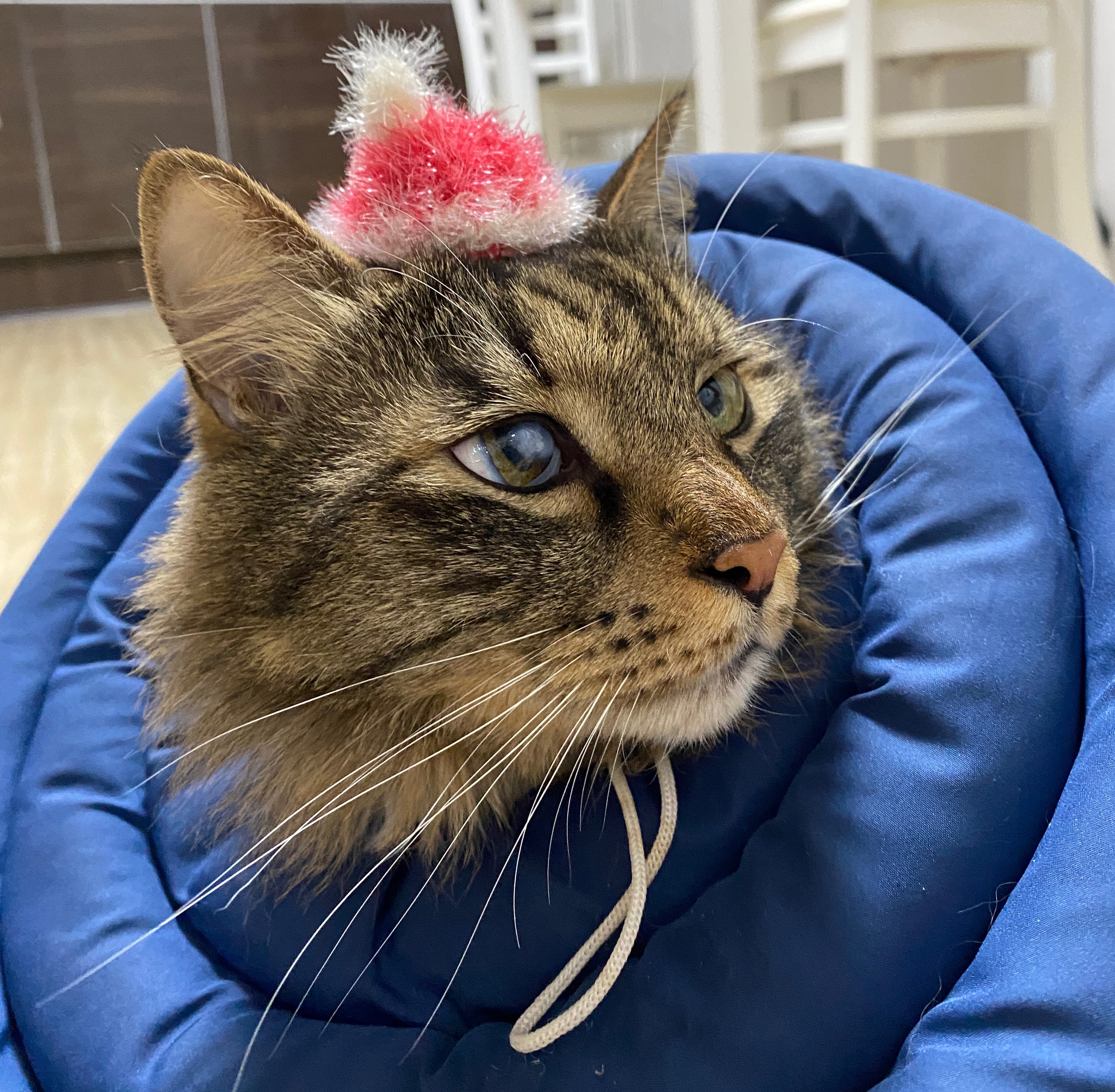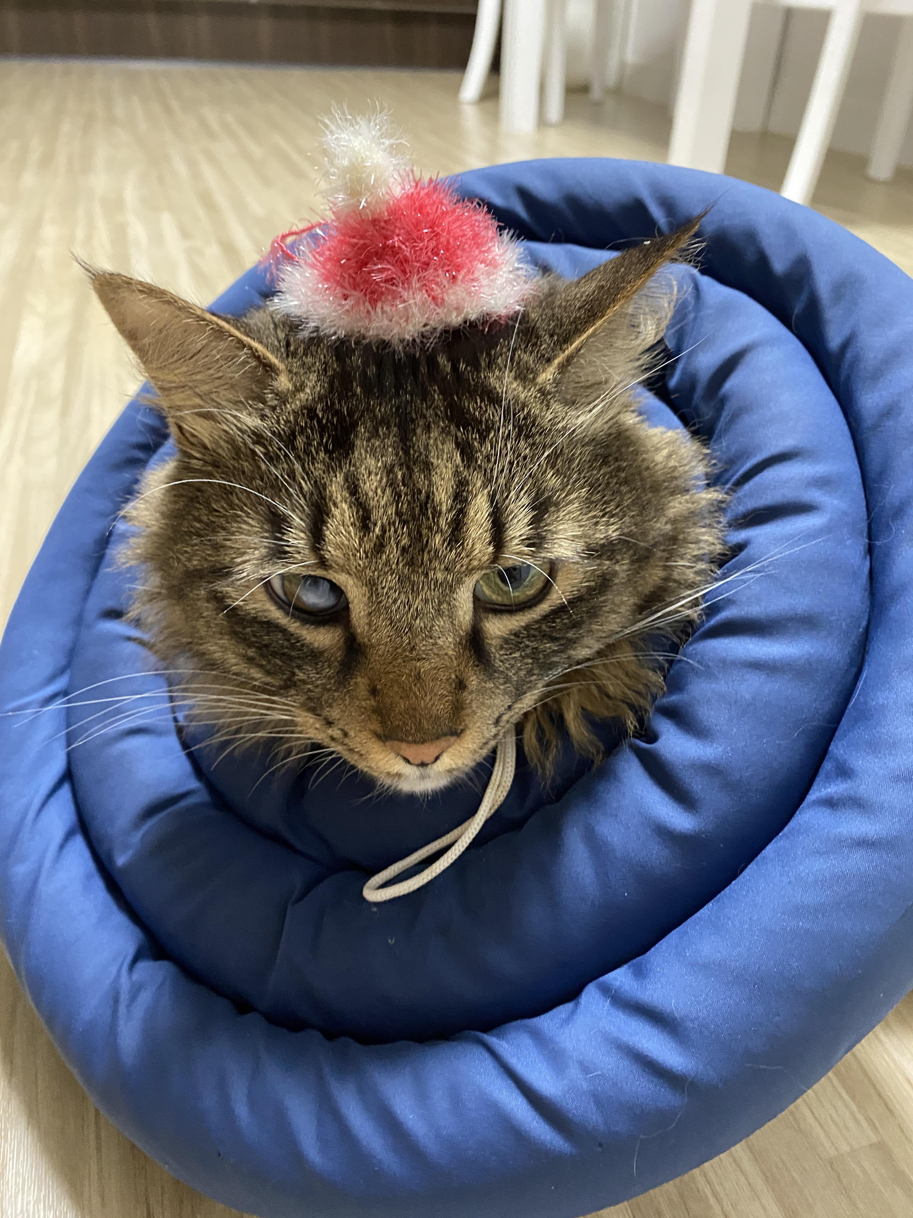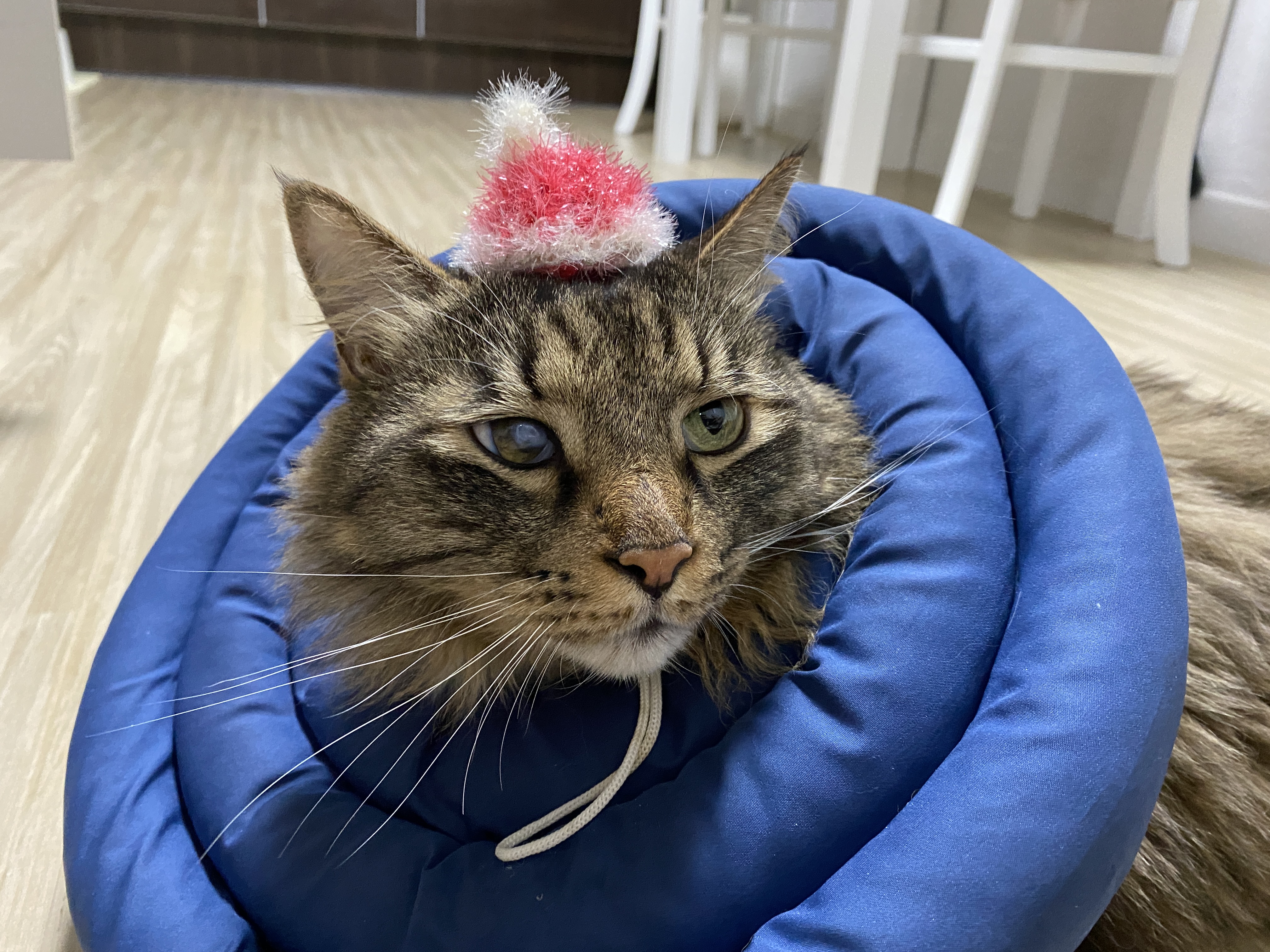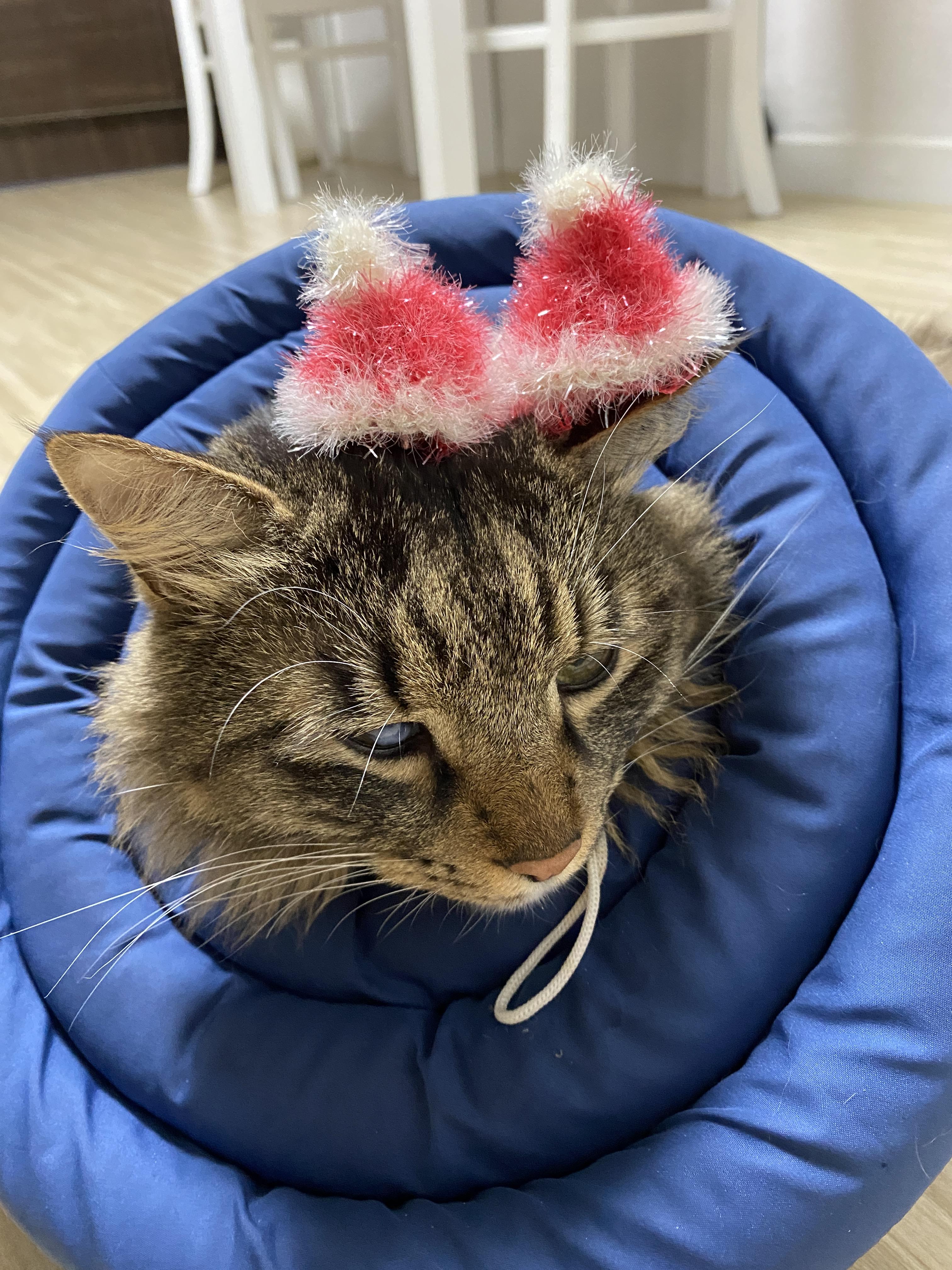 만들다가 산타 모자를 고양이에게 얹어 보았다.