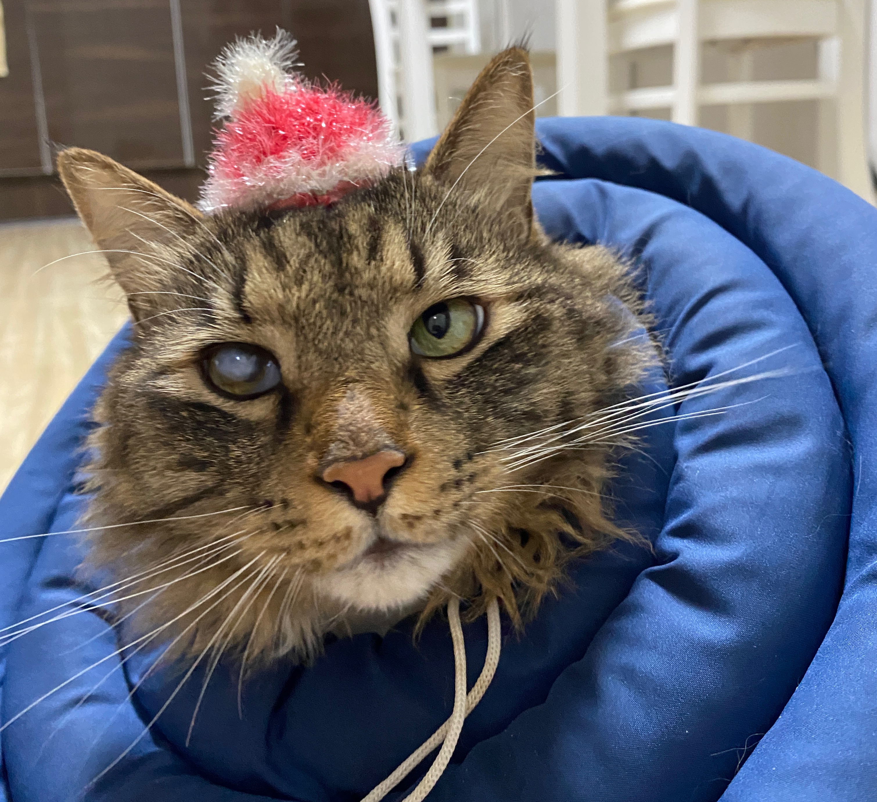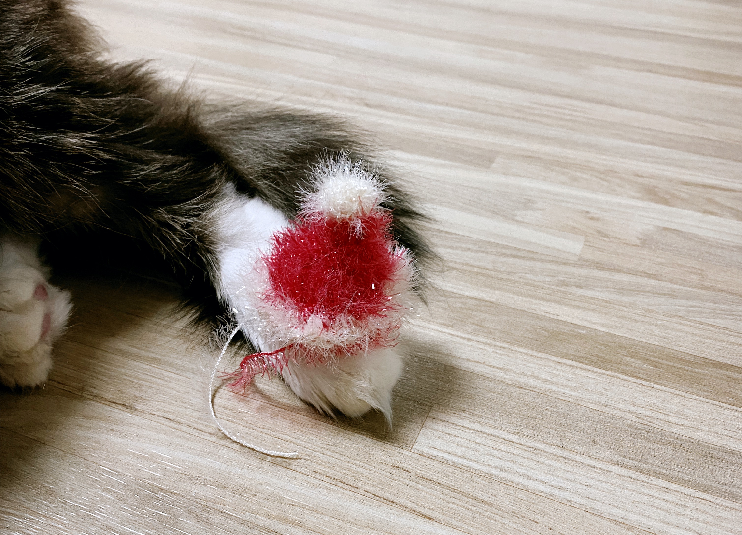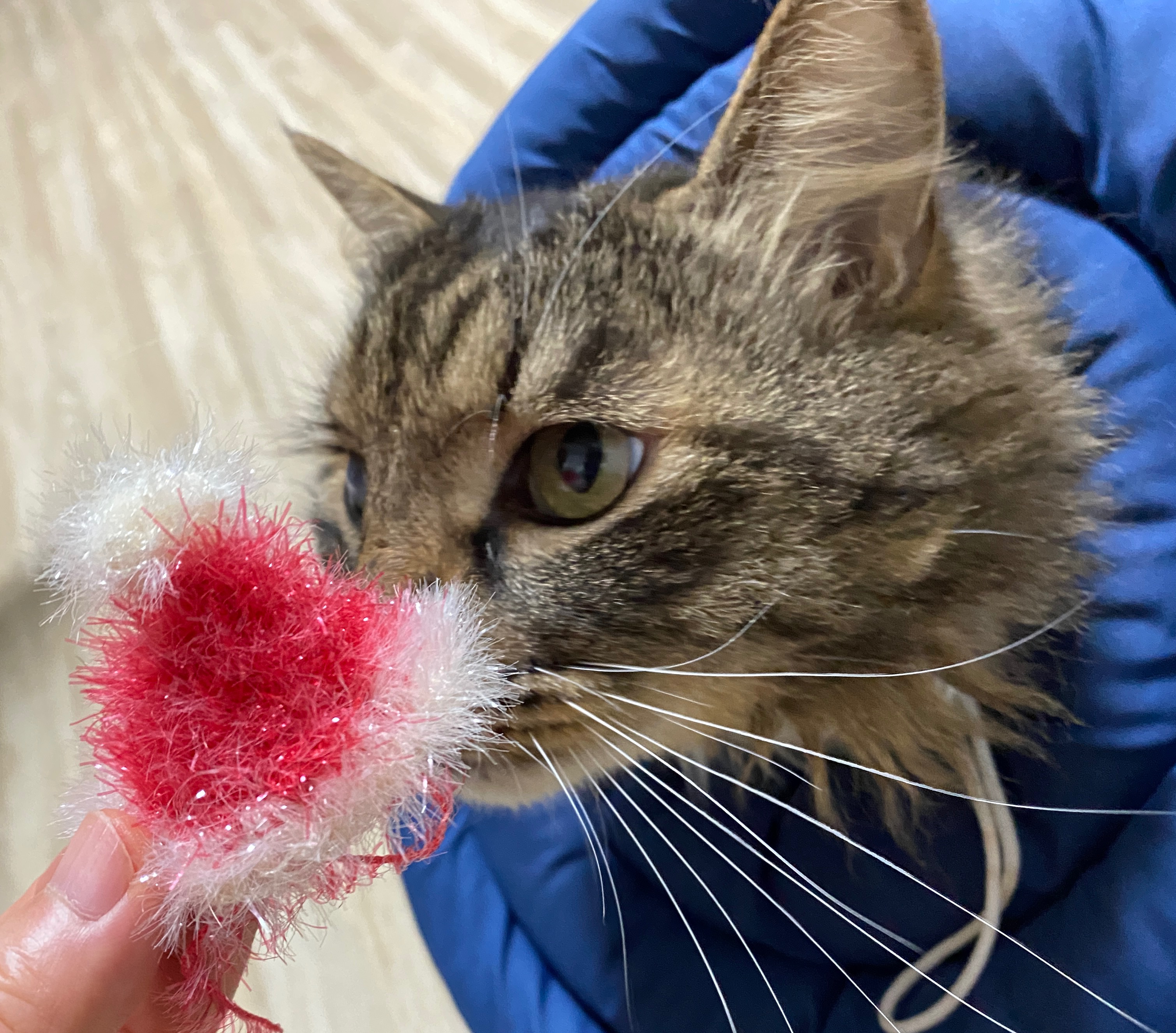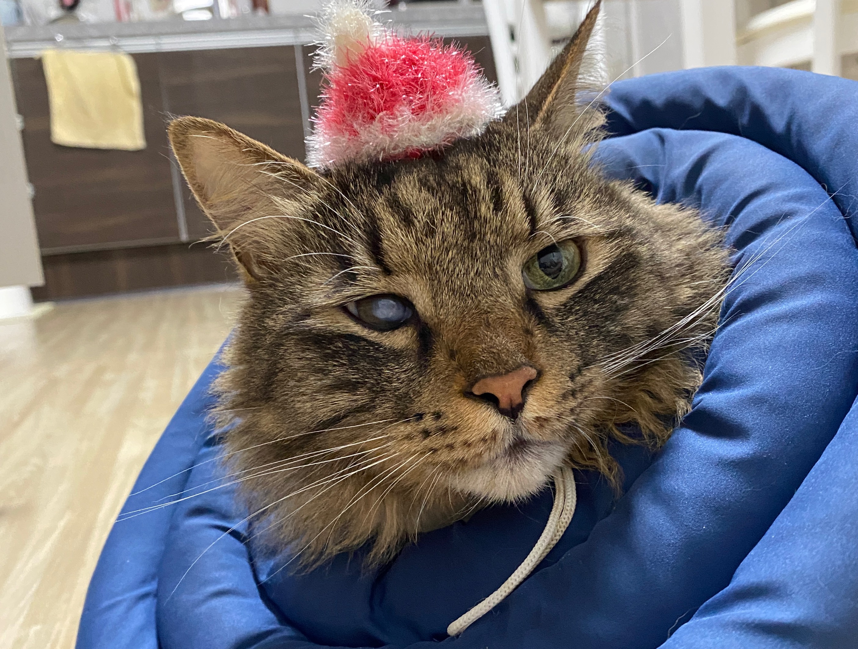 만들다가 산타 모자를 고양이에게 얹어 보았다.