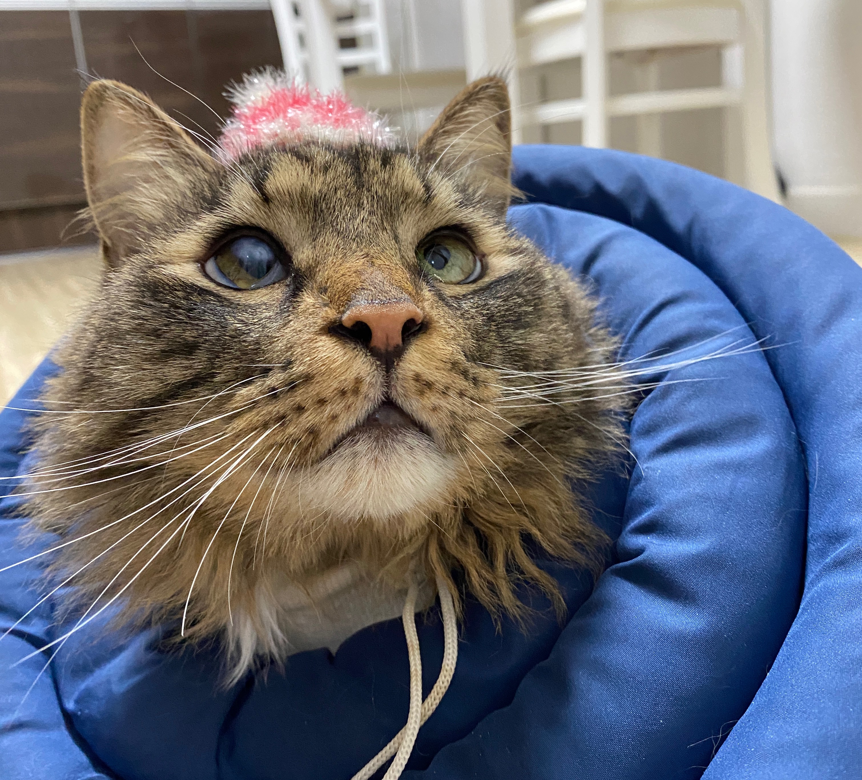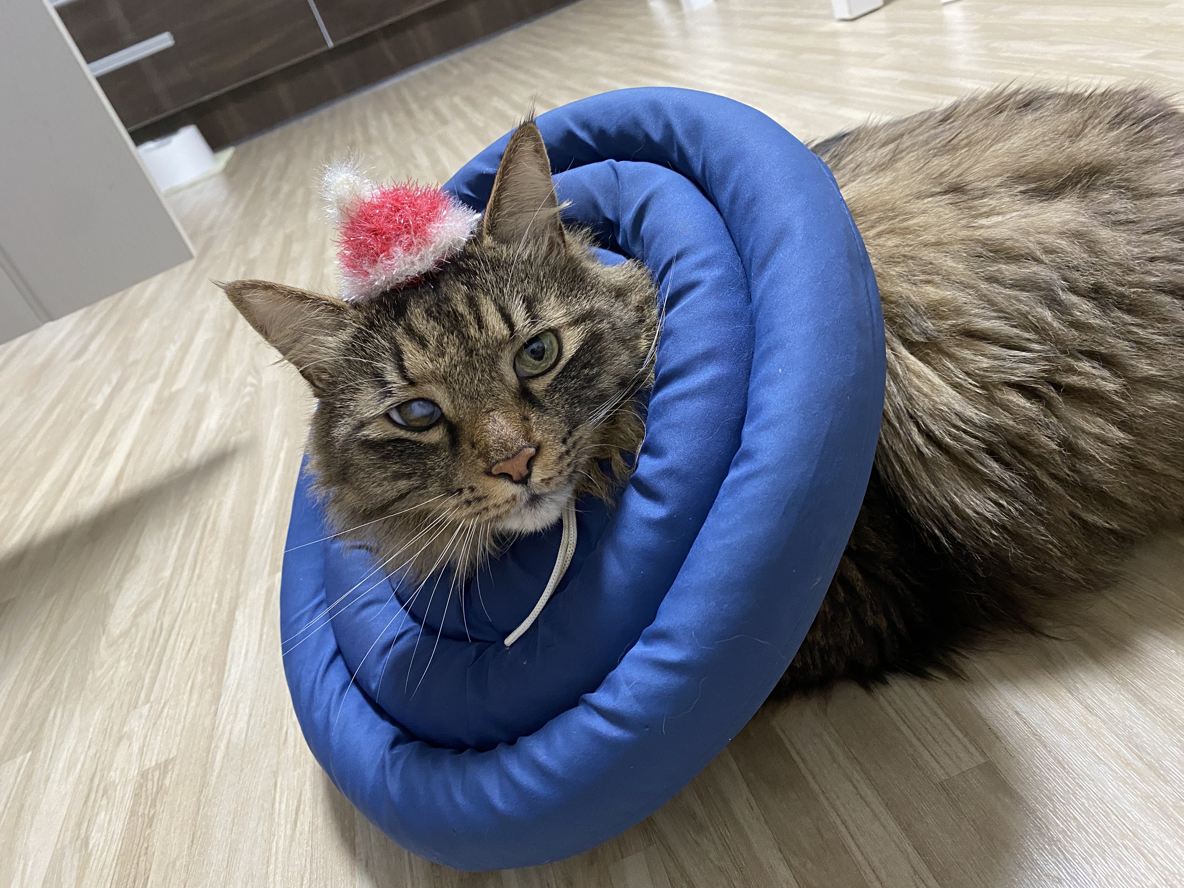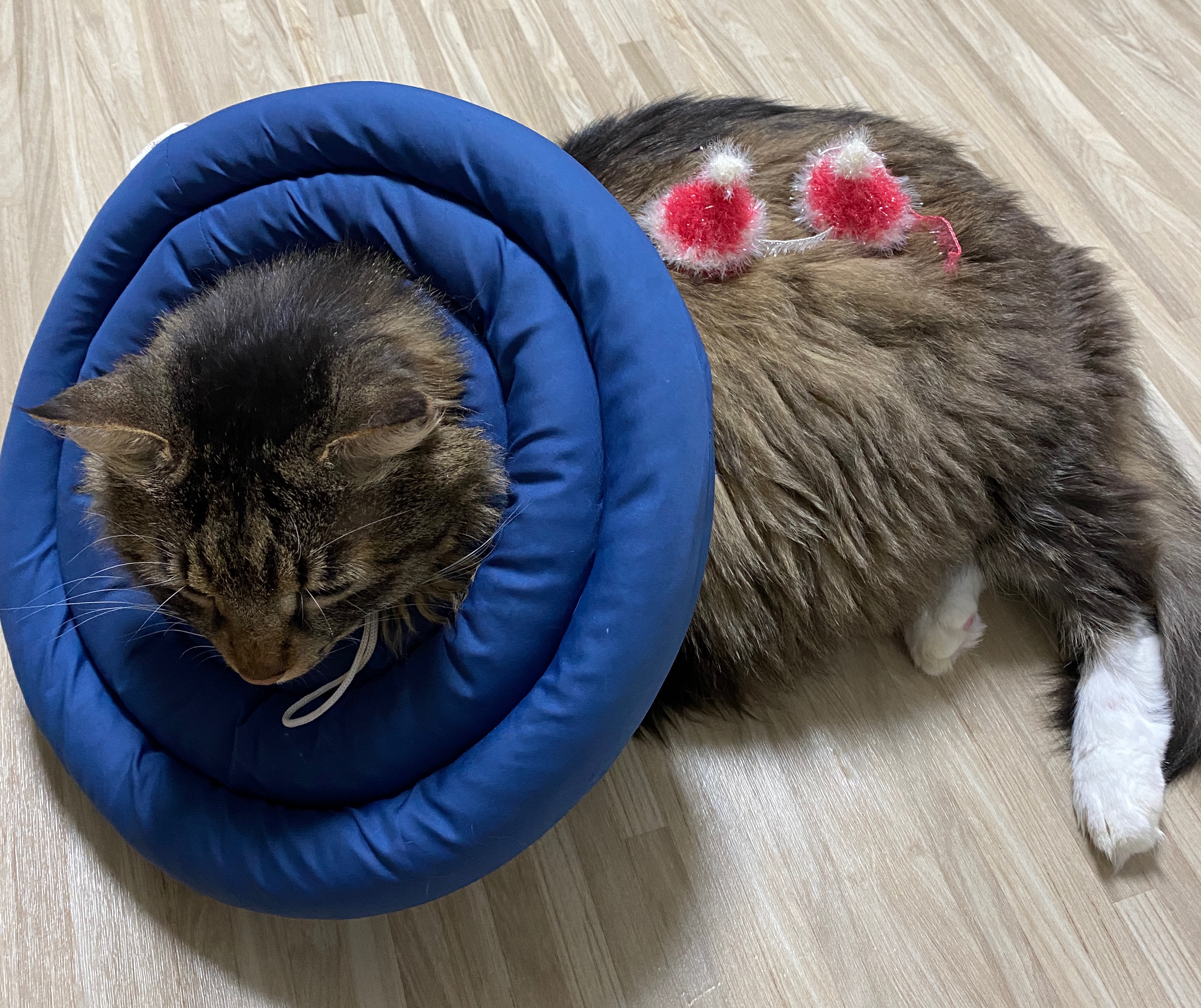 카라만 없었다면 더 귀여운 사진이 나왔을 텐데.