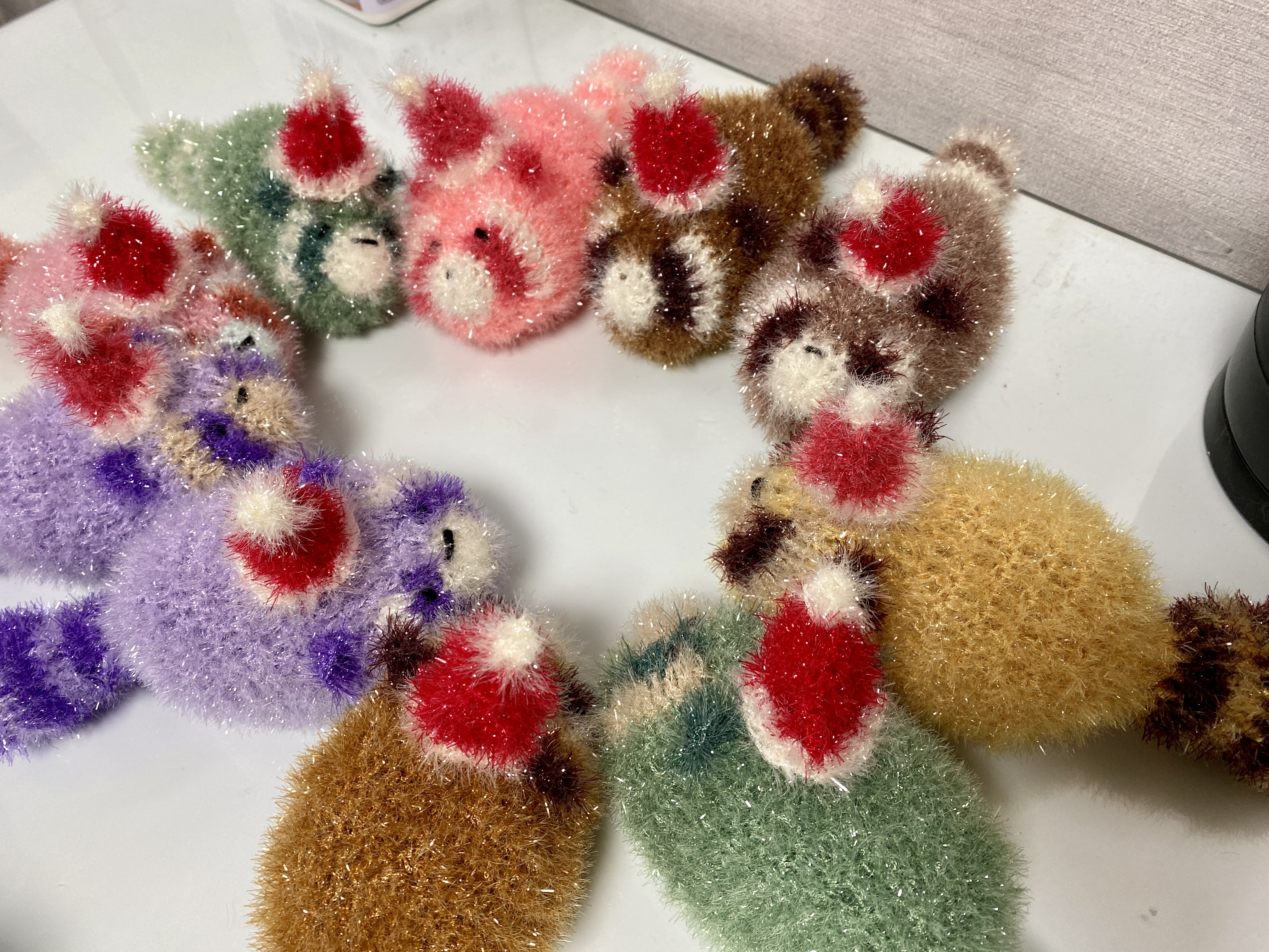 오색빛깔 찬란한 산타 너구리 대량 제작.
