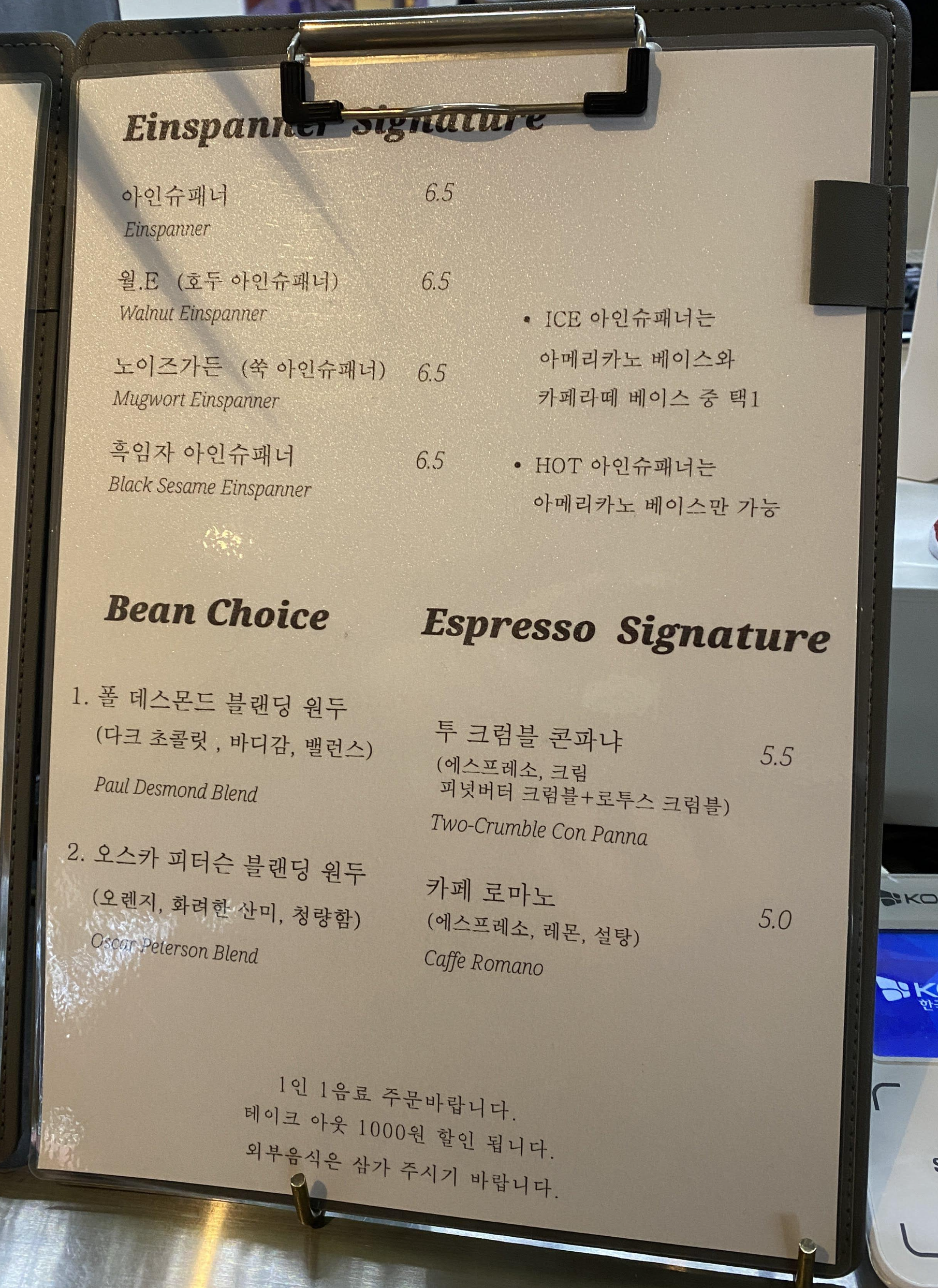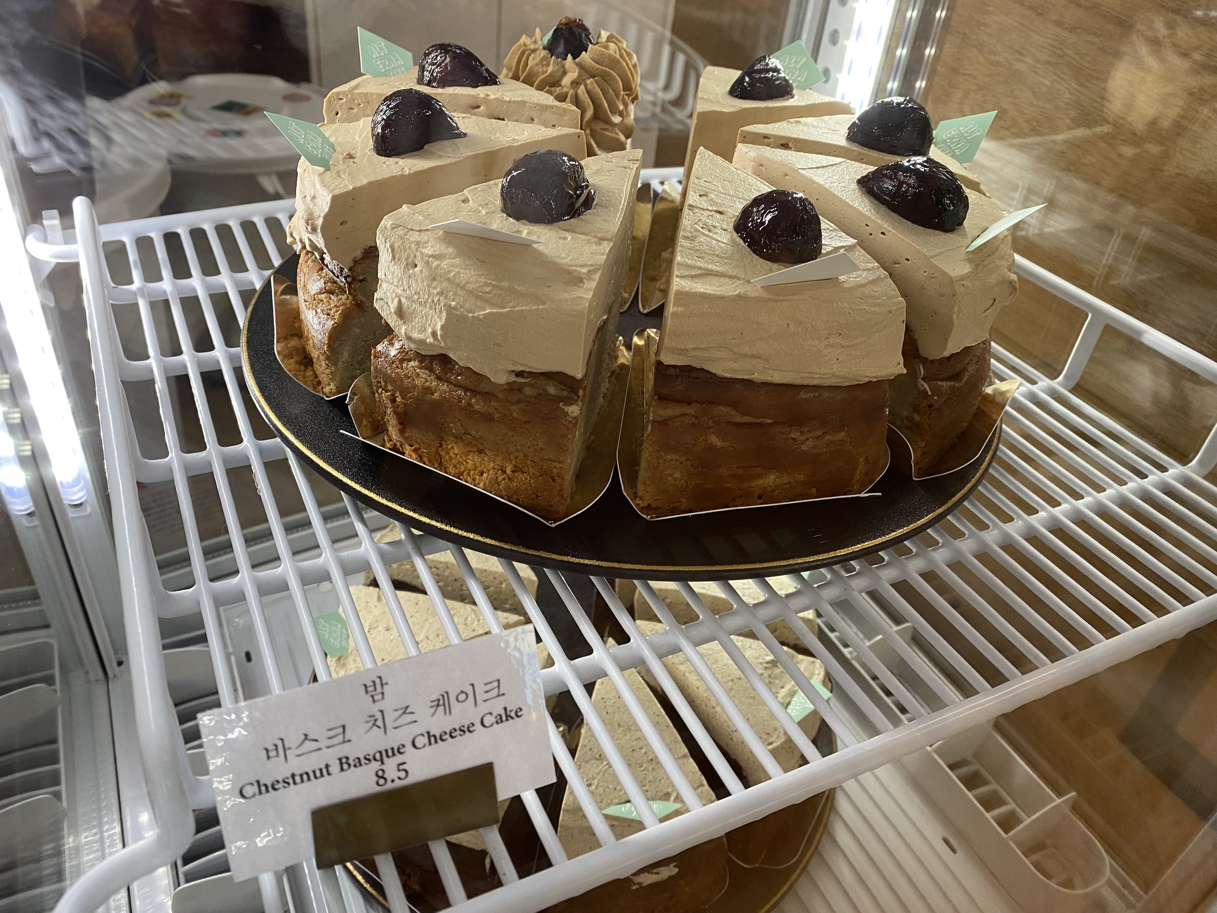 열띤 고민 끝에 인절미 바스크 치즈 케이크랑 밤 바스크 치즈 케이크를 선택했다. 음료는 나는 아메리카노, 친구는 호두아인슈페너.